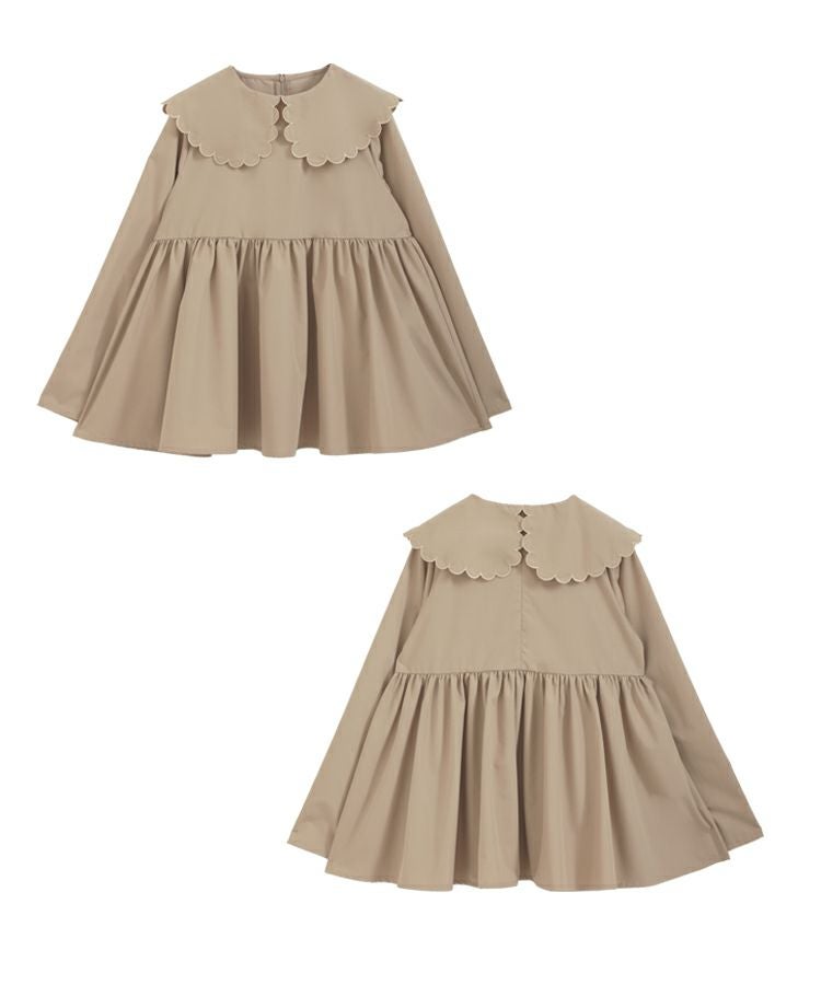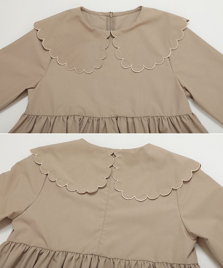 普段は黒・ネイビー・白を選びがちなのですがベージュのお色が珍しくこちらを購入。 お色もスカラップの襟も可愛いです。