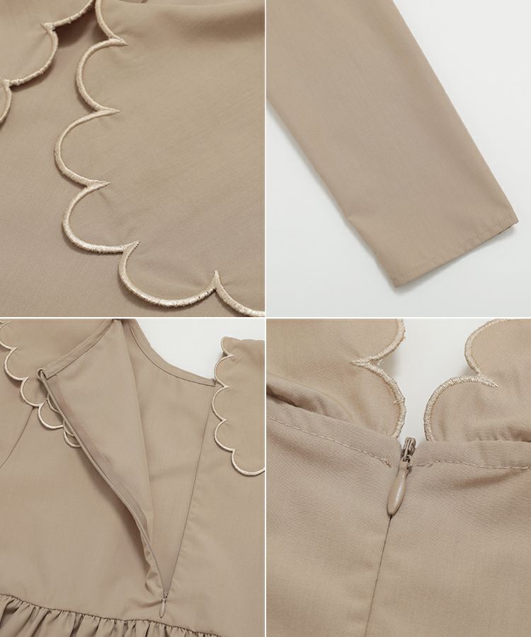スカラップの衿には刺繡を施し、高級感のある1枚に。