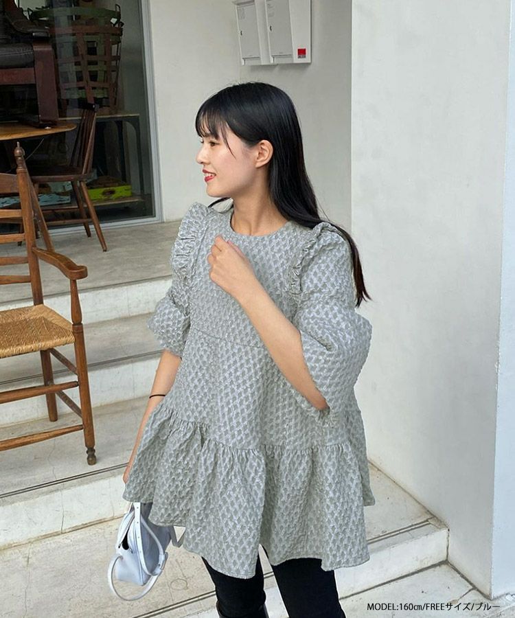こちら全色持っているぐらい好きです!袖のふわっとしている感じや、肩のフリル、ティアードシルエットが可愛いです。