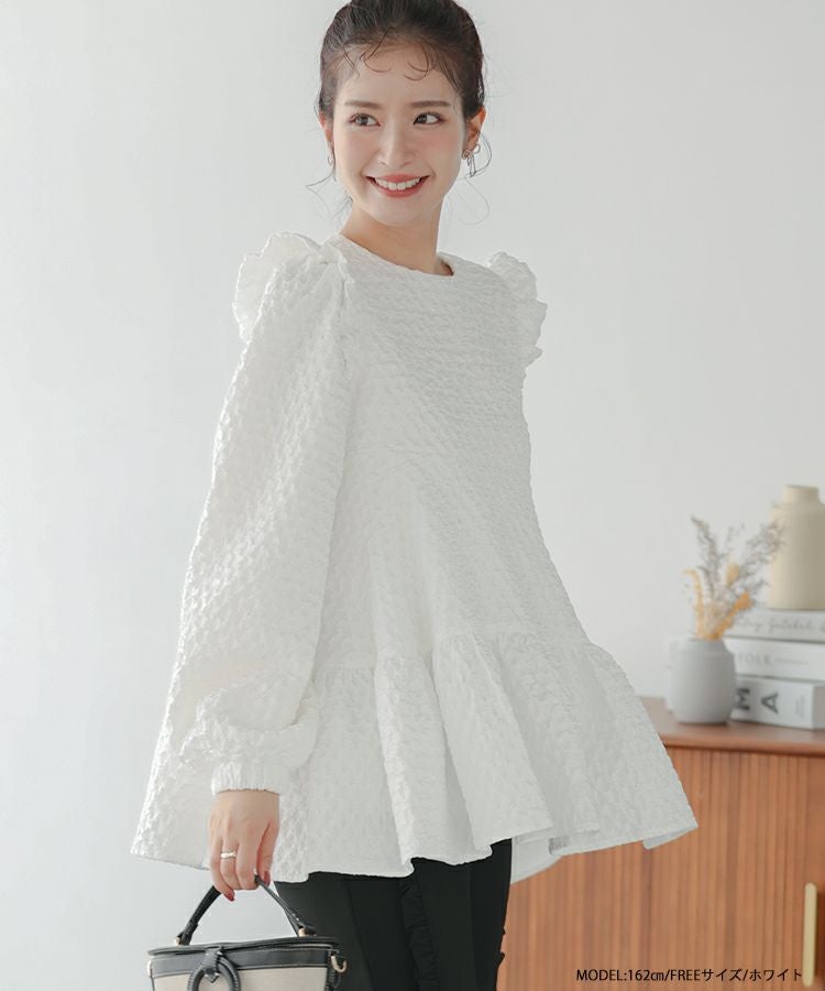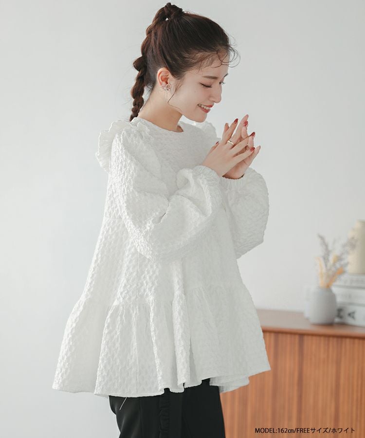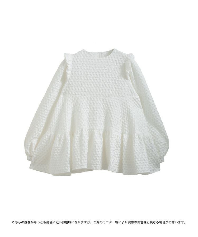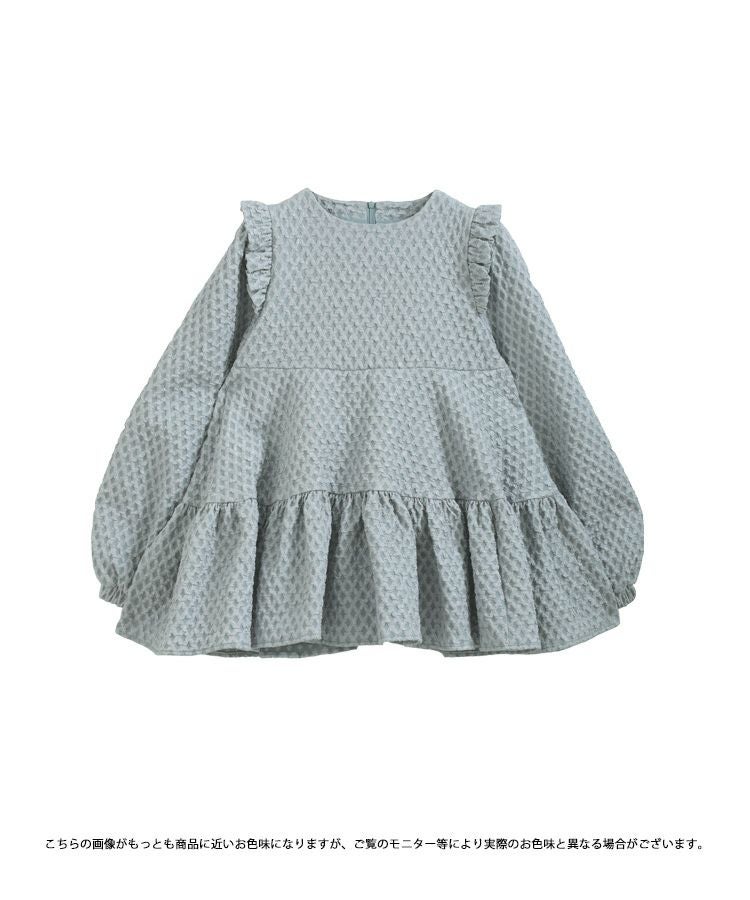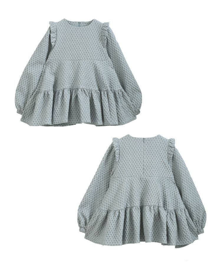 肩のフリルとティアード裾で、360度どこから見ても可愛いシルエット。