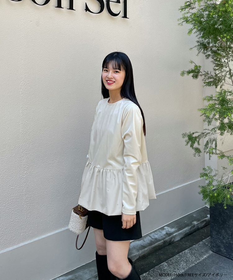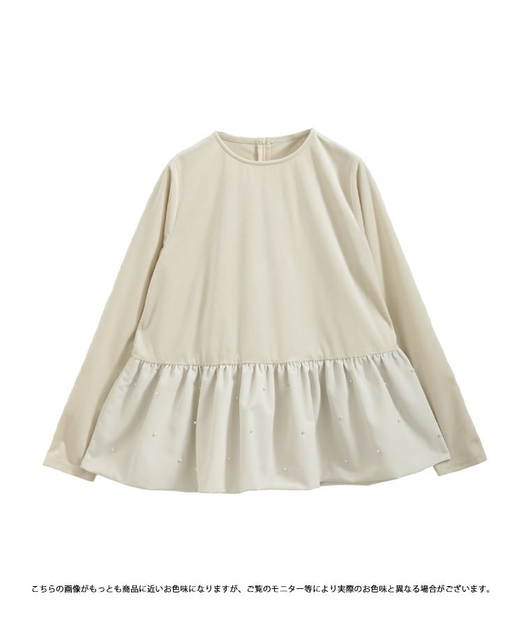 裾にパールを施したバルーンシルエットのベロアトップスが登場。