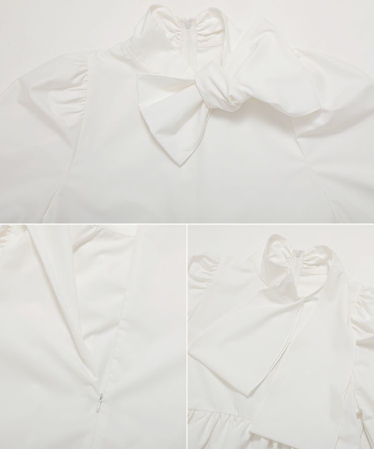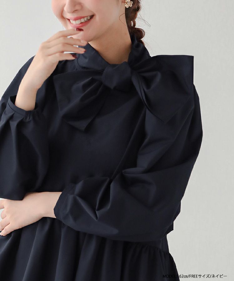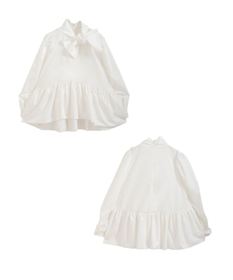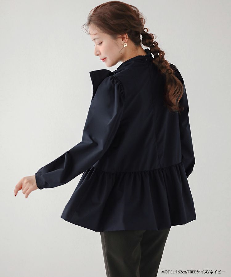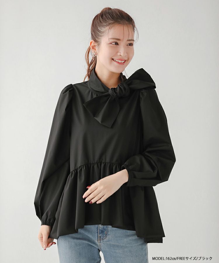 2024ss ss 春新作 リボン ペプラム ブラウス ボウタイペプラムブラウス【宅配便】