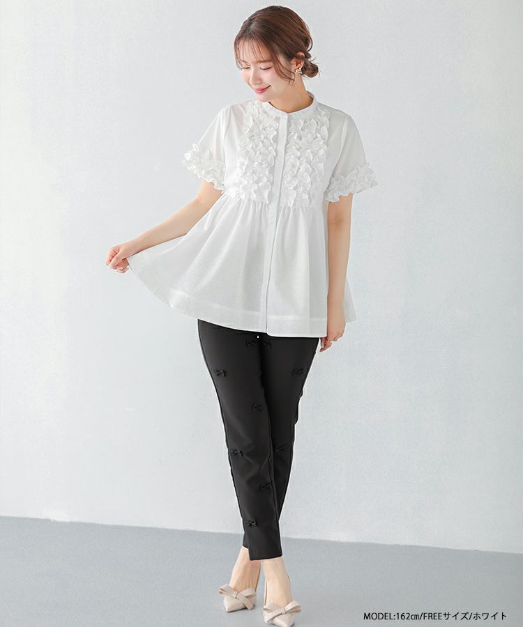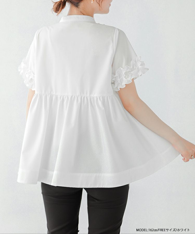 2024ss 夏新作 ブラウス フリル ペプラム シャツ フロントフリルペプラムブラウス【宅配便】