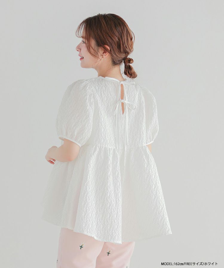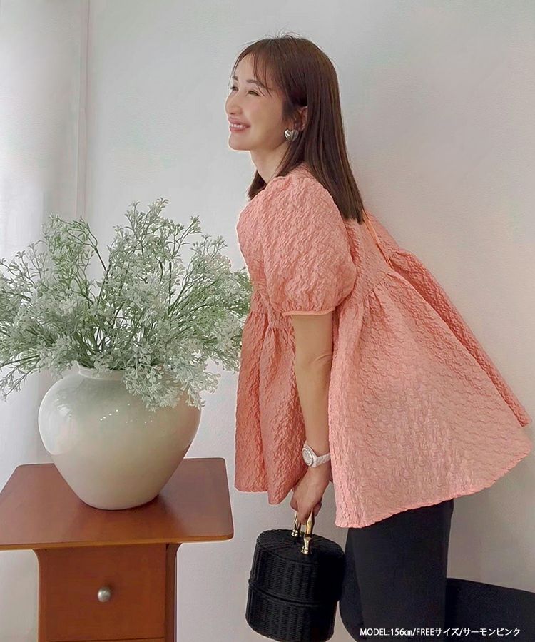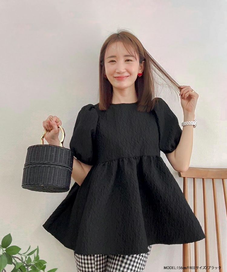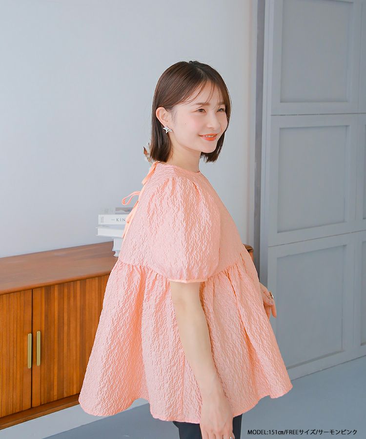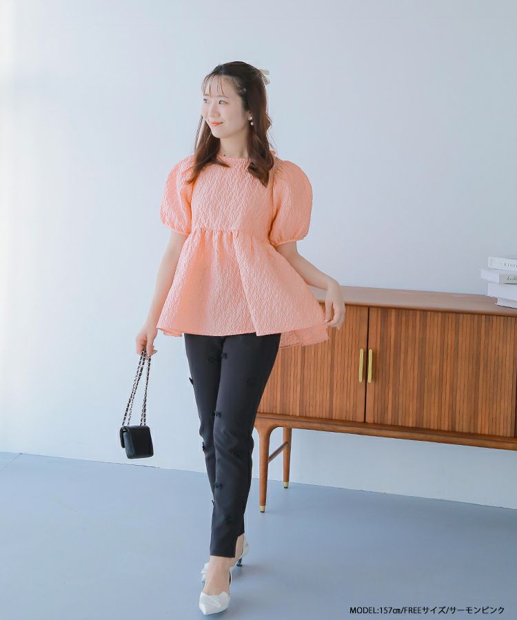 2024ss インフルエンサーコラボ リボン ジャガード コアラコラボ!バックリボンジャガードペプラムトップス【宅配便】