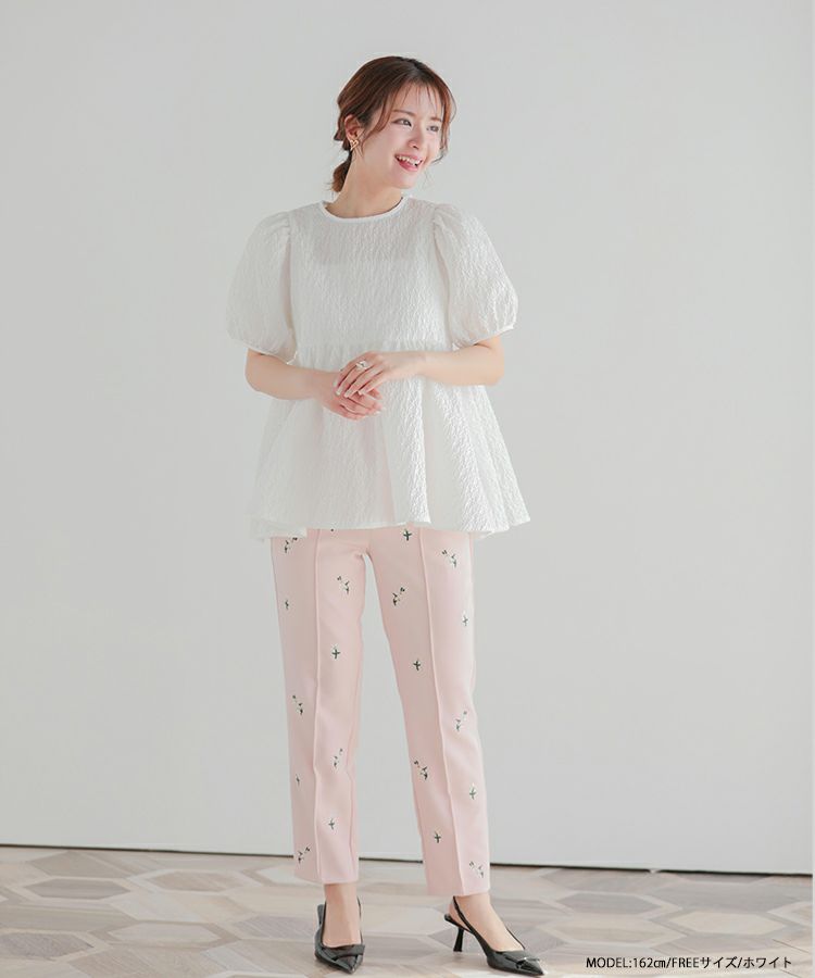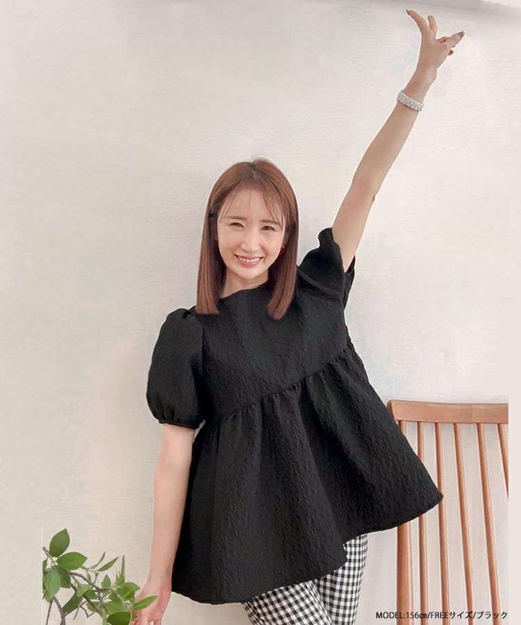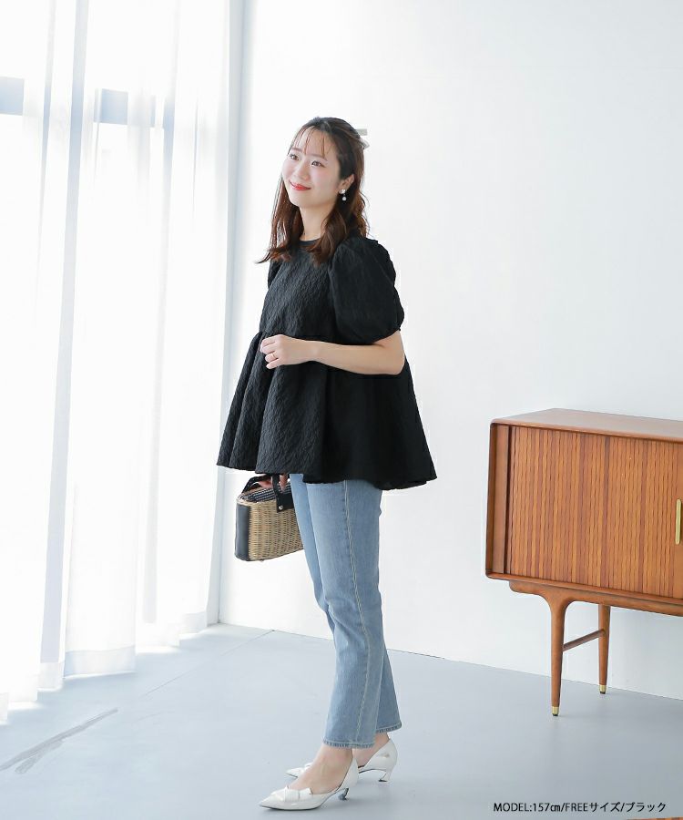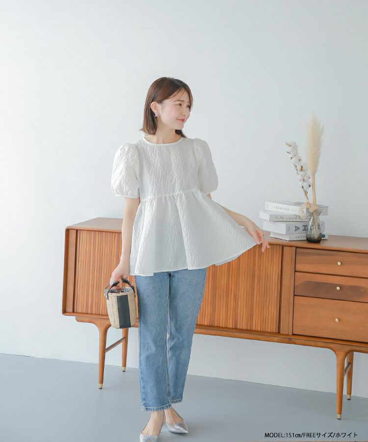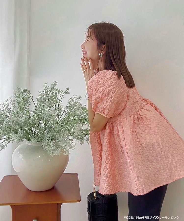 2024ss インフルエンサーコラボ リボン ジャガード コアラコラボ!バックリボンジャガードペプラムトップス【宅配便】