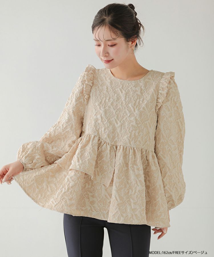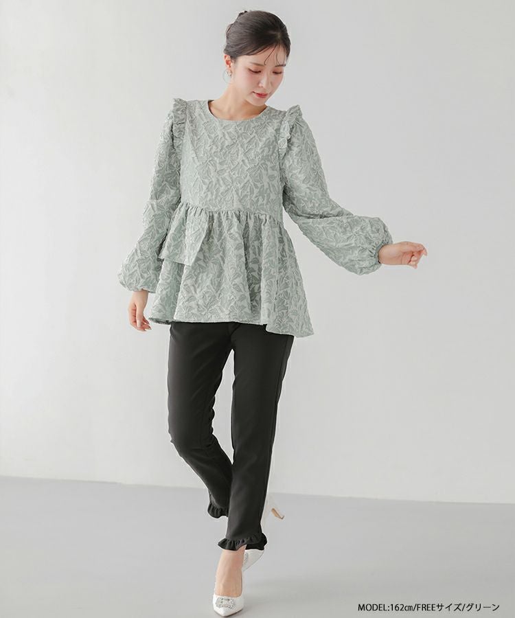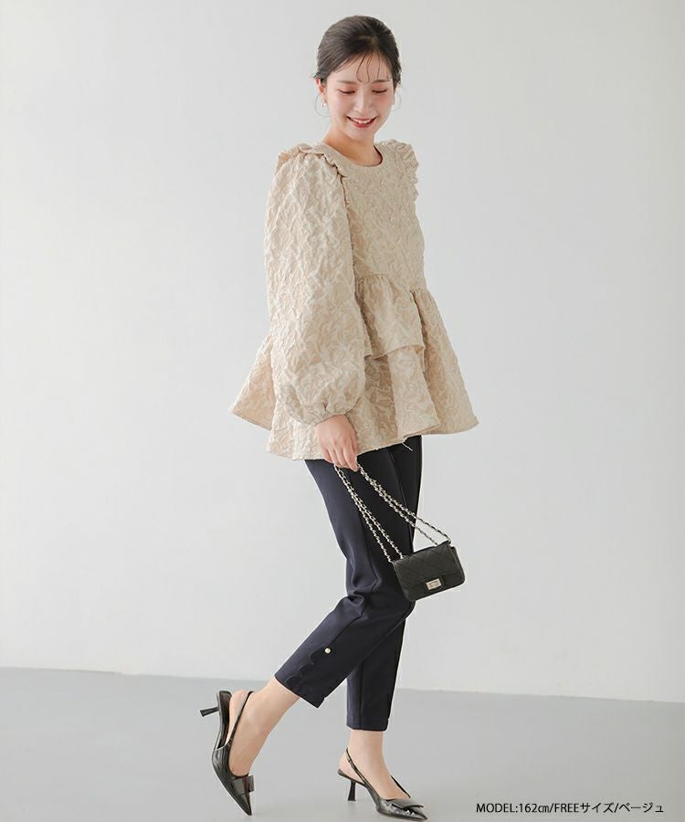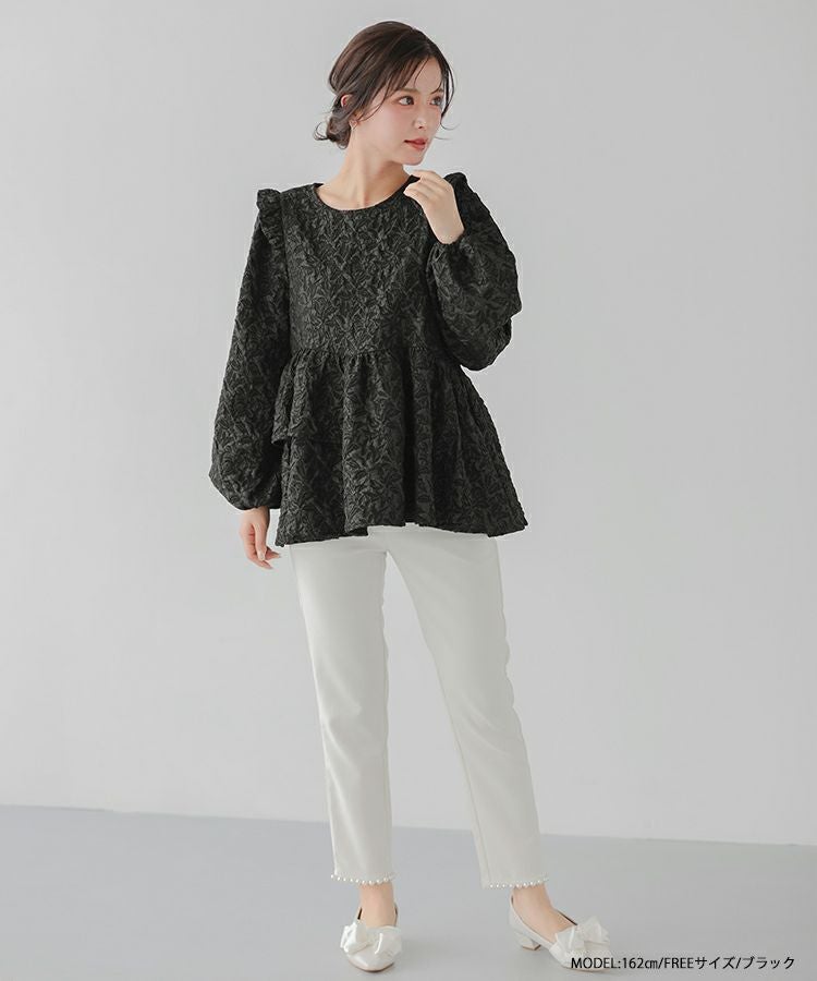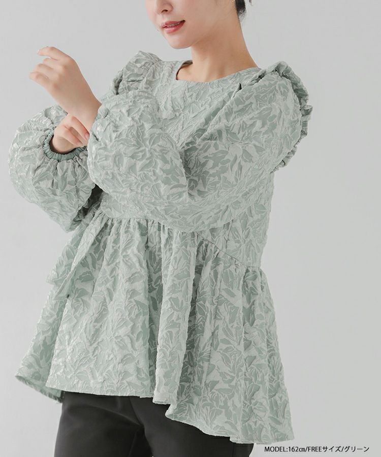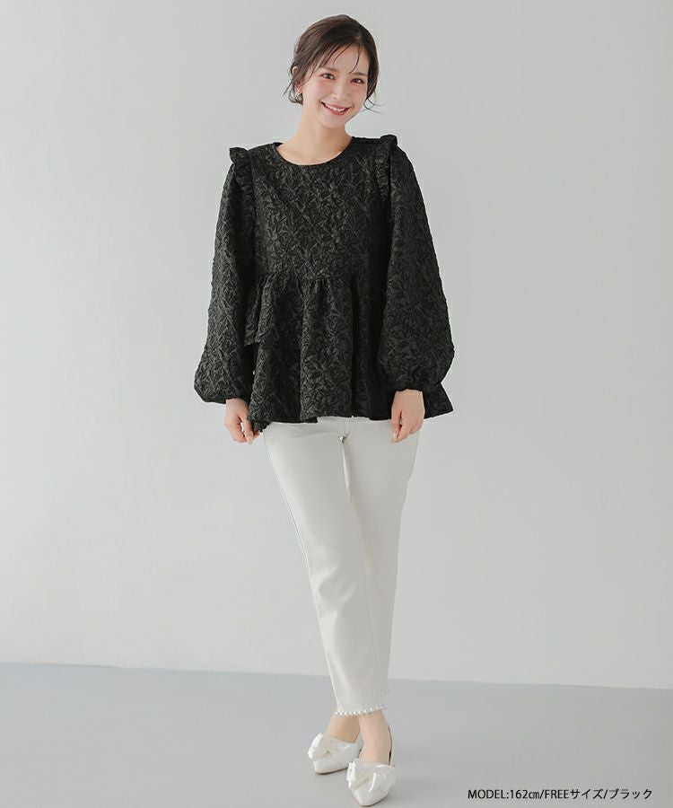 2024aw ジャガード ペプラム トップス アシンメトリー アシンメトリーフリルジャガードトップス【宅配便】