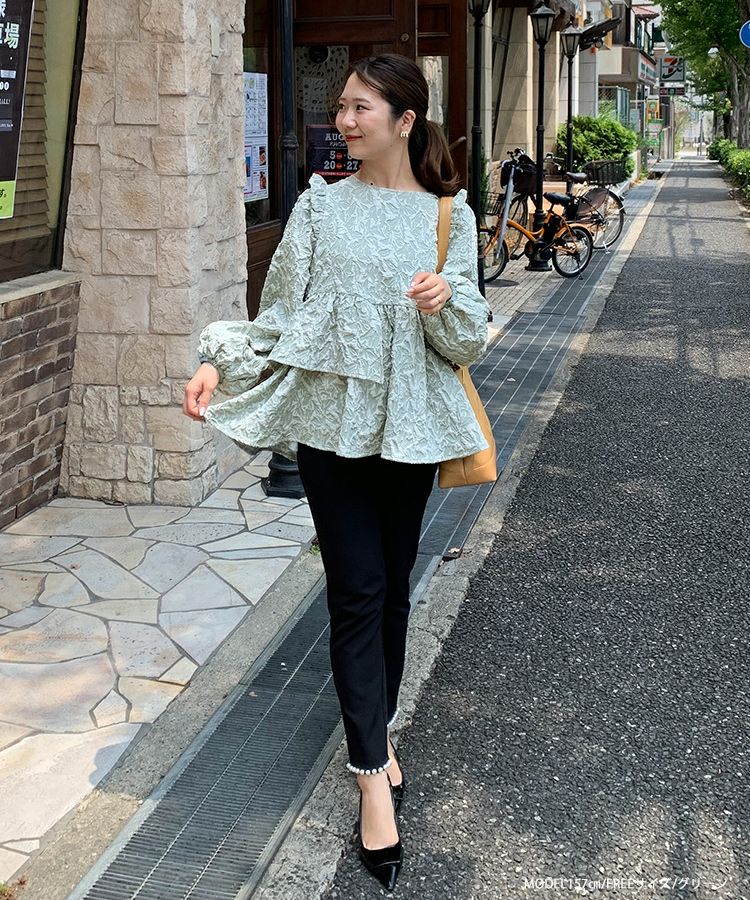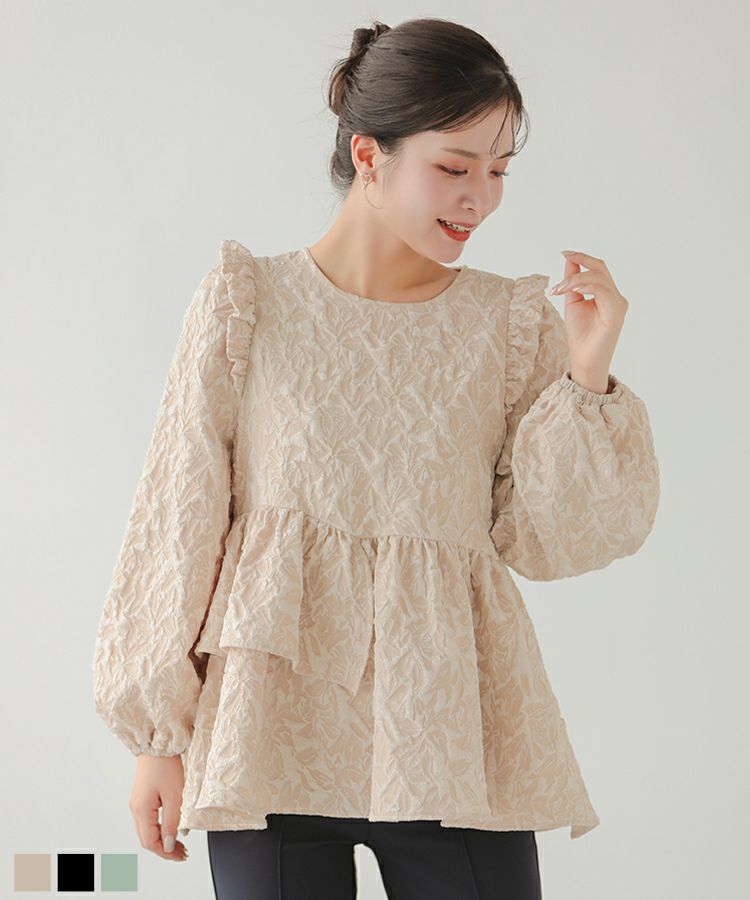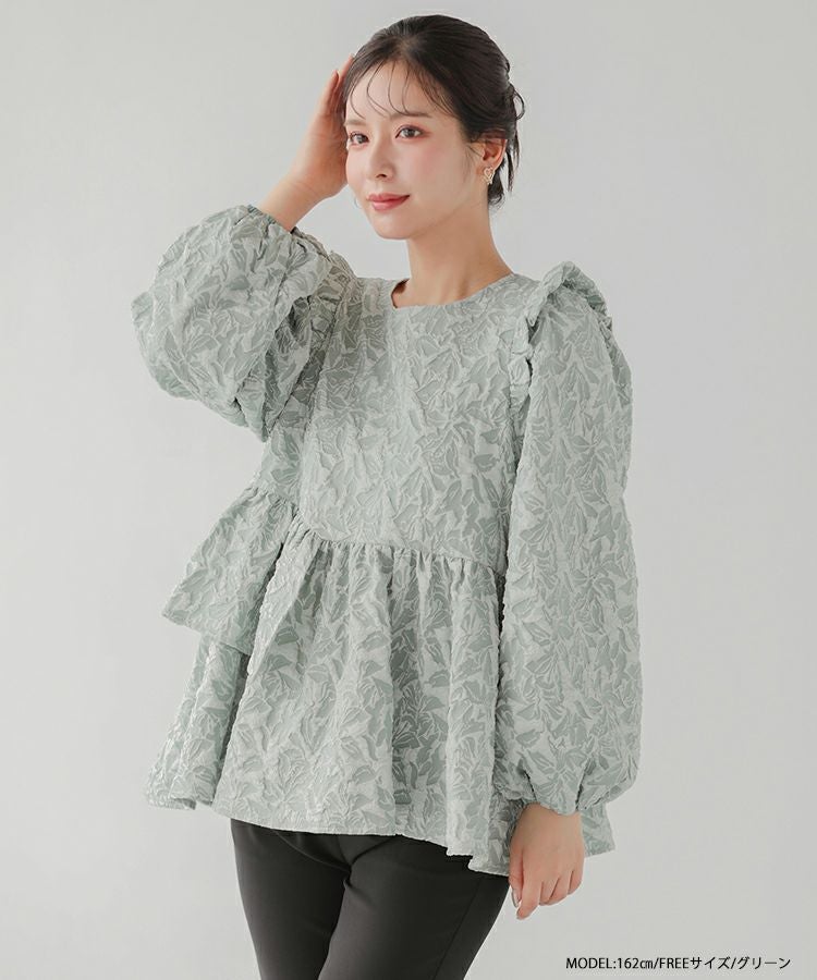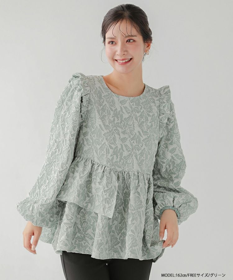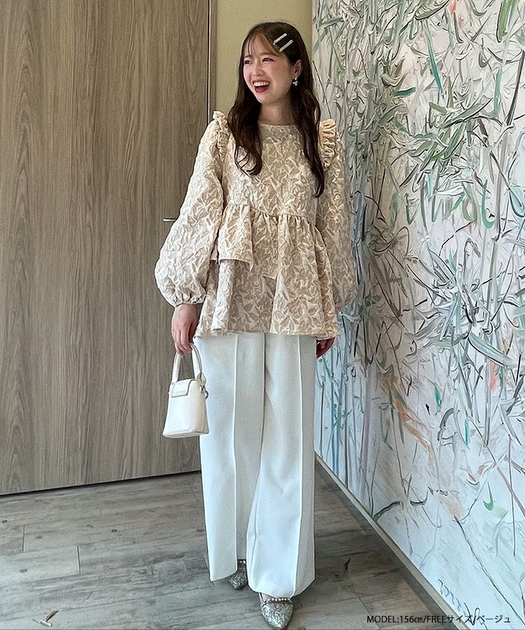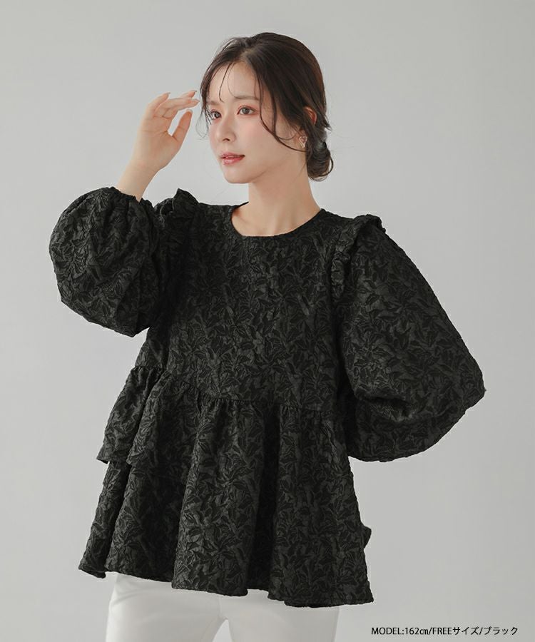 2024aw ジャガード ペプラム トップス アシンメトリー アシンメトリーフリルジャガードトップス【宅配便】