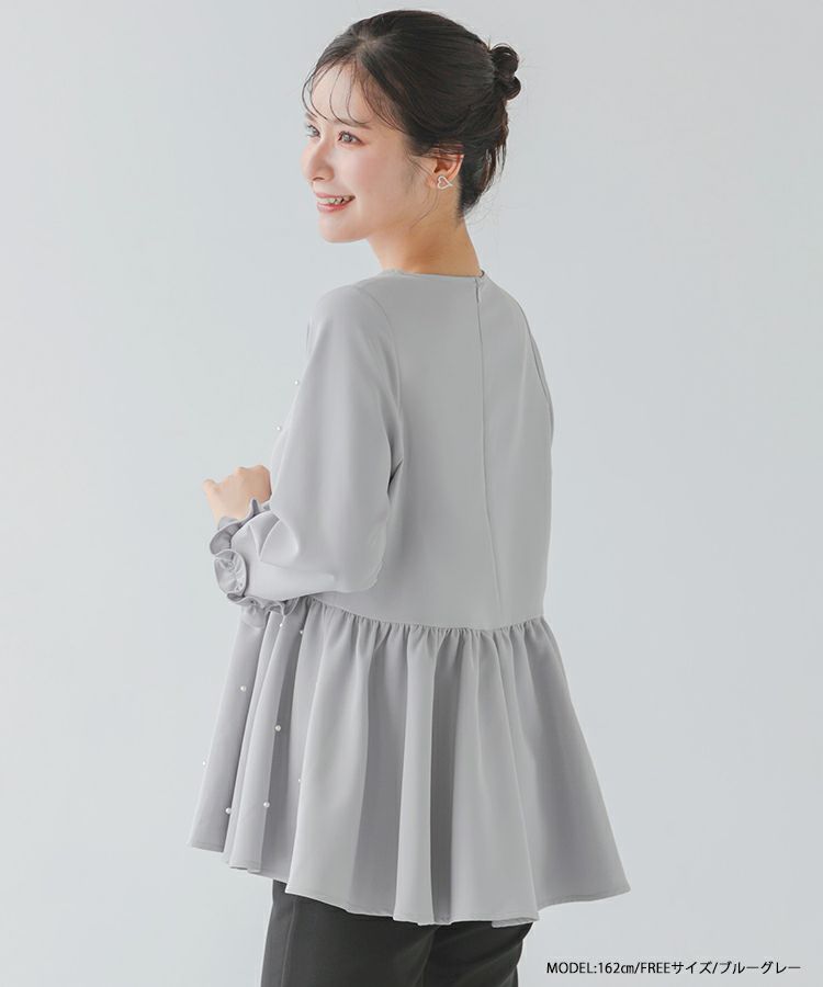 2024aw トップス パール ブラウス 【ZOZO限定商品】袖フリルパールペプラムトップス【宅配便】