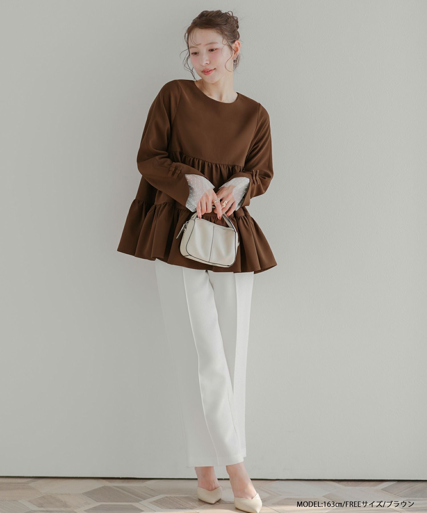 スリットスリーブから覗くドットチュールが上品なトップスが登場。