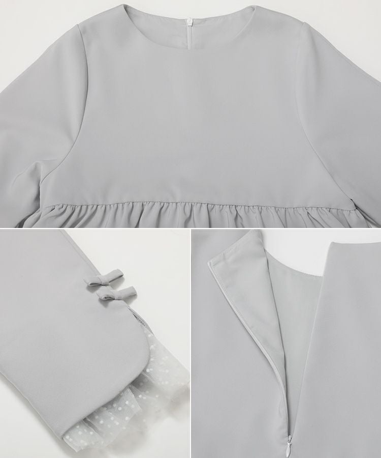 袖部分にスリットを施し、ドットチュール生地をレイヤードすることで