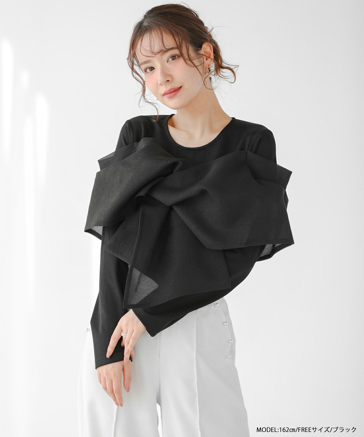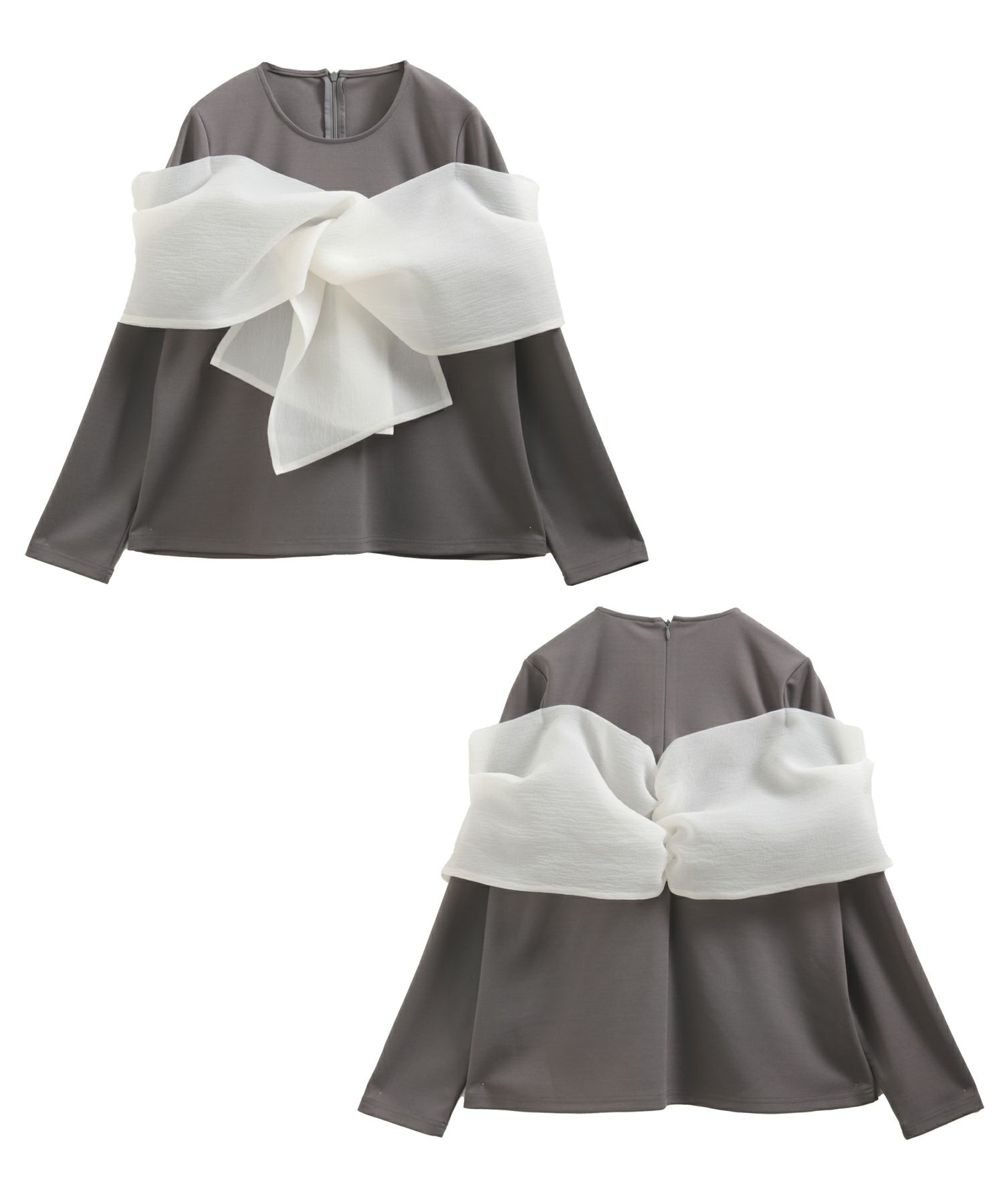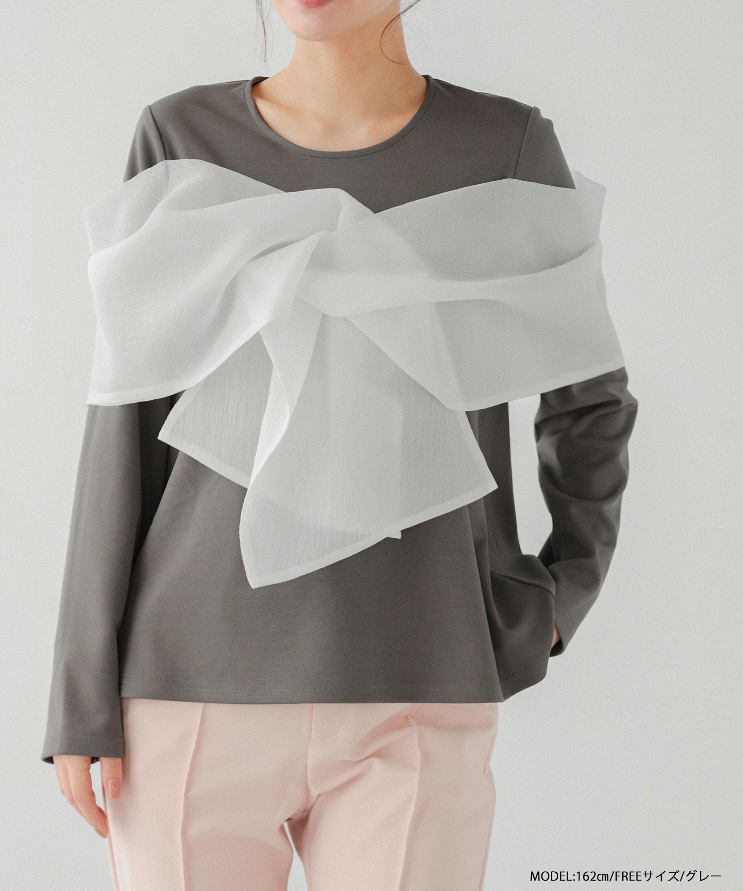 オーガンジーのショールをまとったようなデザイン性のあるカットソー。