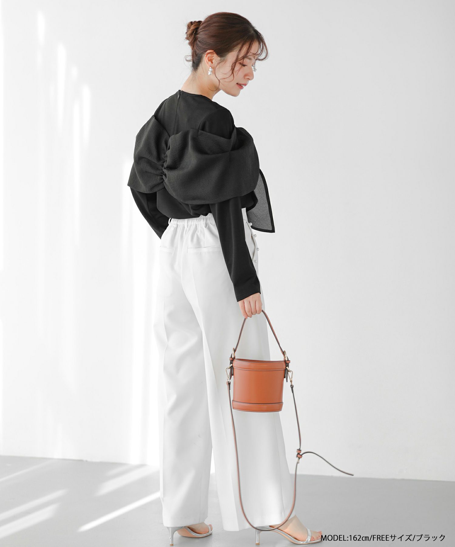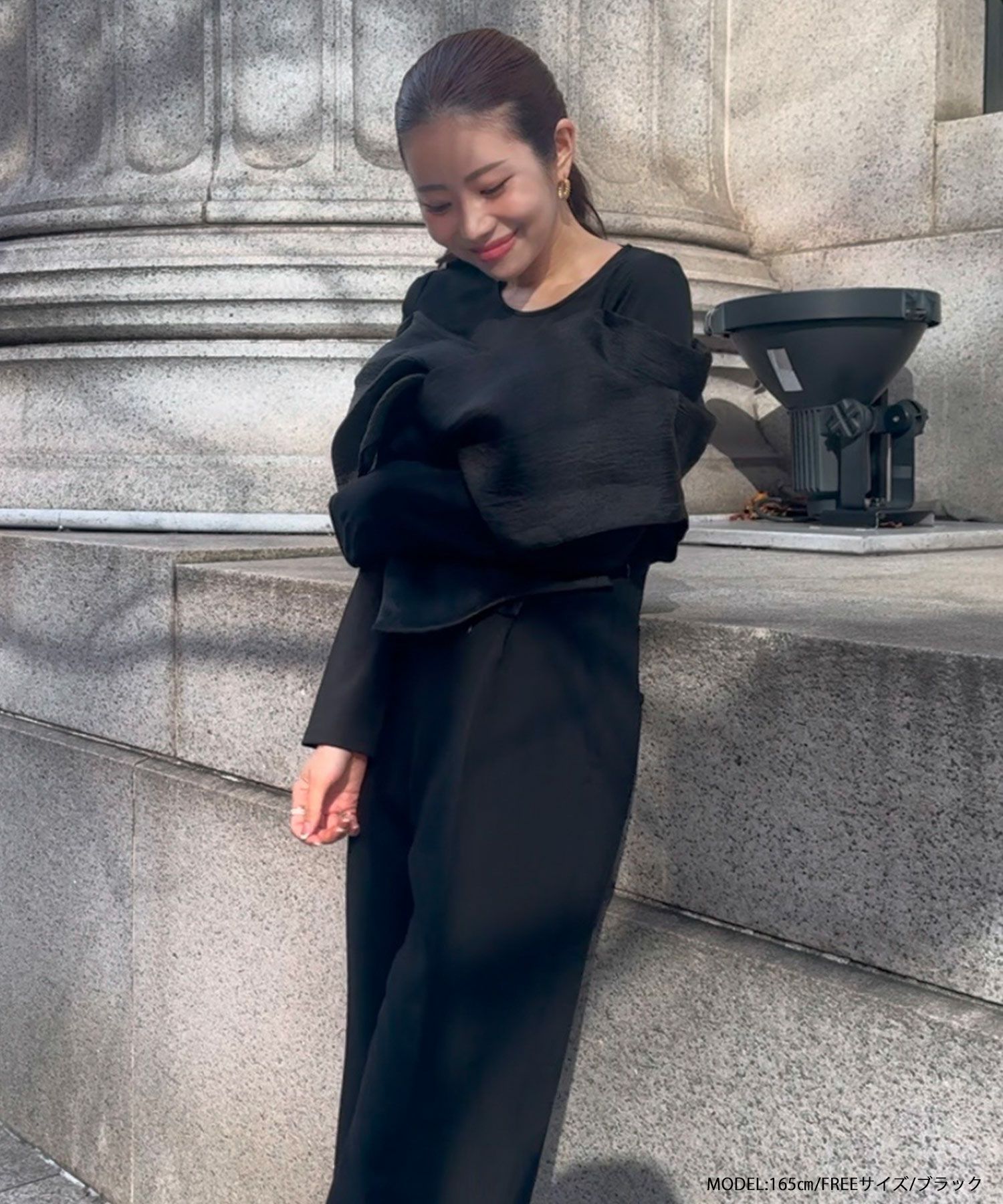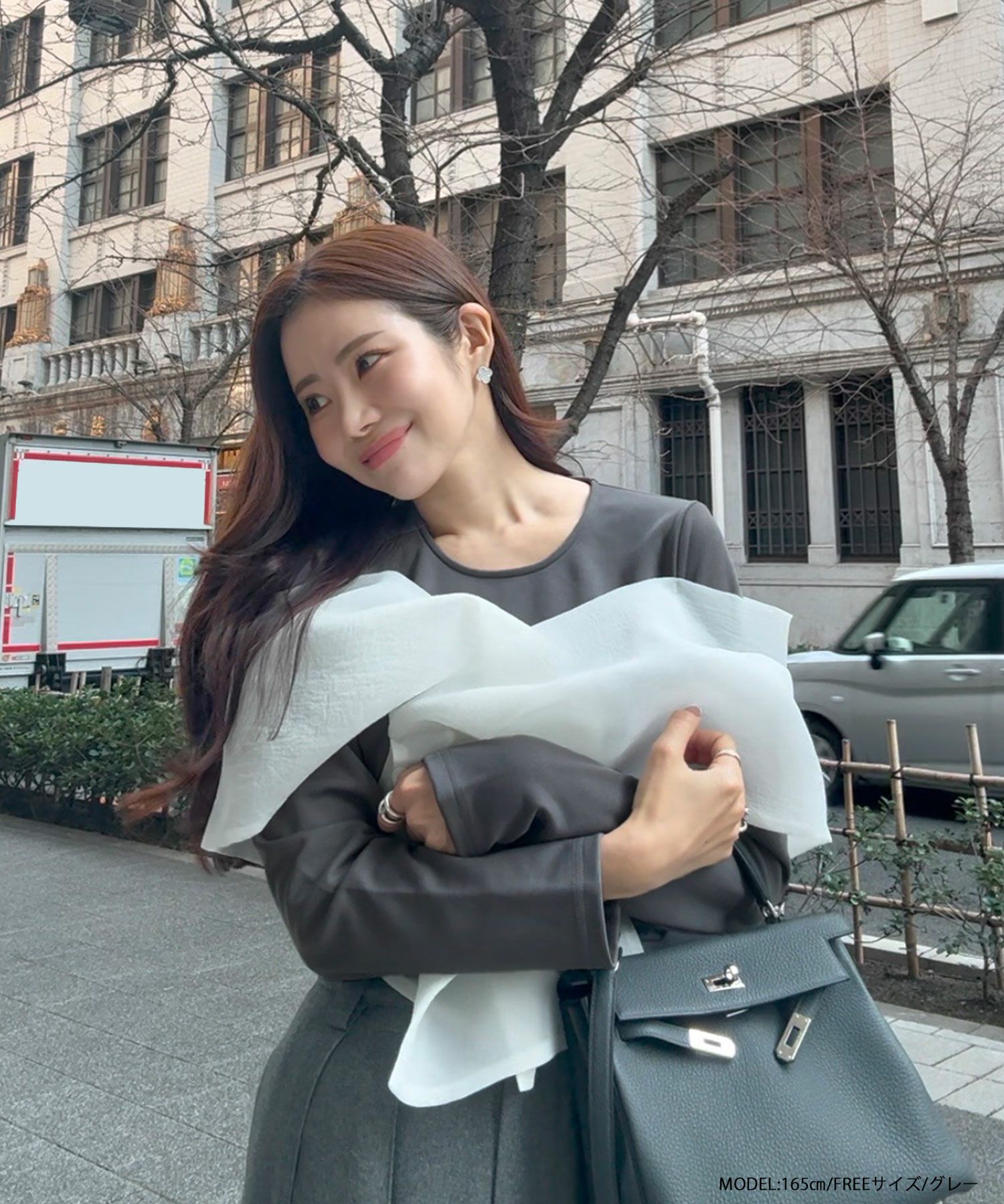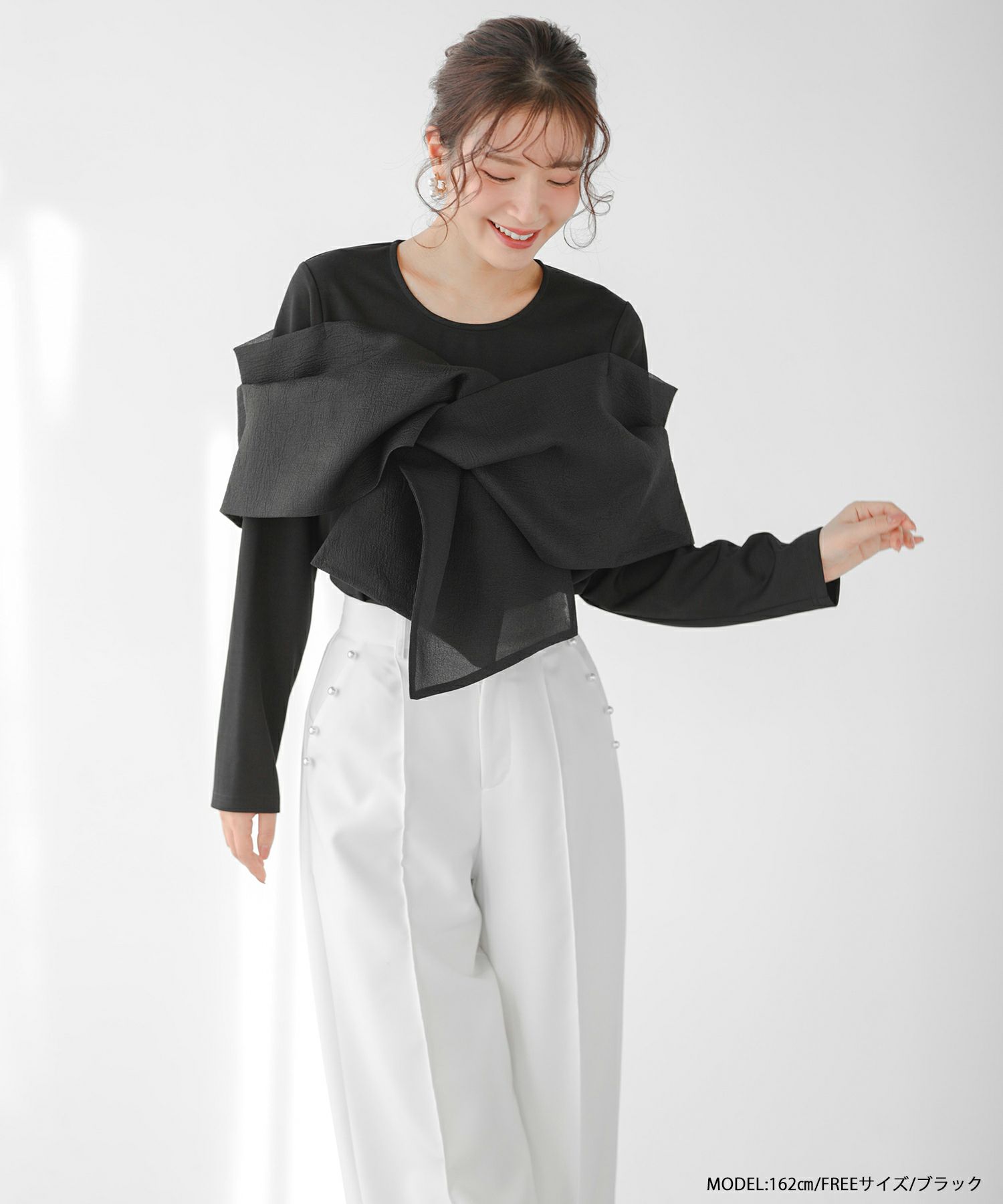 オーガンジーのショールをまとったようなデザイン性のあるカットソー。