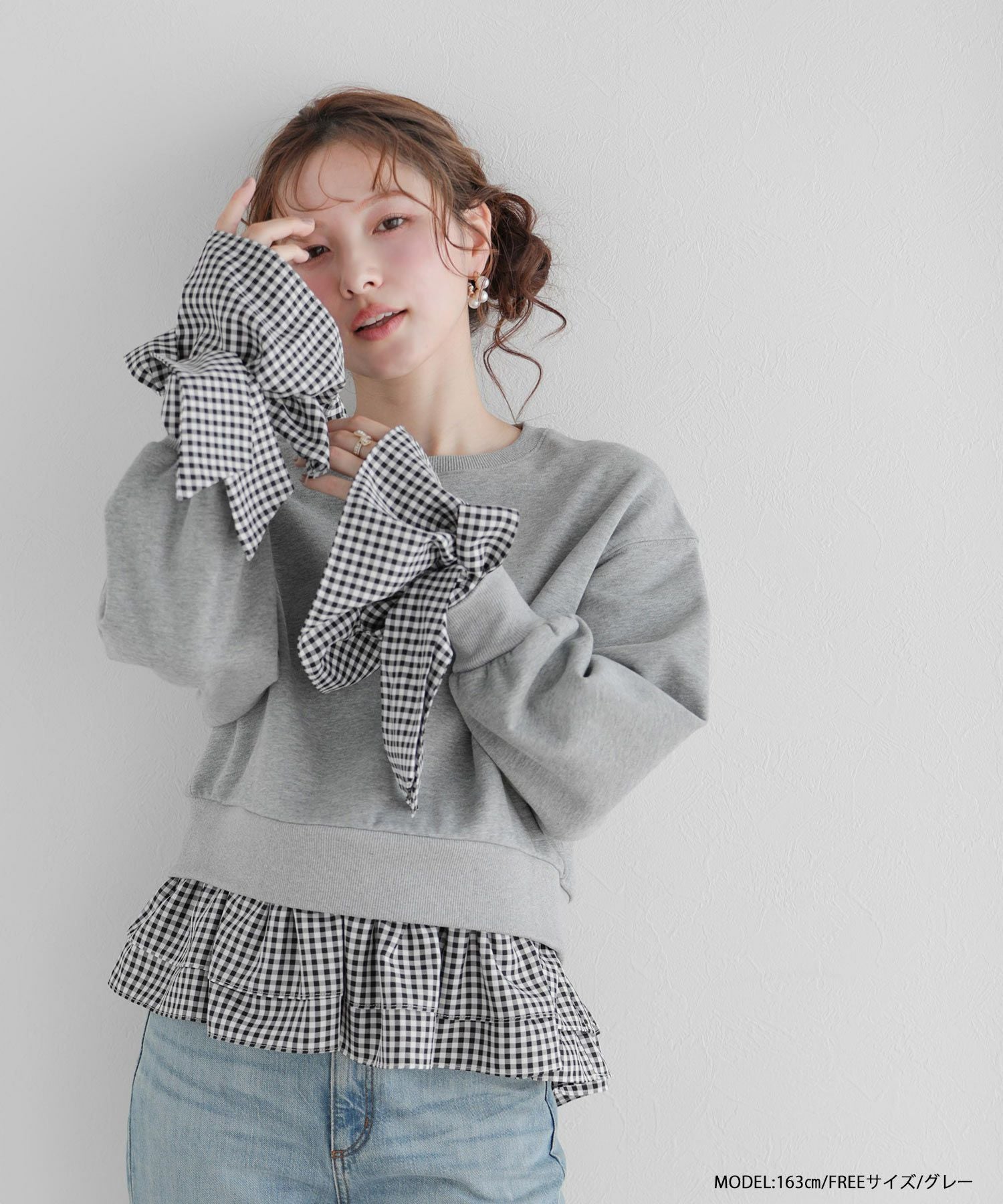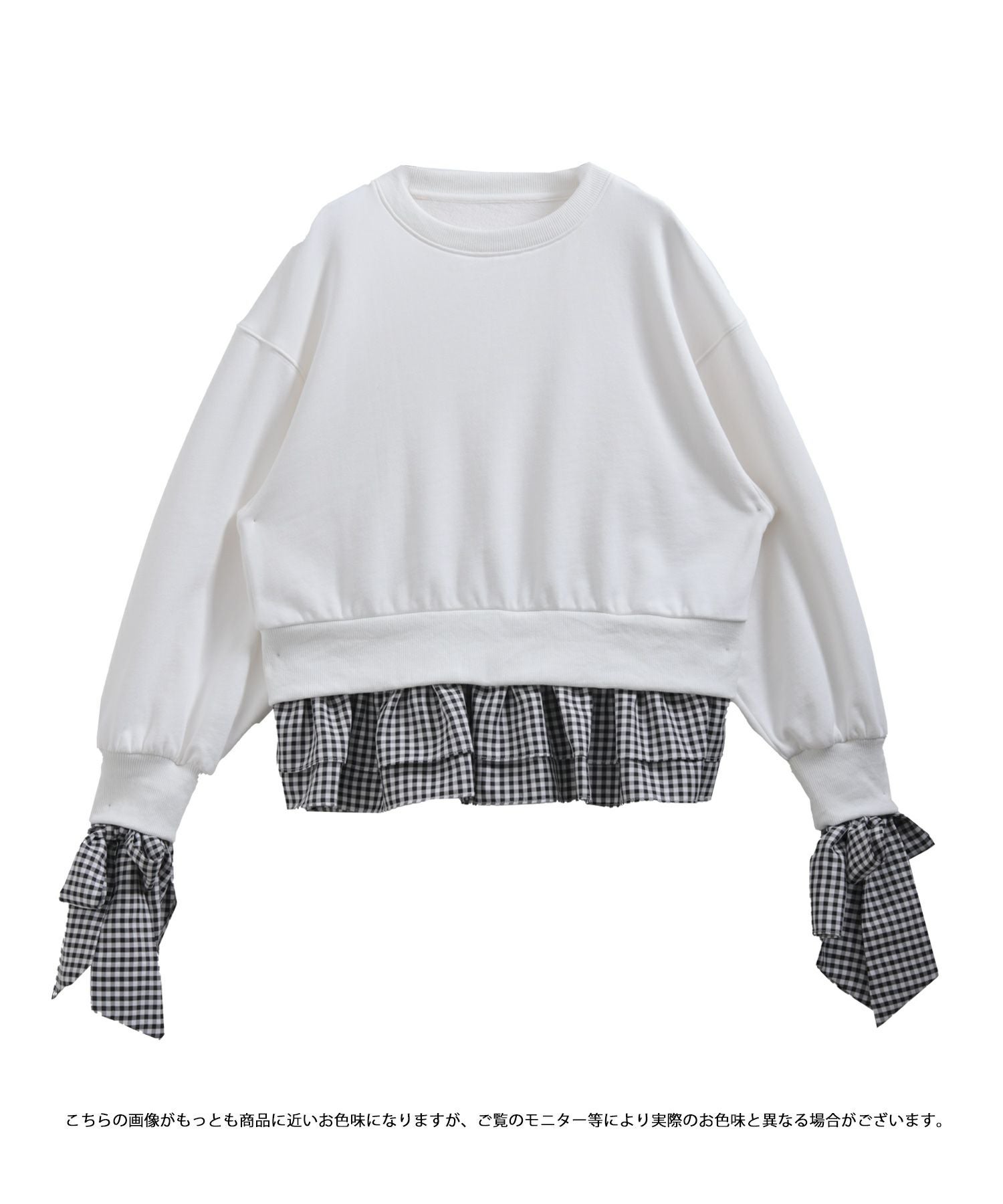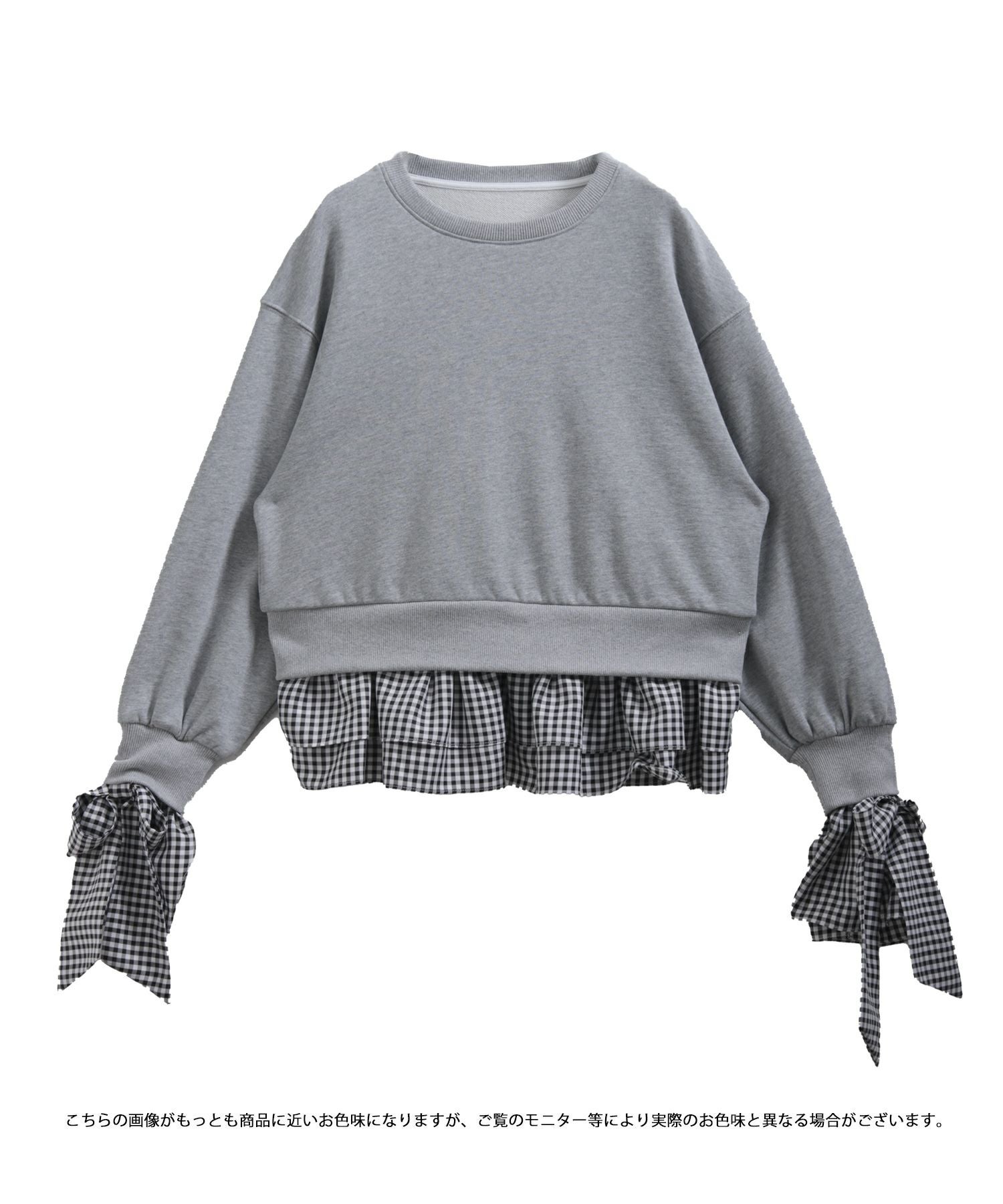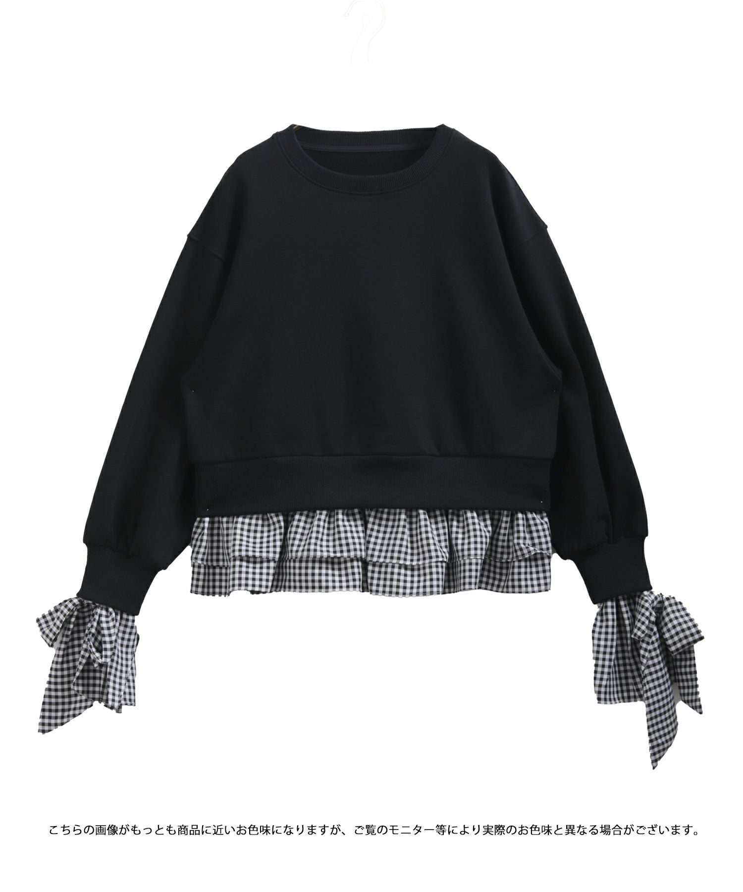 2025aw ギンガムチェック リボン フリル スウェット ギンガムリボンカフススウェットトップス【宅配便】