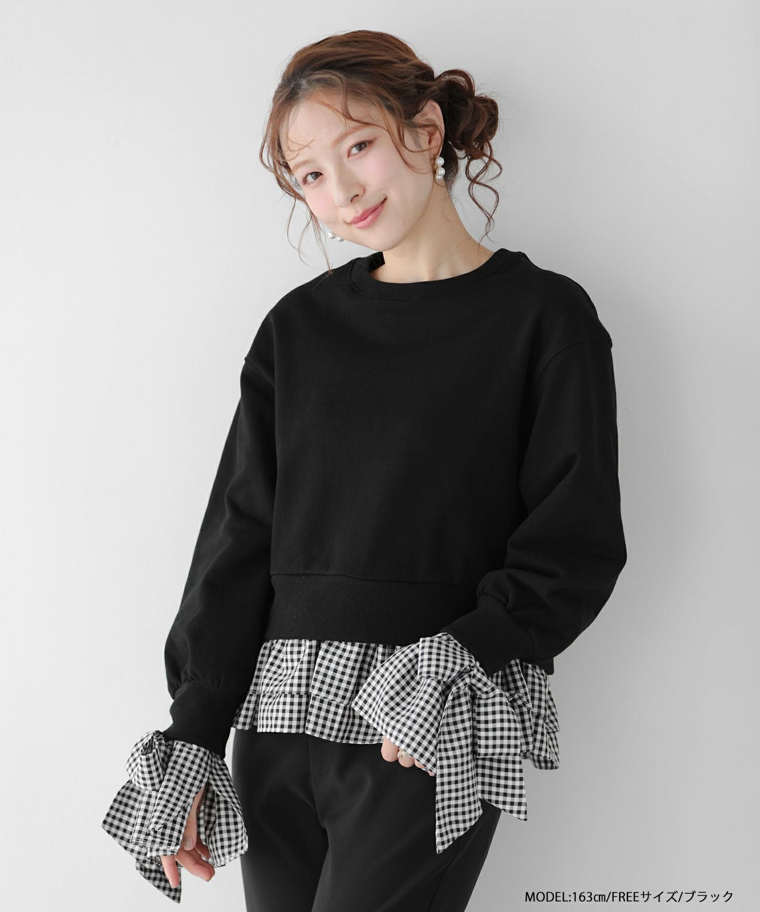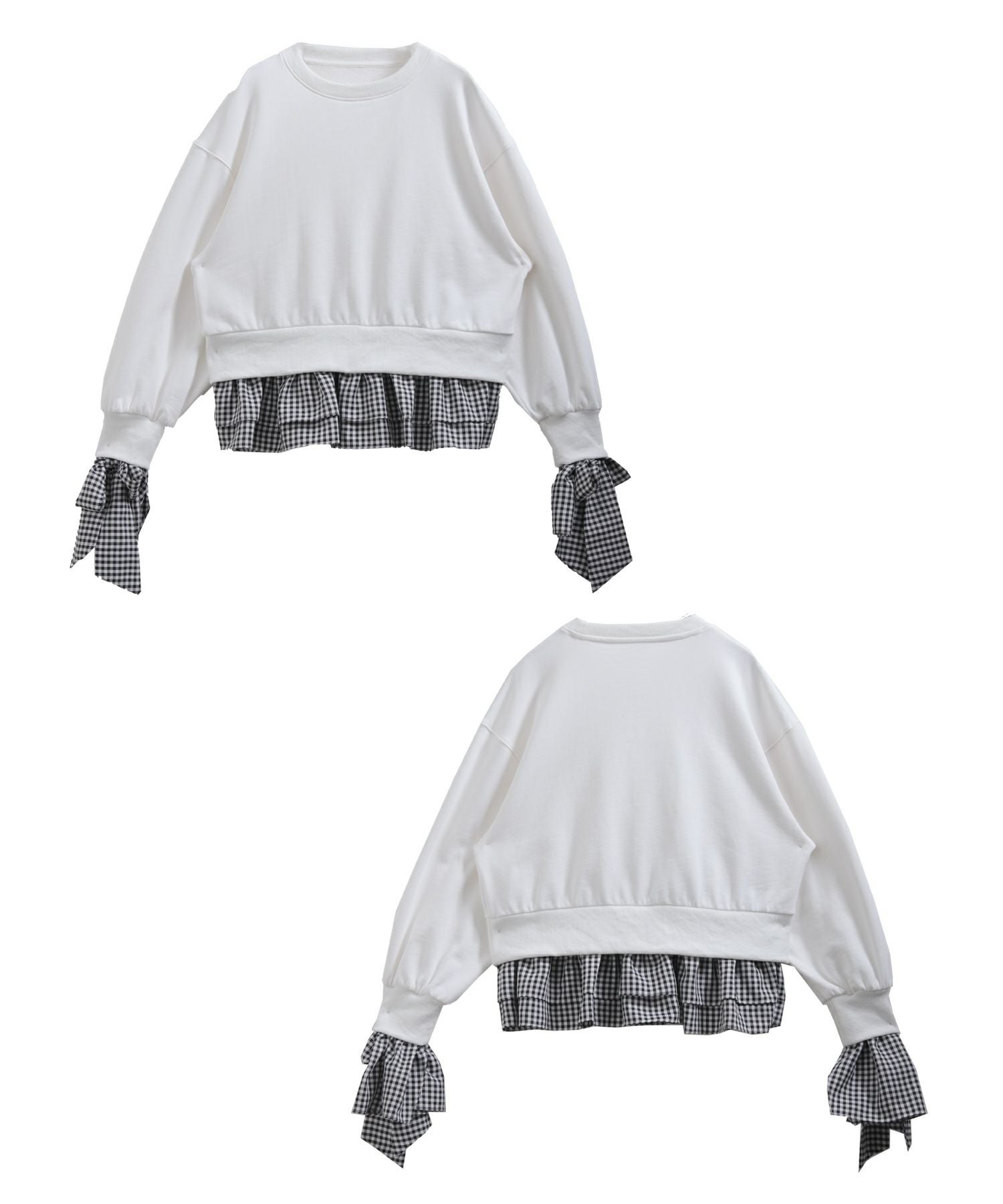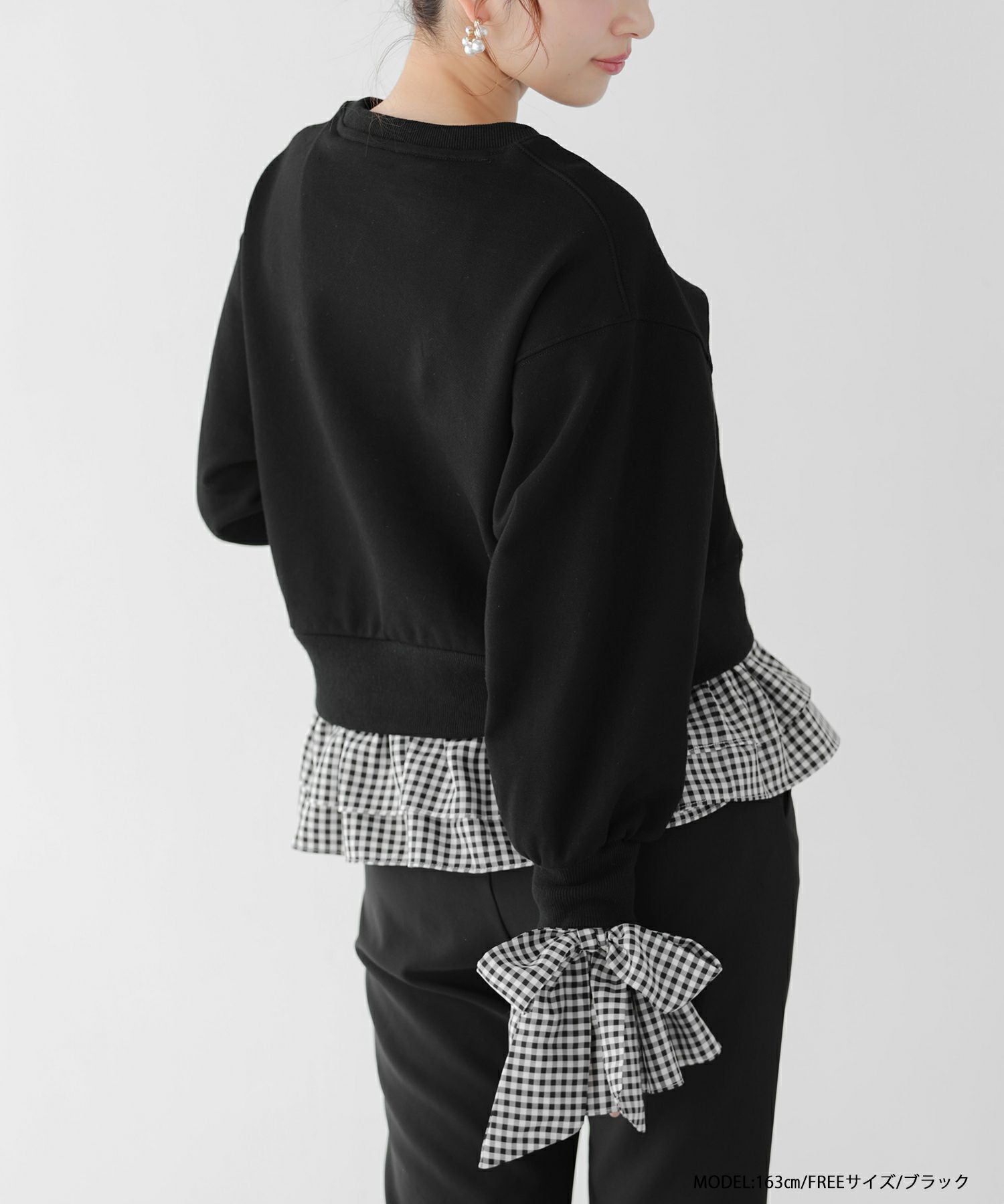 2025aw ギンガムチェック リボン フリル スウェット ギンガムリボンカフススウェットトップス【宅配便】