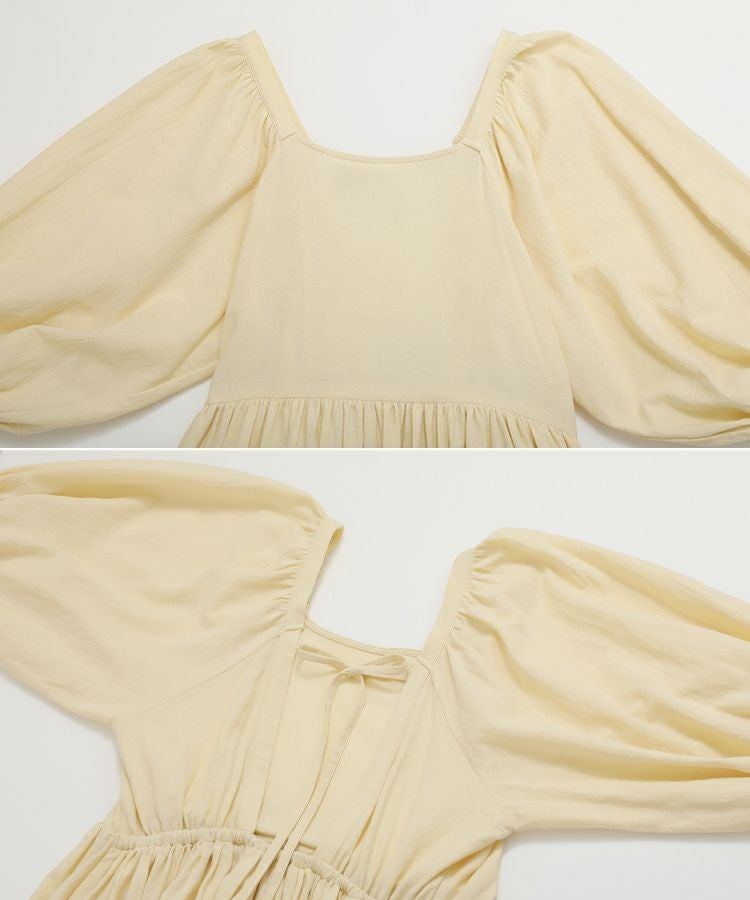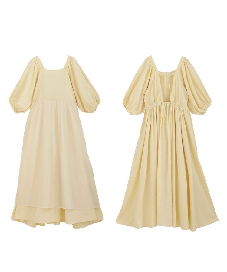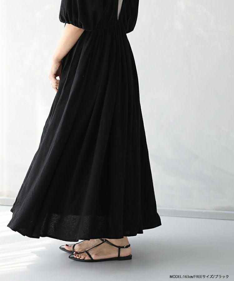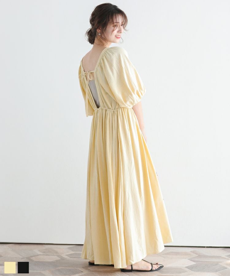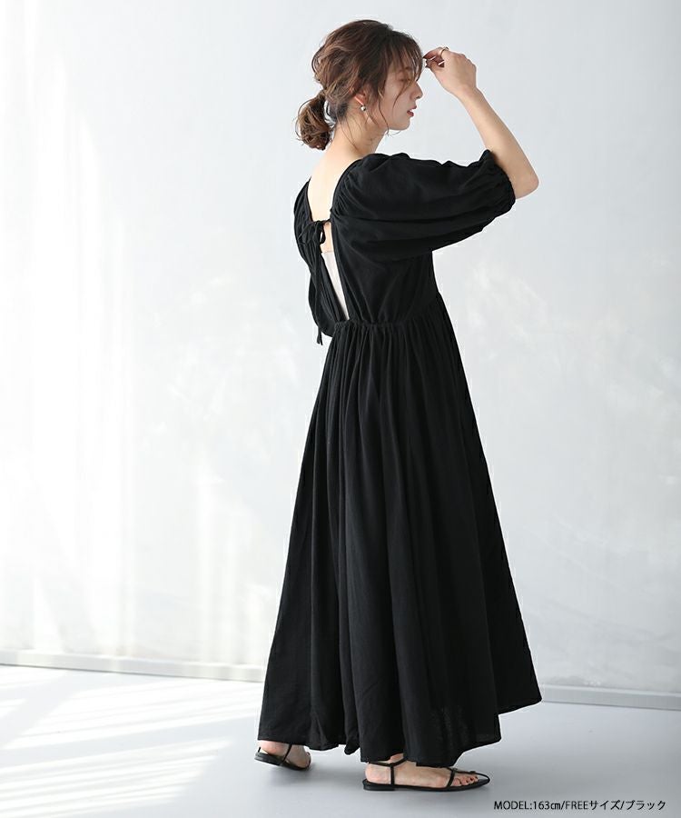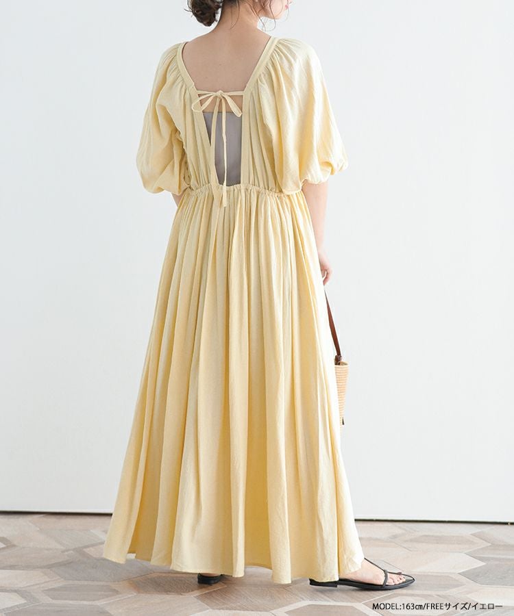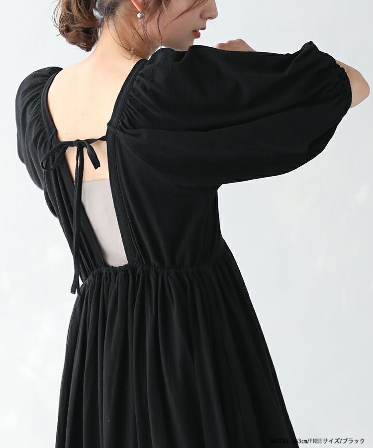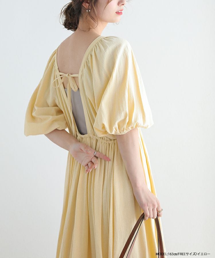 春コレクション 2022春 2022ss 春新作 春秋 春物 ワンピース ロングワンピース ワンピ ボリュームスリーブ パフスリーブ バックオープン バックリボン ボリュームスリーブバックシャンワンピース【宅配便】