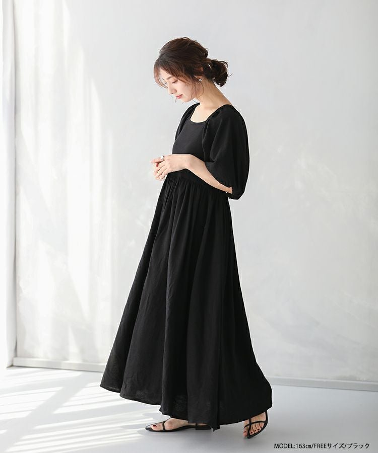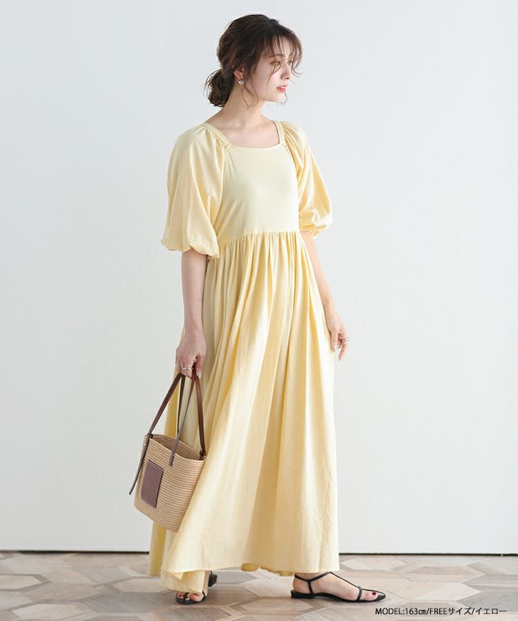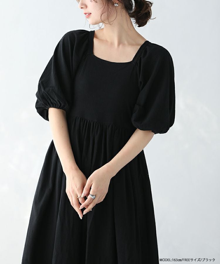 一枚でコーディネートが決まるバルーンスリーブワンピース