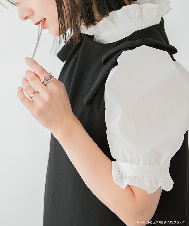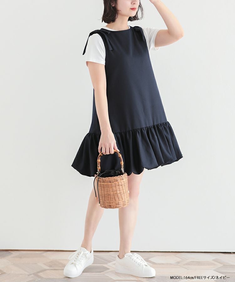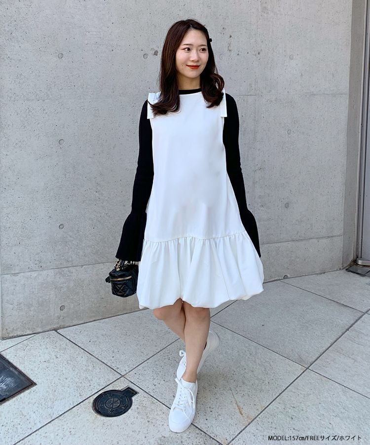 2023ss 春新作  ニットワンピース ワンピース バルーン リボン ショルダーリボンバルーンワンピース【宅配便】