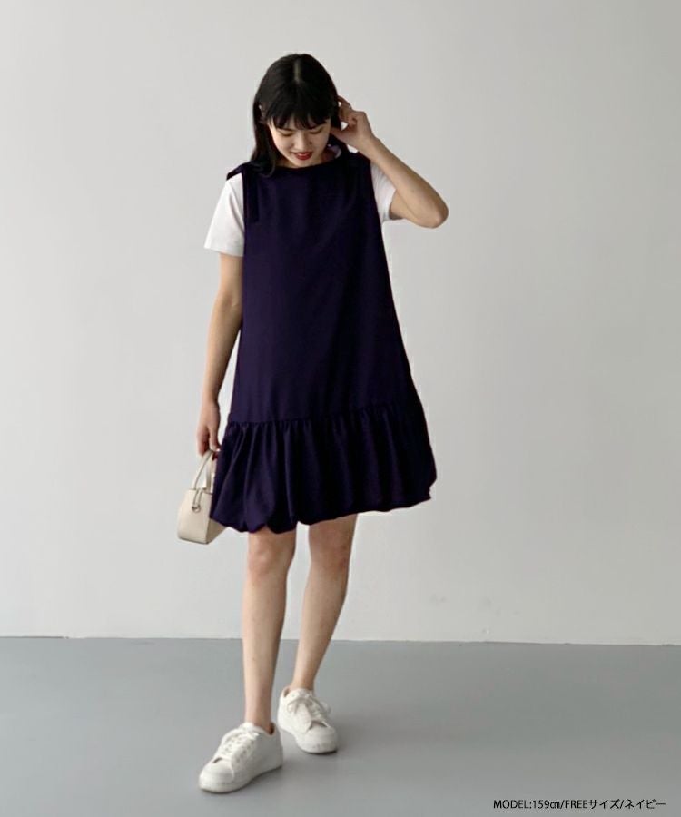 裾のバルーンシルエットが印象的で、動きのある裾が可愛い主役級のワンピ。