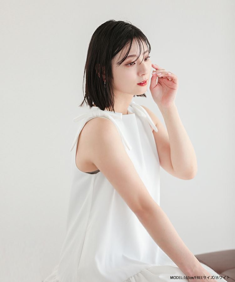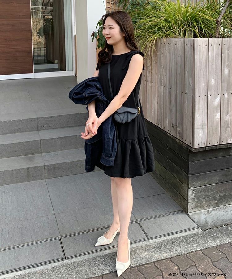 肩についた立体的なリボンは可愛くなりすぎない絶妙な大きさ。