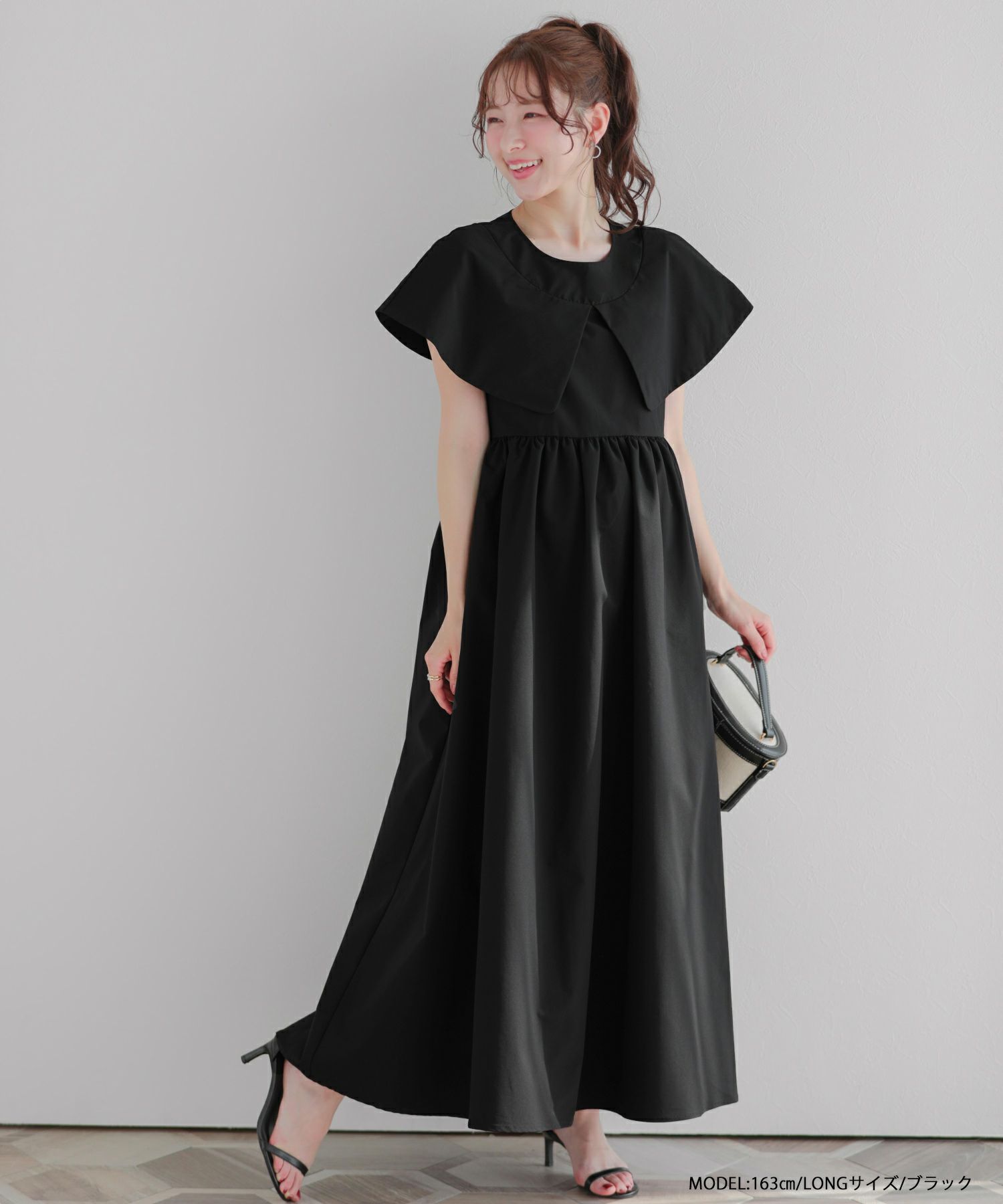 2025ss 衿 カラー ギャザー ワンピース ケープ ケープカラーワンピース【宅配便】
