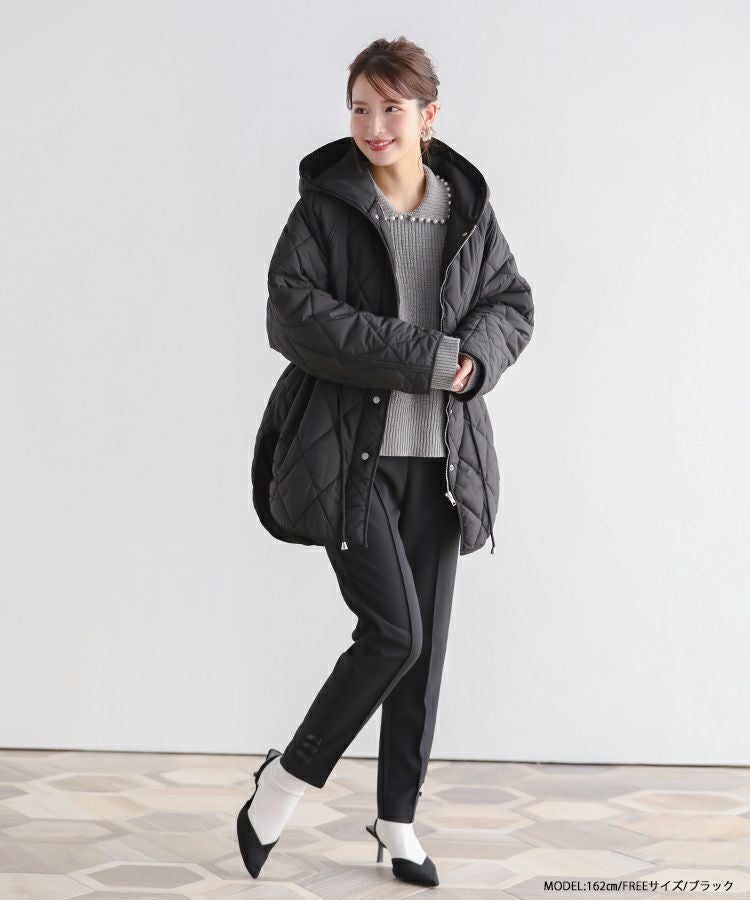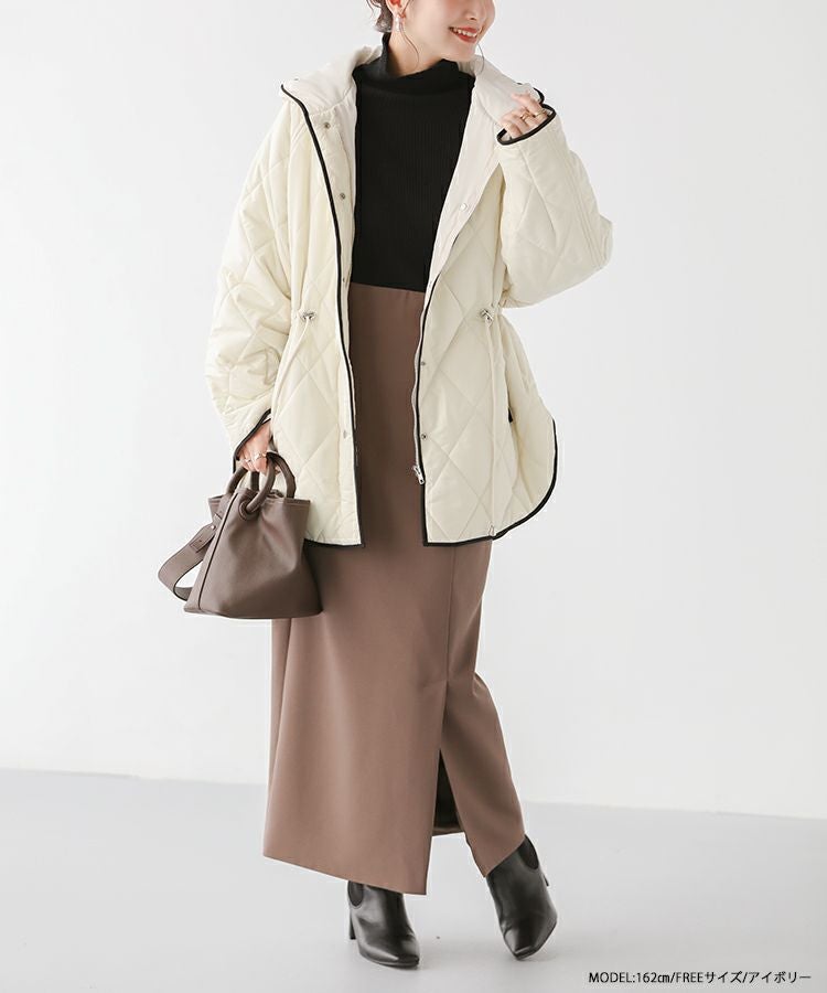 ウエストを絞ると着ぶくれした印象を避け、暖かいのにスッキリ見えて