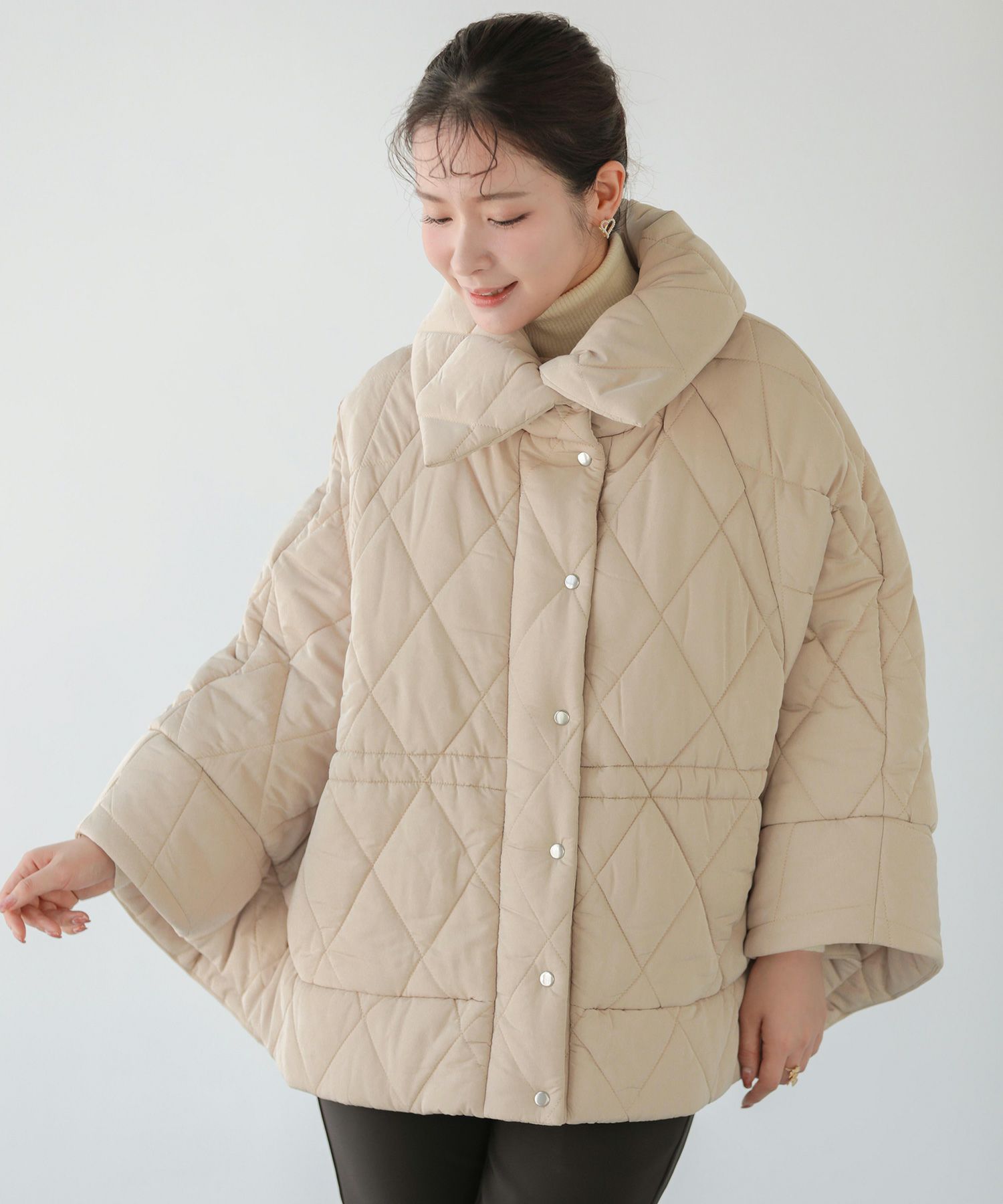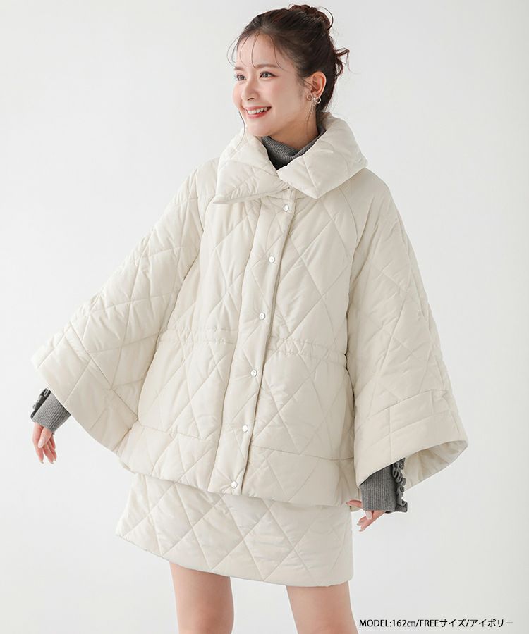 中綿が入ったポンチョ型のアウターが登場。