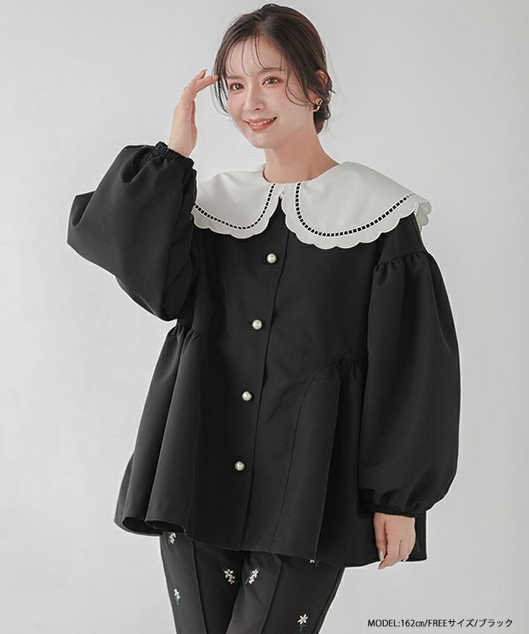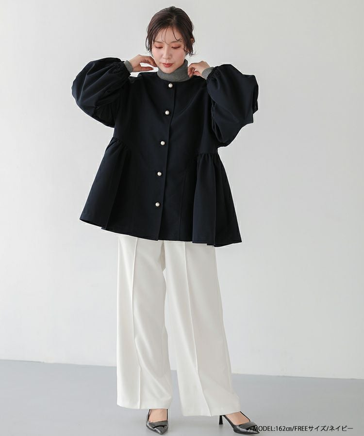 2024aw ライトアウター アウター ペプラム パール パールボタンギャザーペプラムジャケット【宅配便】