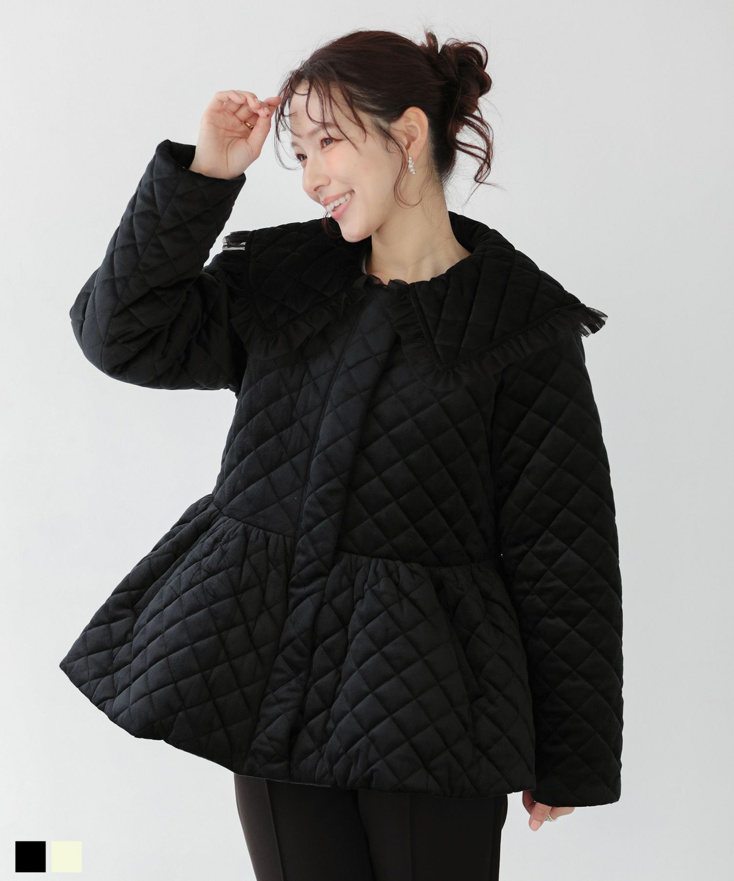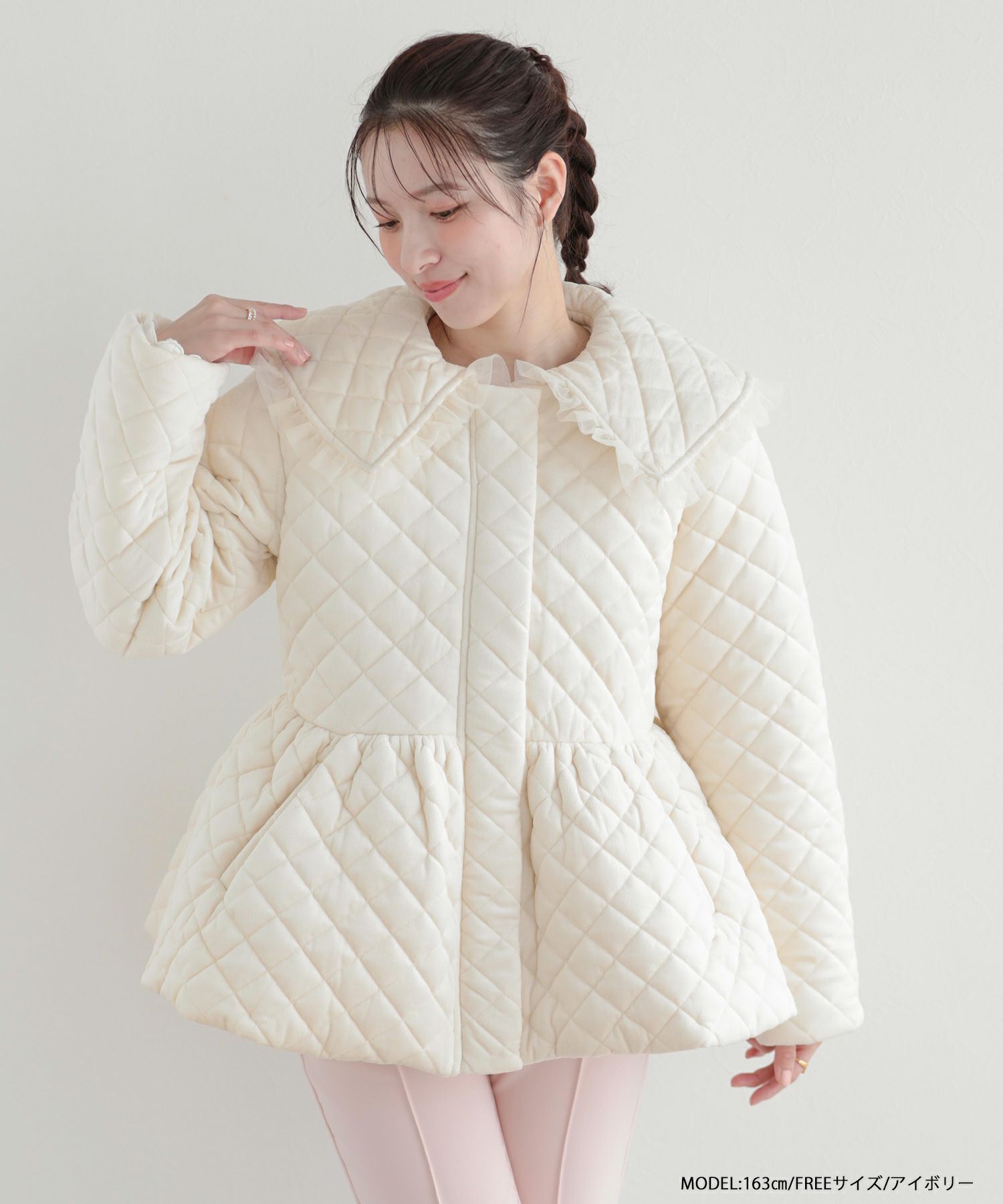 2025aw アウター コート ペプラム ベロア ベロアチュール襟ペプラムアウター【予約12/22~順次発送】【宅配便】
