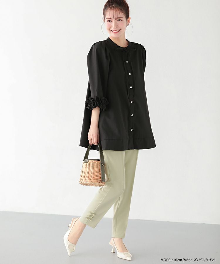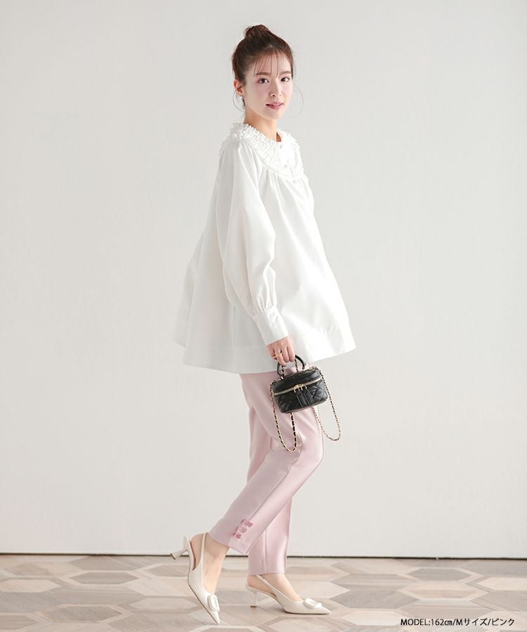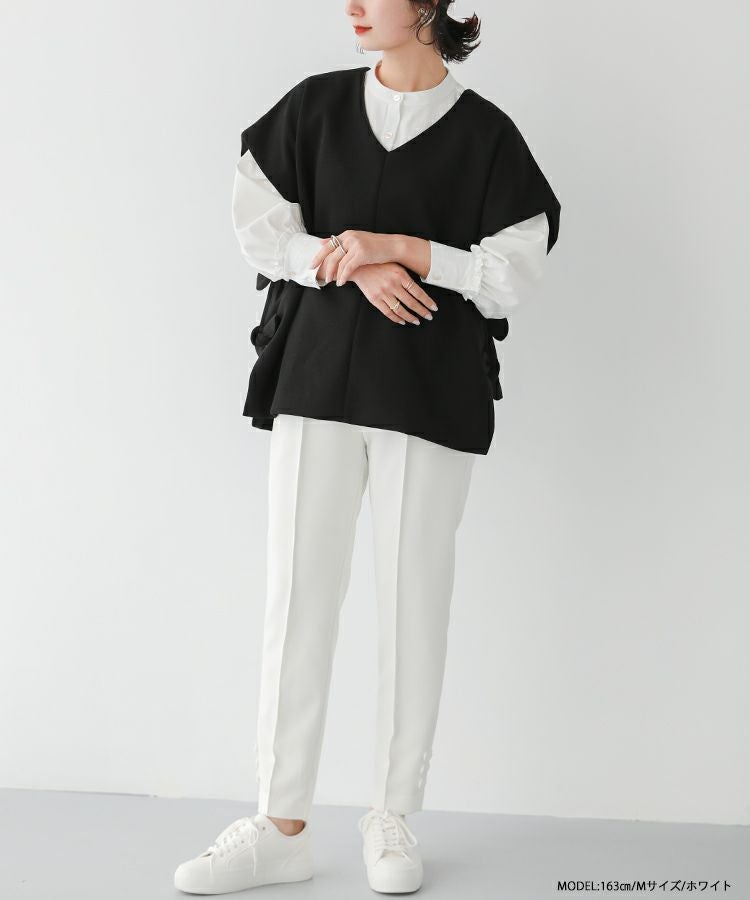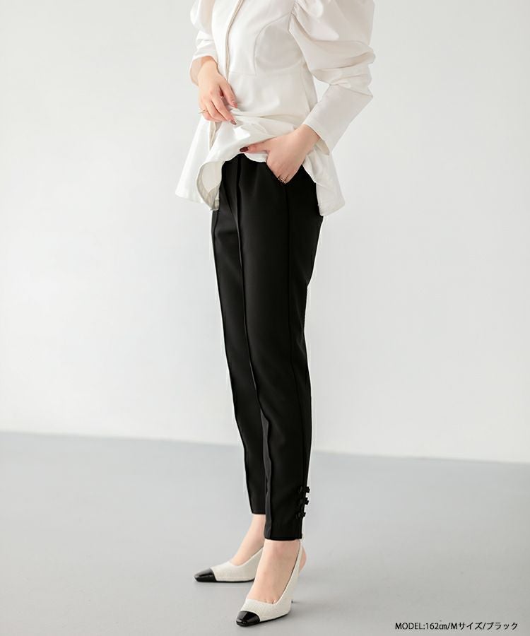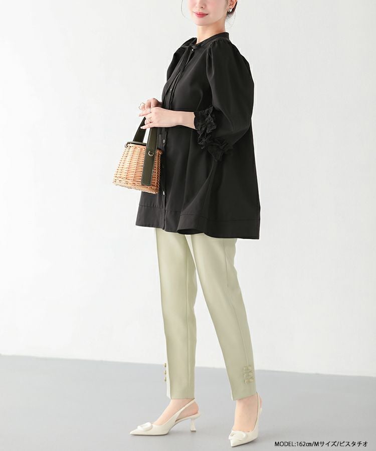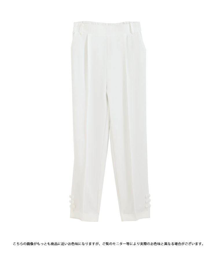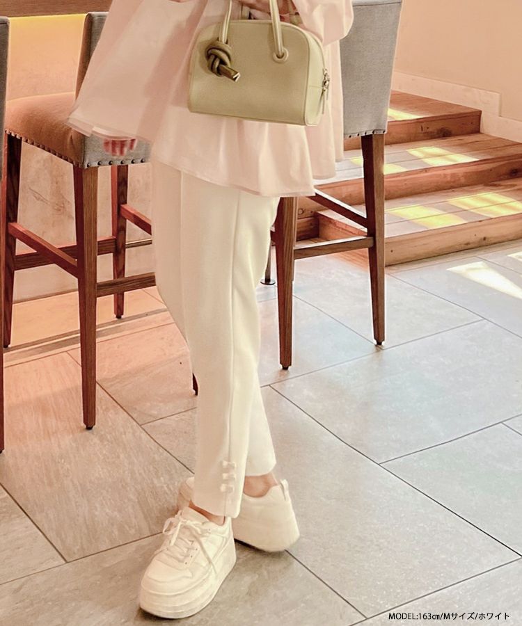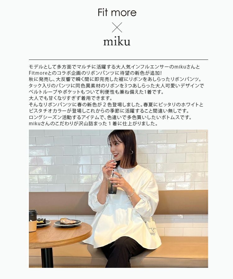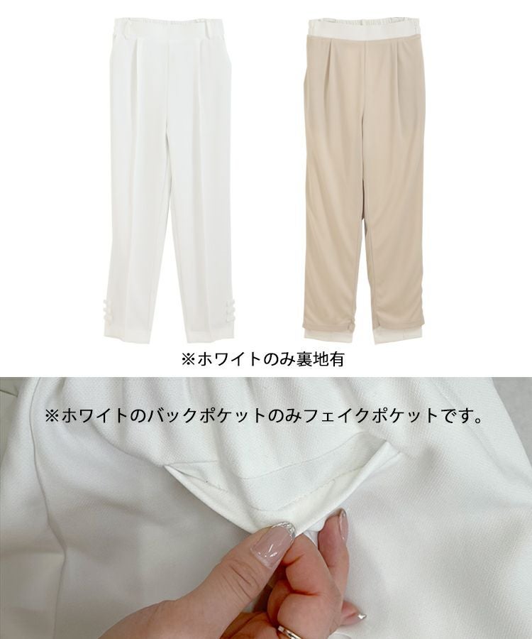 2023 2023ss 春新作 リボン ストレートパンツ スラックス フロントタック タック ストレートパンツ  テーパードパンツ インフルエンサーコラボ 低身長 大人気インスタグラマーmikuコラボ!裾リボンストレートパンツ【低身長サイズ有】【メール便】