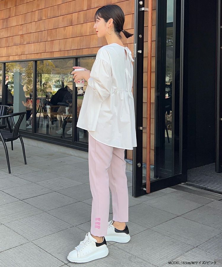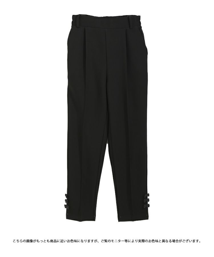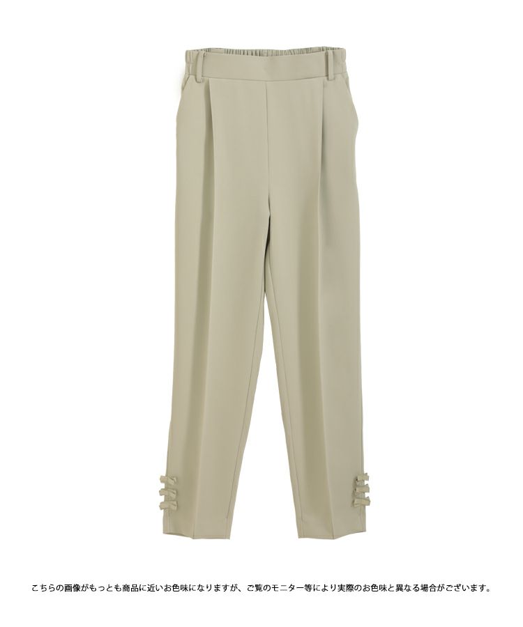 2023 2023ss 春新作 リボン ストレートパンツ スラックス フロントタック タック ストレートパンツ  テーパードパンツ インフルエンサーコラボ 低身長 大人気インスタグラマーmikuコラボ!裾リボンストレートパンツ【低身長サイズ有】【メール便】