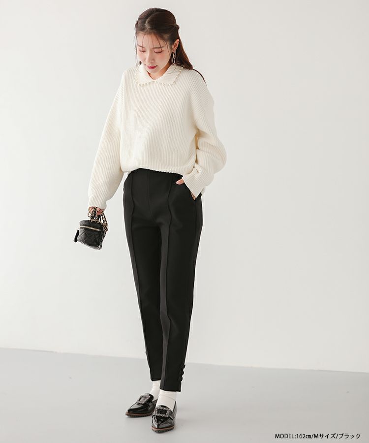冬にこのパンツを履いてしまうと他のパンツだと寒く、つい手にとってしまう程温かいです! 生地は良いのにウエストやヒップの作りがゆるいのかダボついてスタイルアップにならないのと、丈が短いので自転車送迎時は靴下やくるぶし上まで丸出しになるのが残念すぎる。