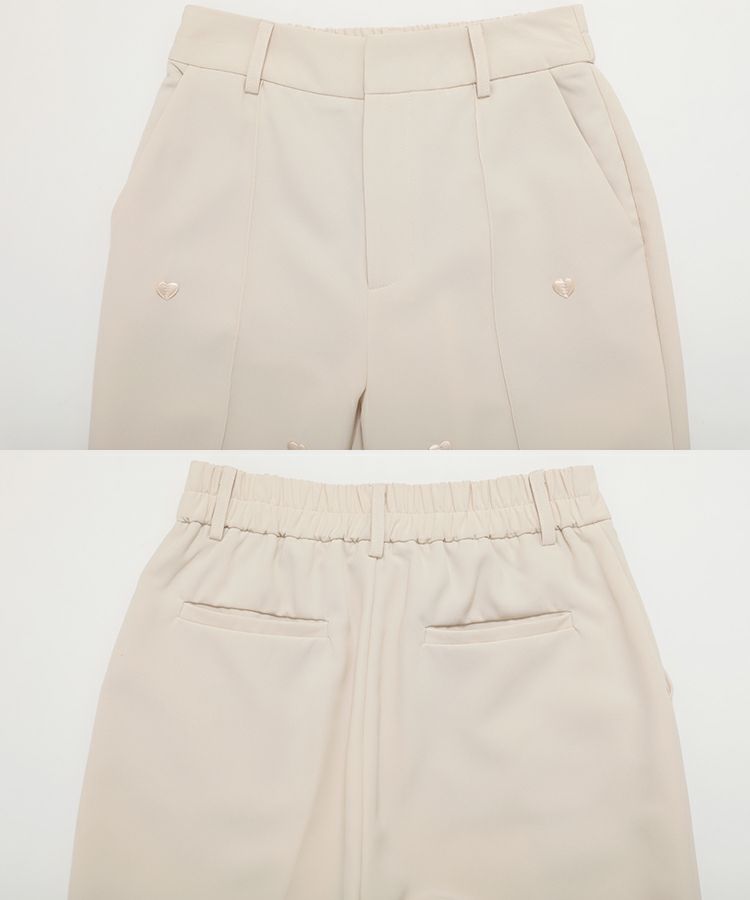 2023 2023ss 春新作  ストレートパンツ スラックス フロントタック タック ストレートパンツ  テーパードパンツ ハート 低身長 ハートモチーフテーパードパンツ【メール便】