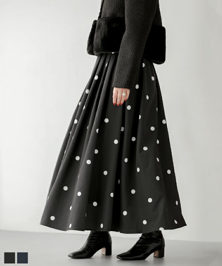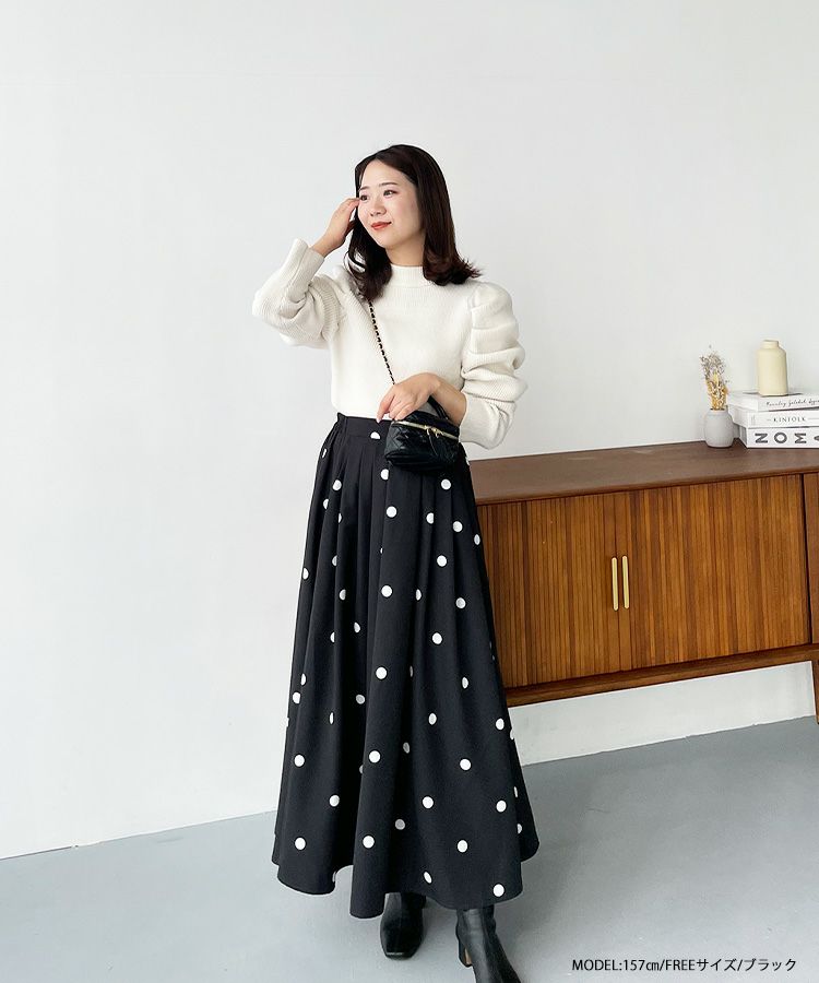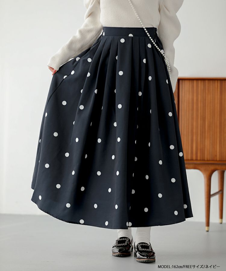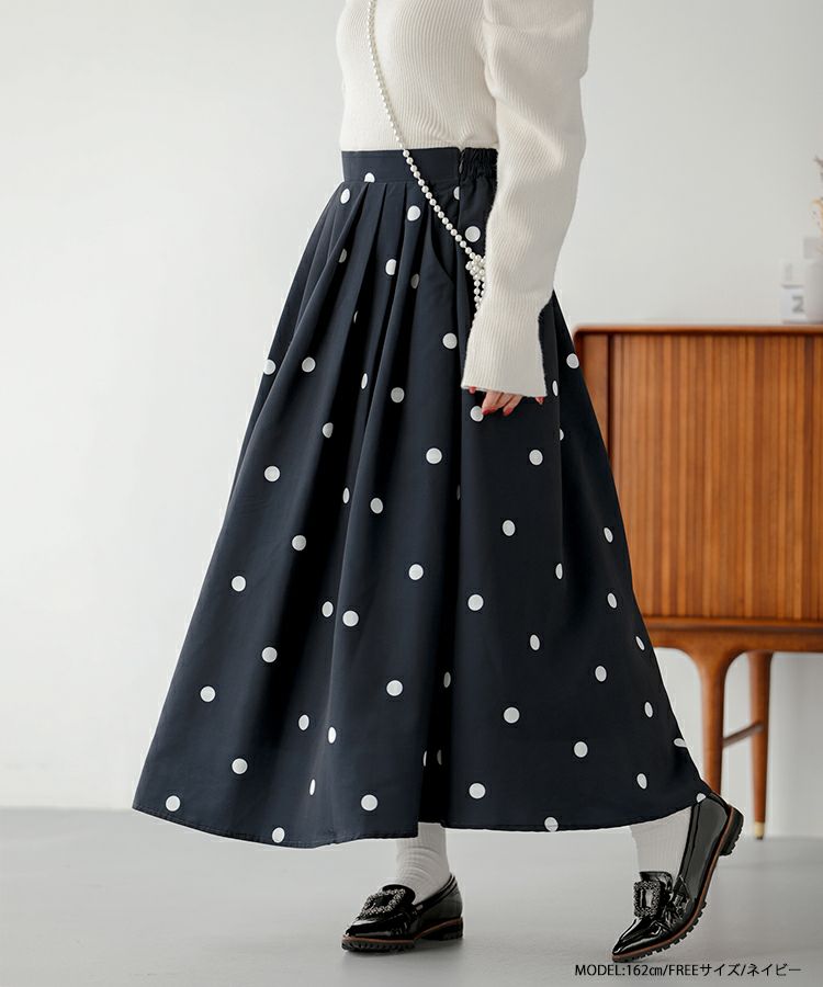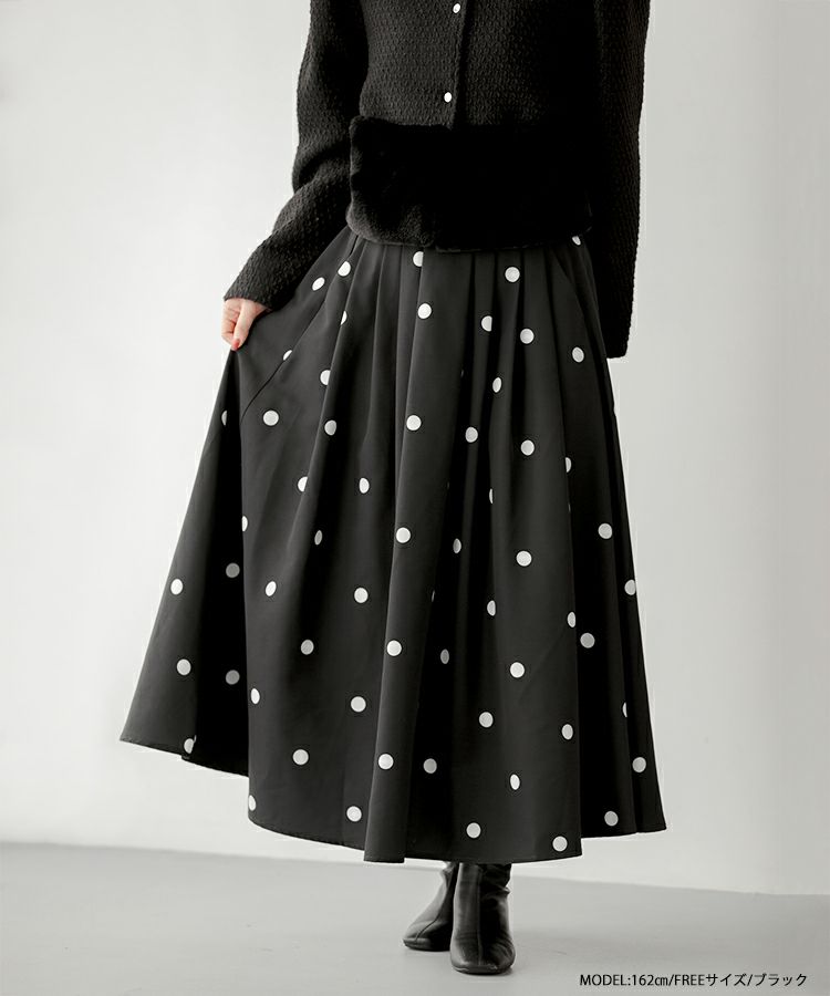 2023aw ドット フレア スカート ロング ランダムドット柄フレアスカート【宅配便】