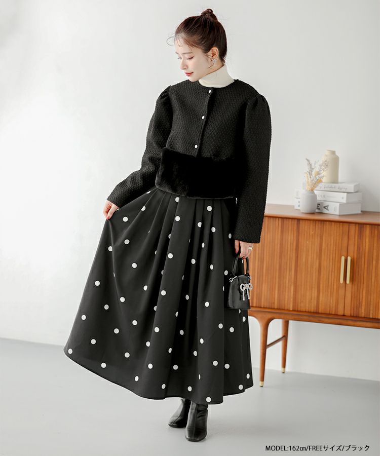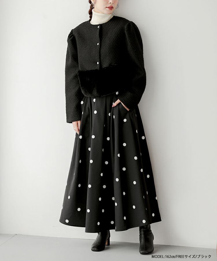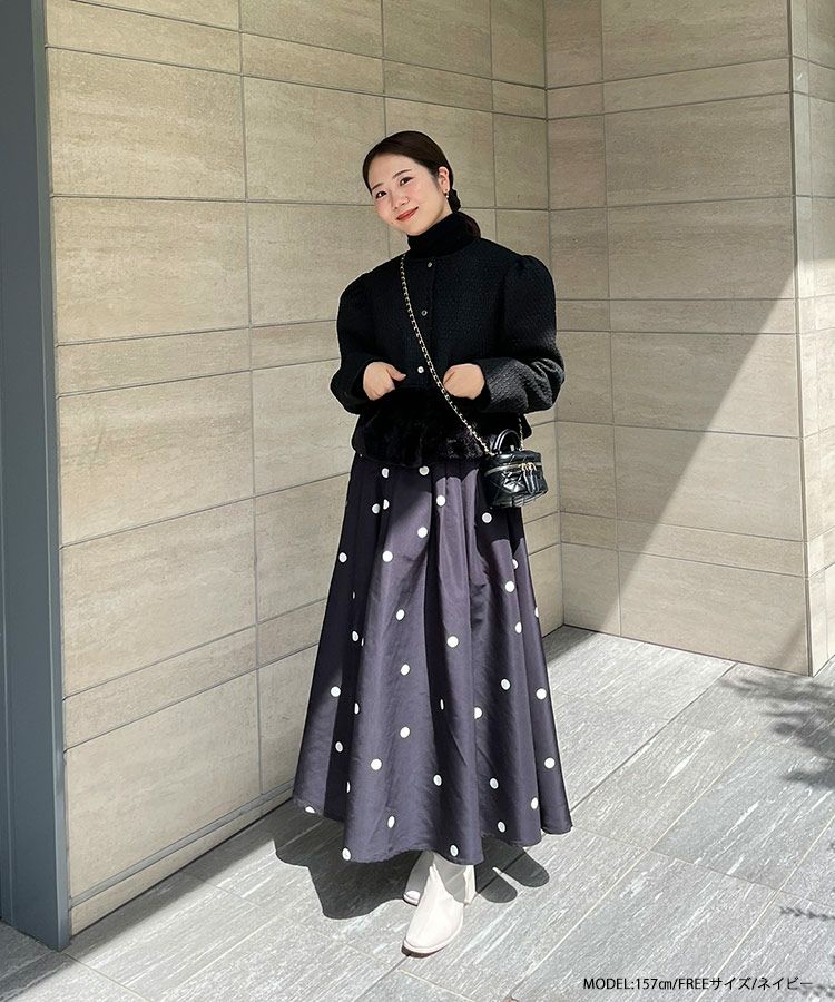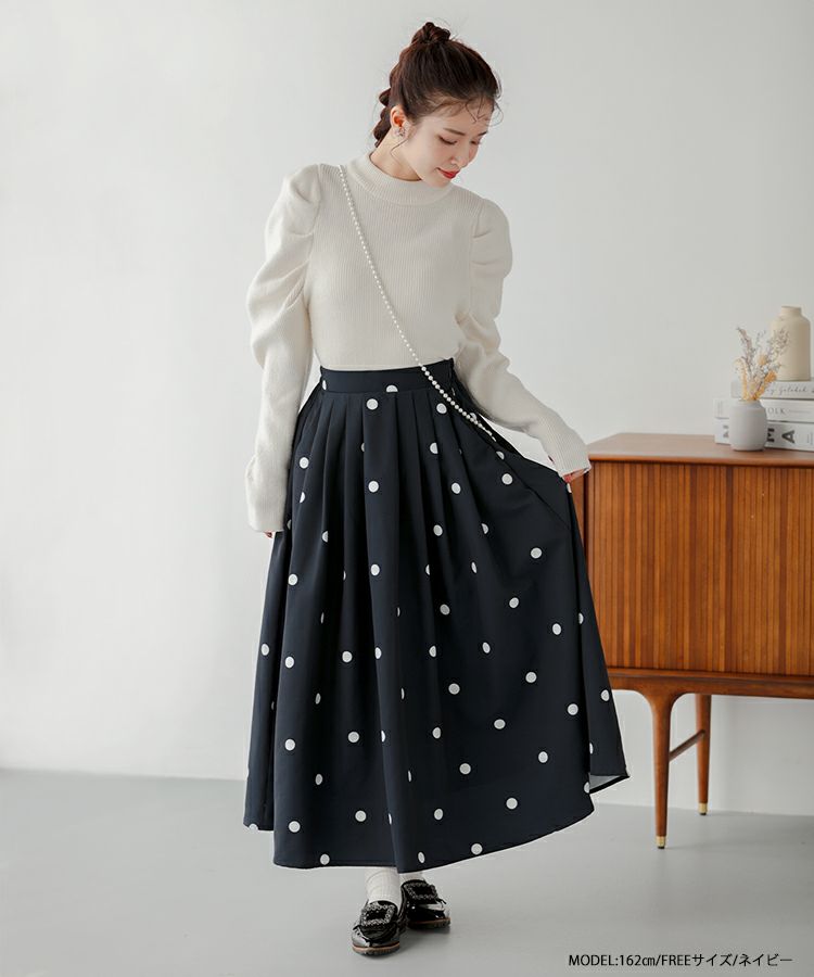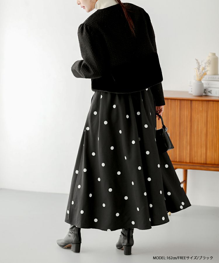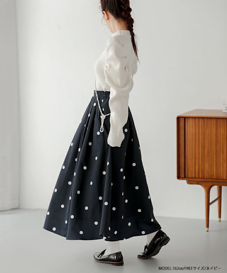 2023aw ドット フレア スカート ロング ランダムドット柄フレアスカート【宅配便】