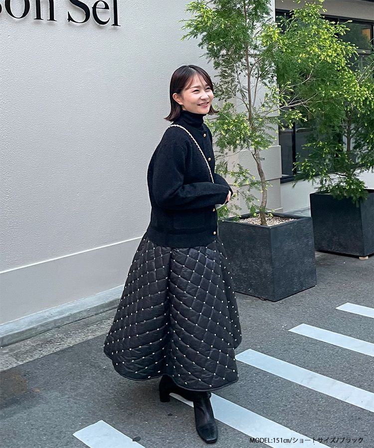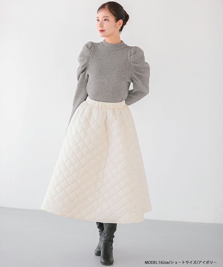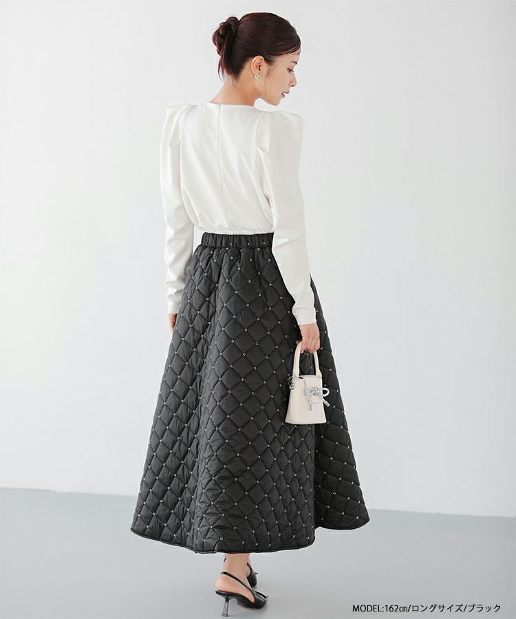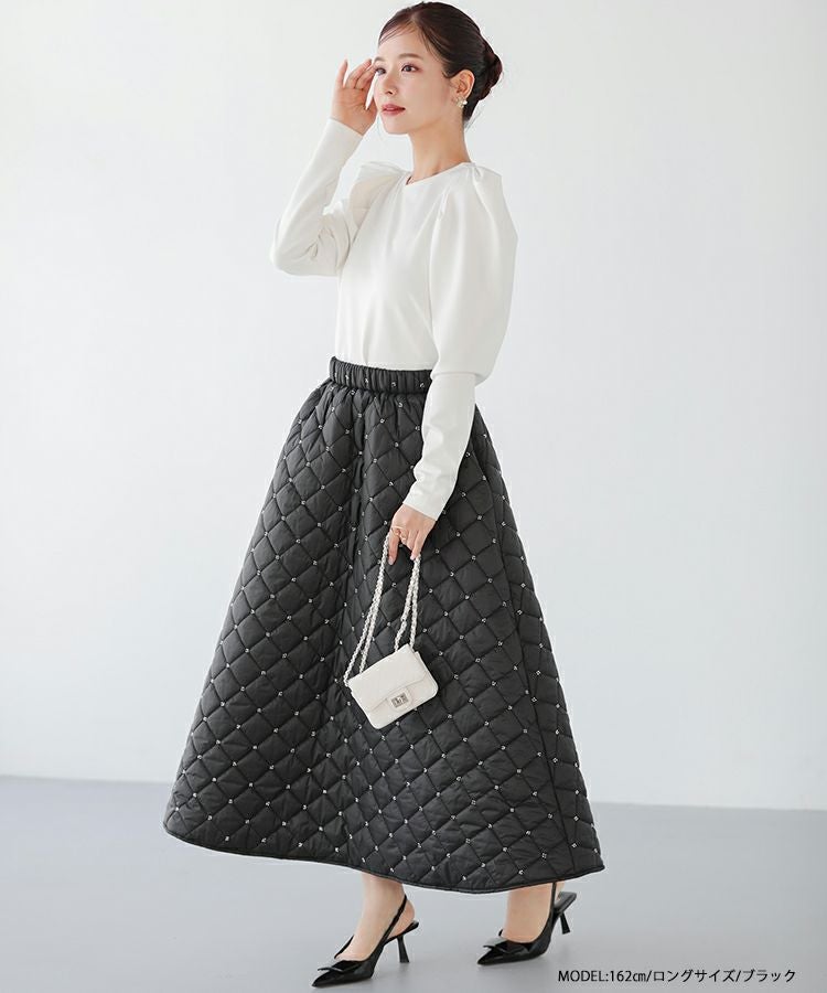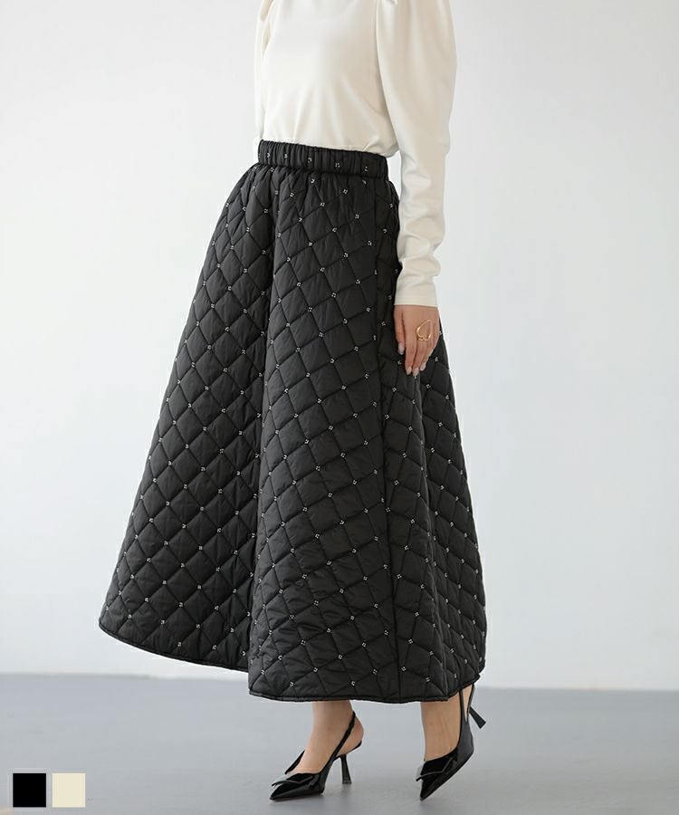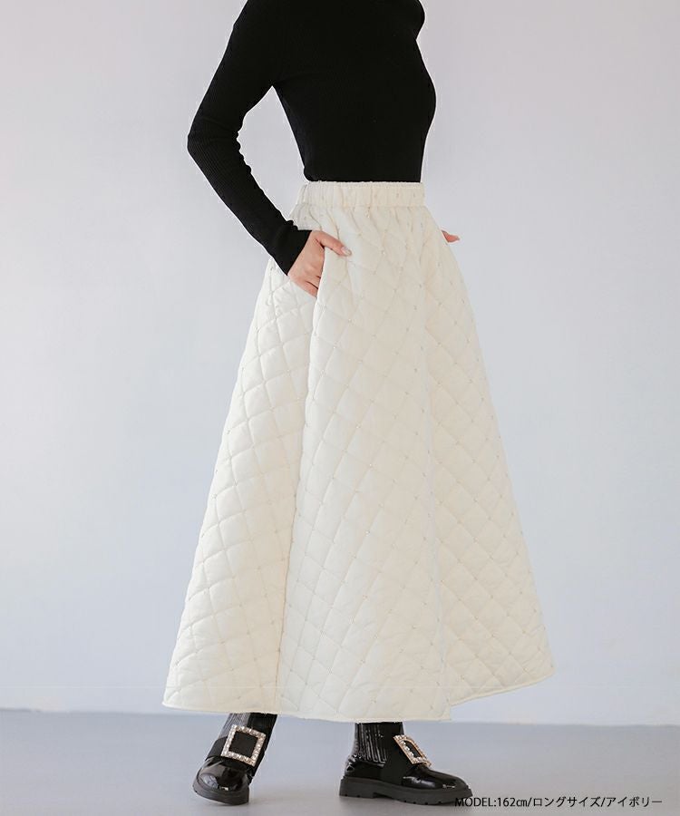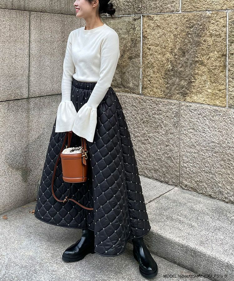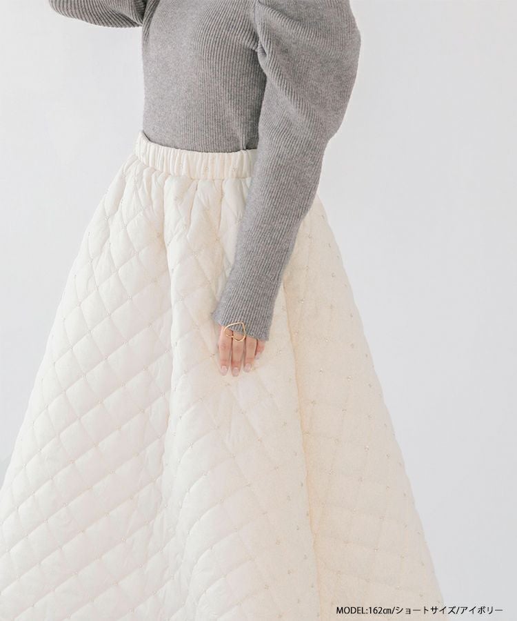 2023aw aw 冬 キルティング ビーズ スカート ビーズキルティングフレアスカート【宅配便】