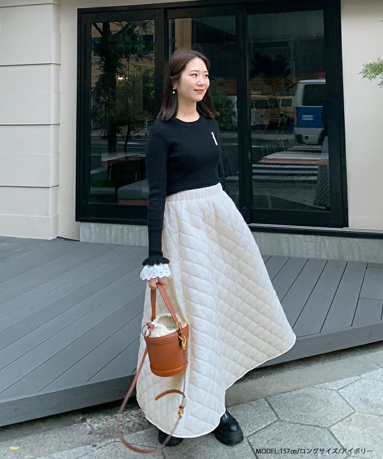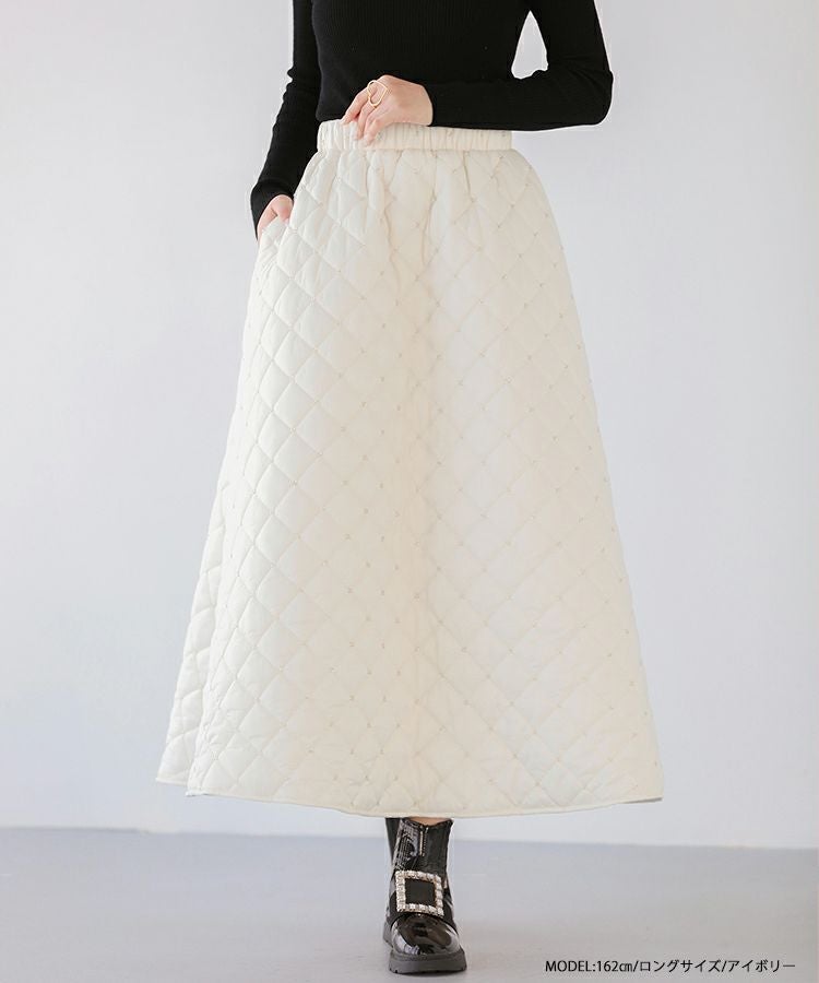 ビーズ刺繡が可愛い秋冬にピッタリのキルティングスカートが登場。