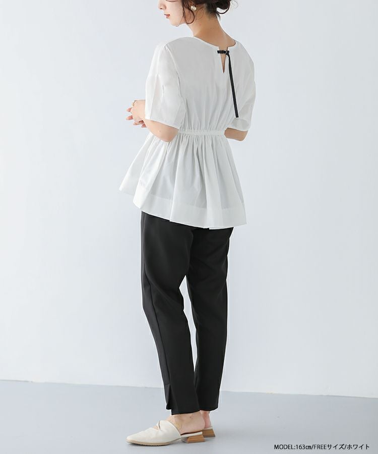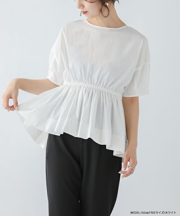 夏新作  2022春 2022ss 秋新作  トップス ブラウス シャツ ブラウス 春ブラウス ペプラム フレア ウエストギャザーペプラムブラウス【メール便】