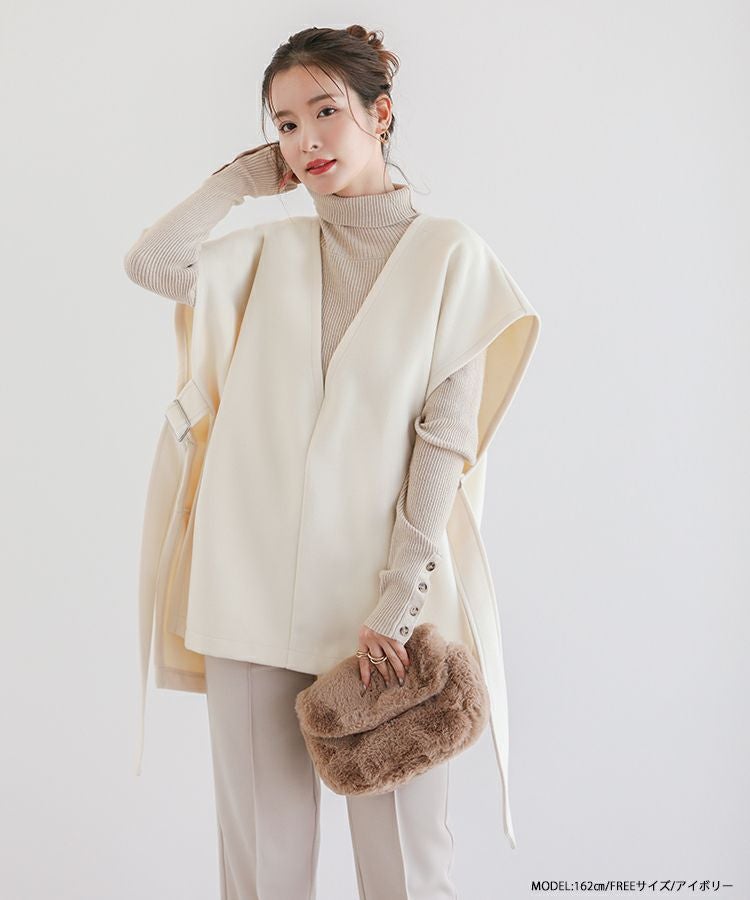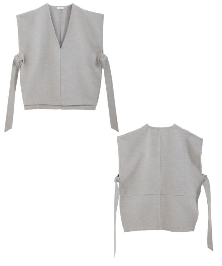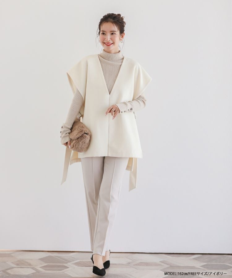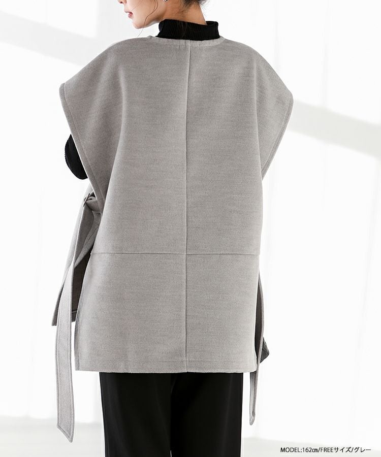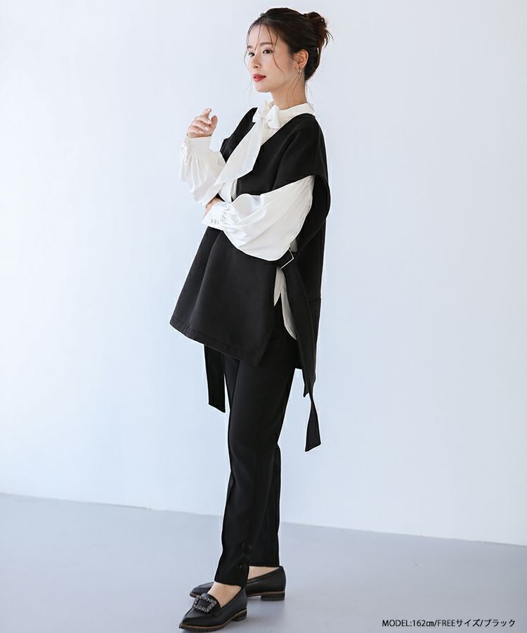 2022秋 2022aw  秋新作 ベスト レイヤード ジレ ノーカラー サイドアジャスター サイドリボン サイドベルトウールライクベスト【宅配便】