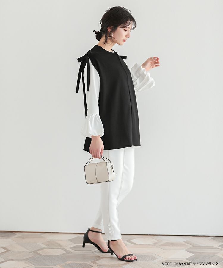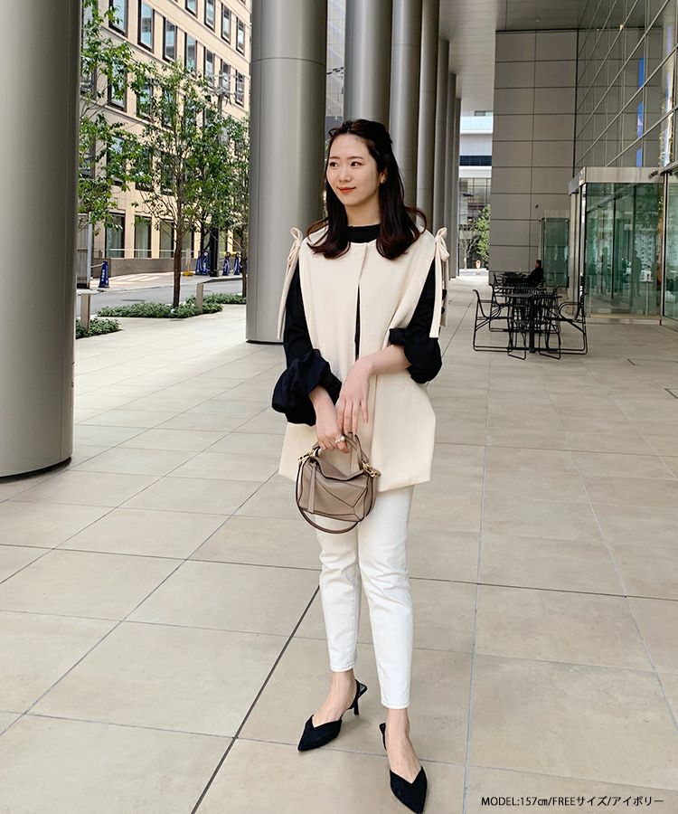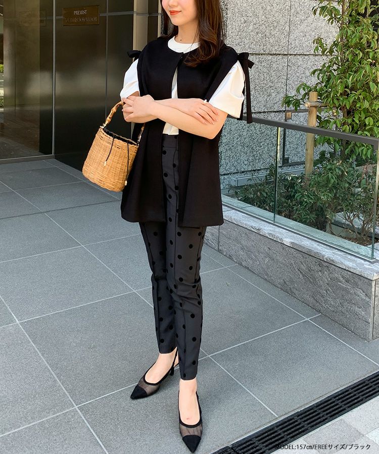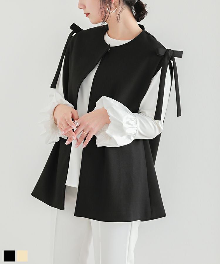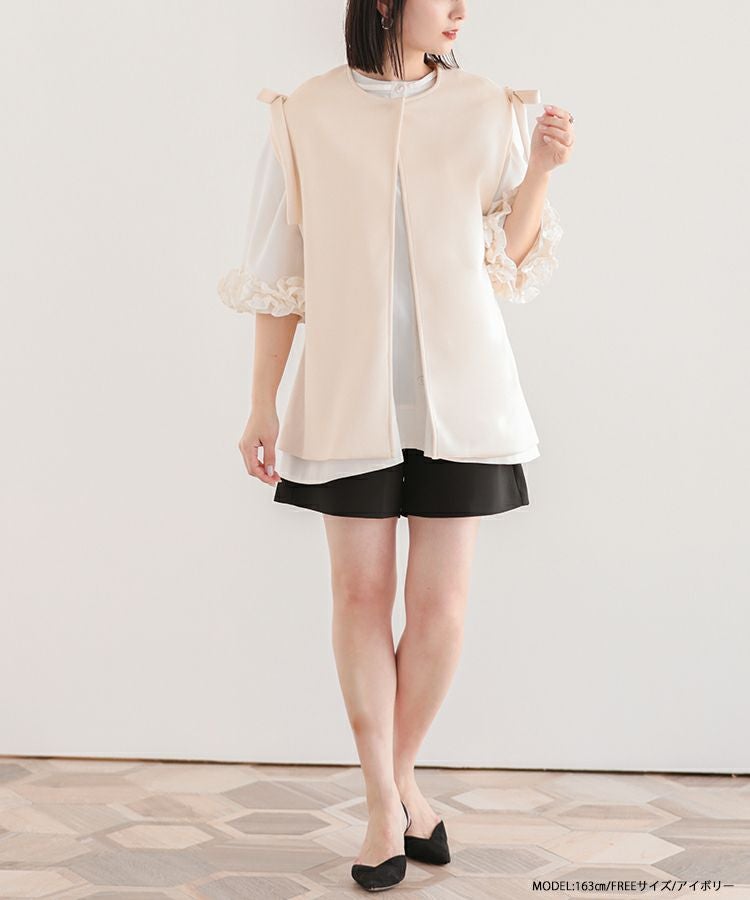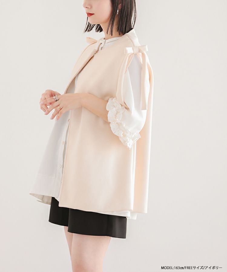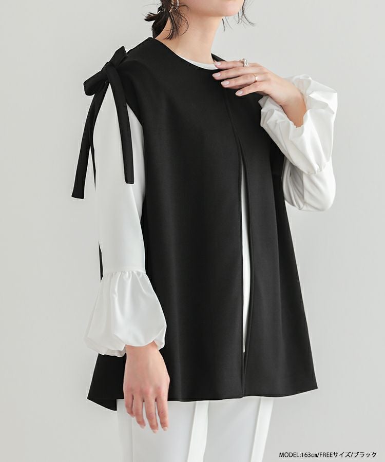 2023ss ベスト レイヤード ジレ リボン ショルダーリボンジレ【宅配便】