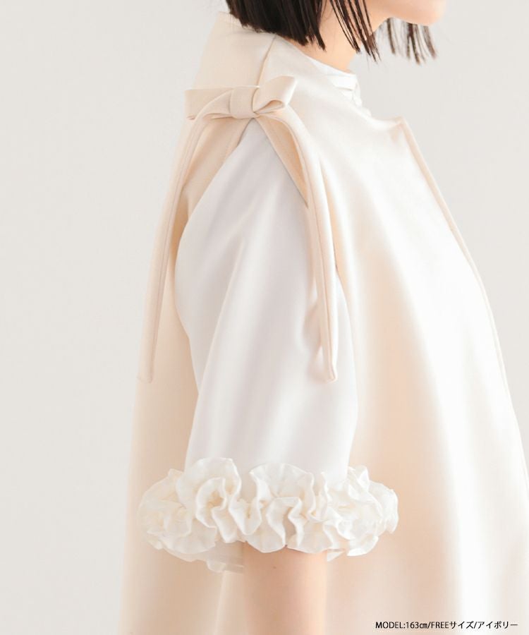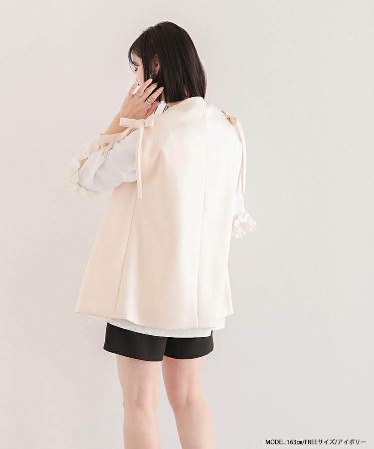 これを羽織るだけでおしゃれに見えます 肩のリボンは甘すぎずかわいいです。