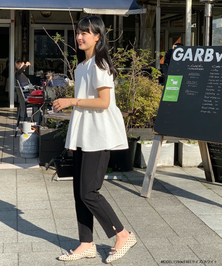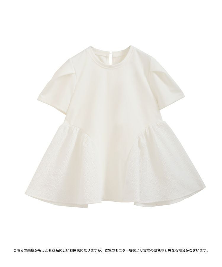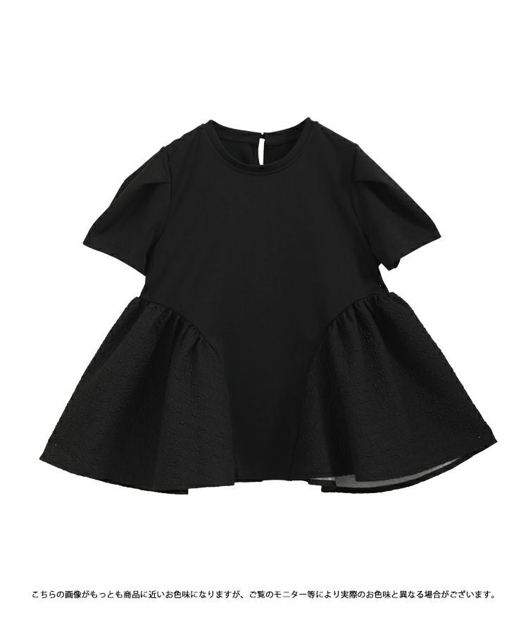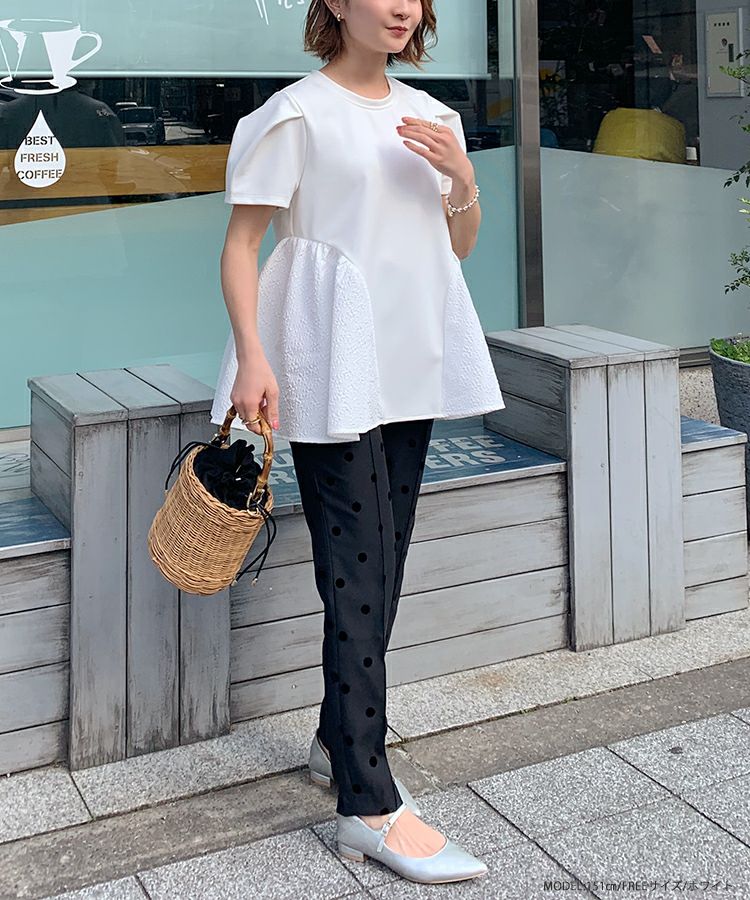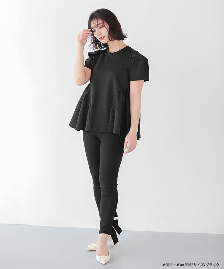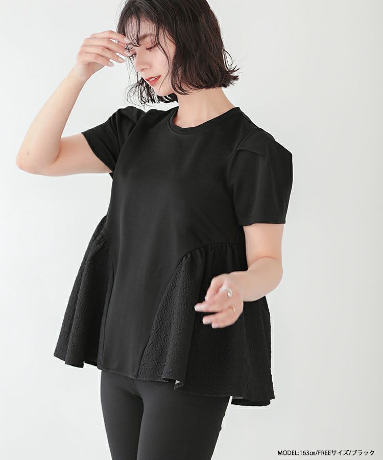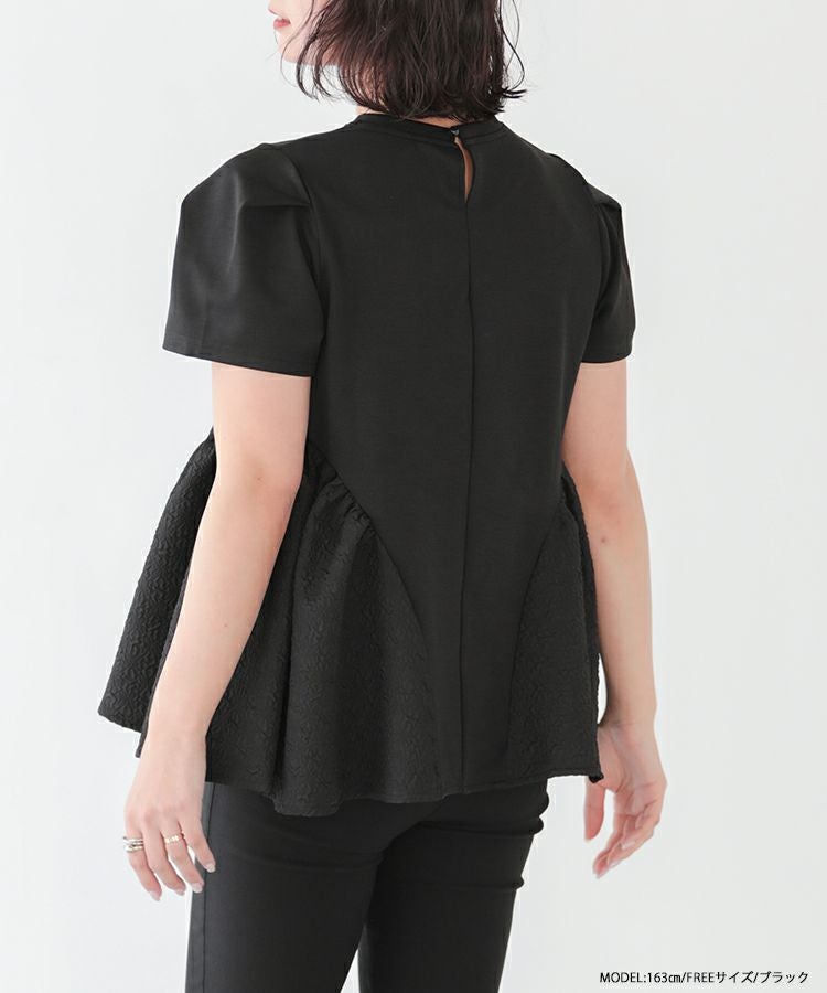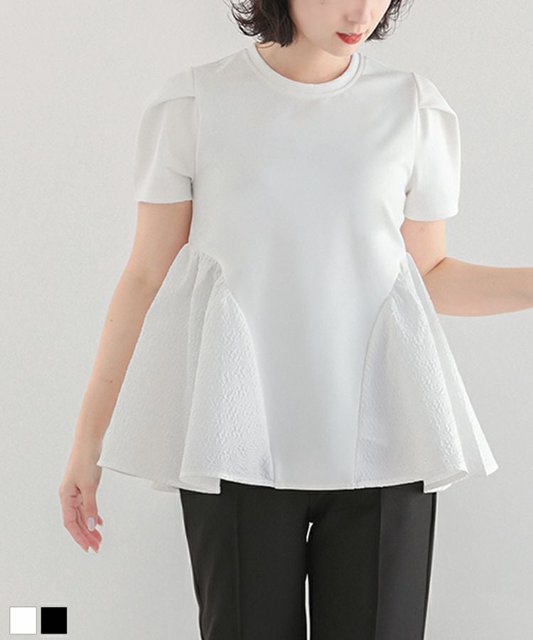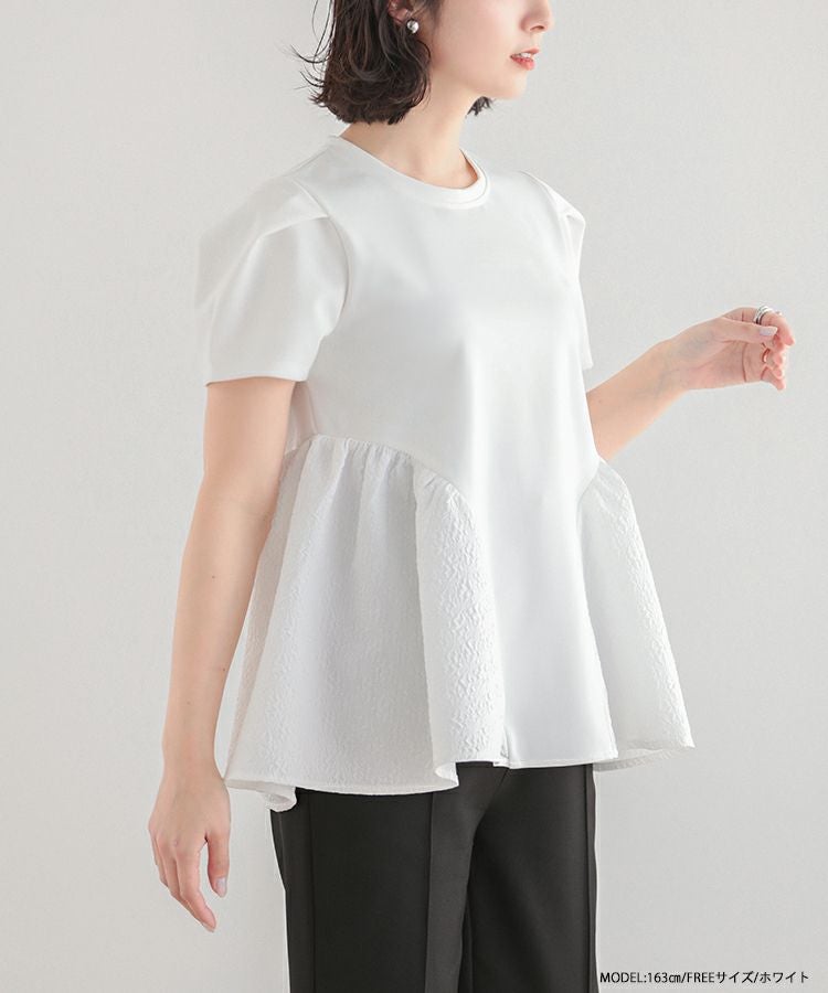 裾の異素材切り替えが可愛いペプラムトップス。