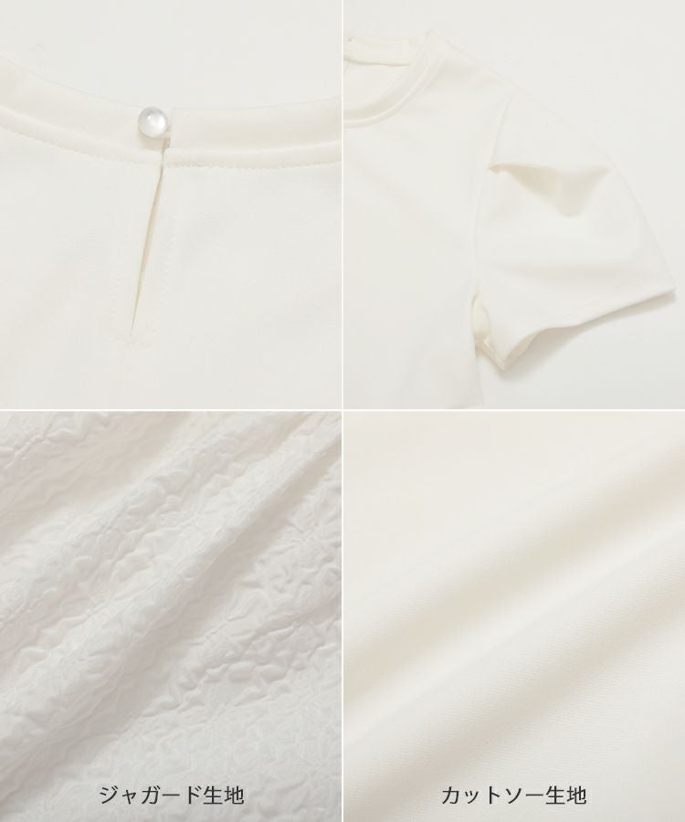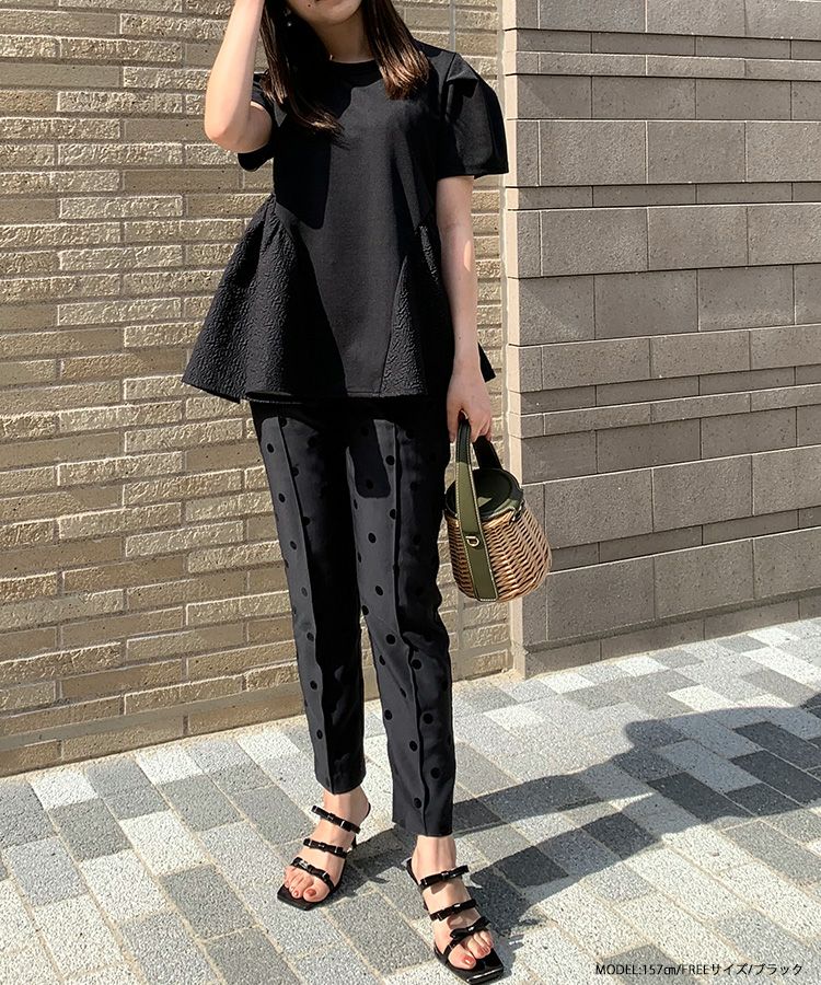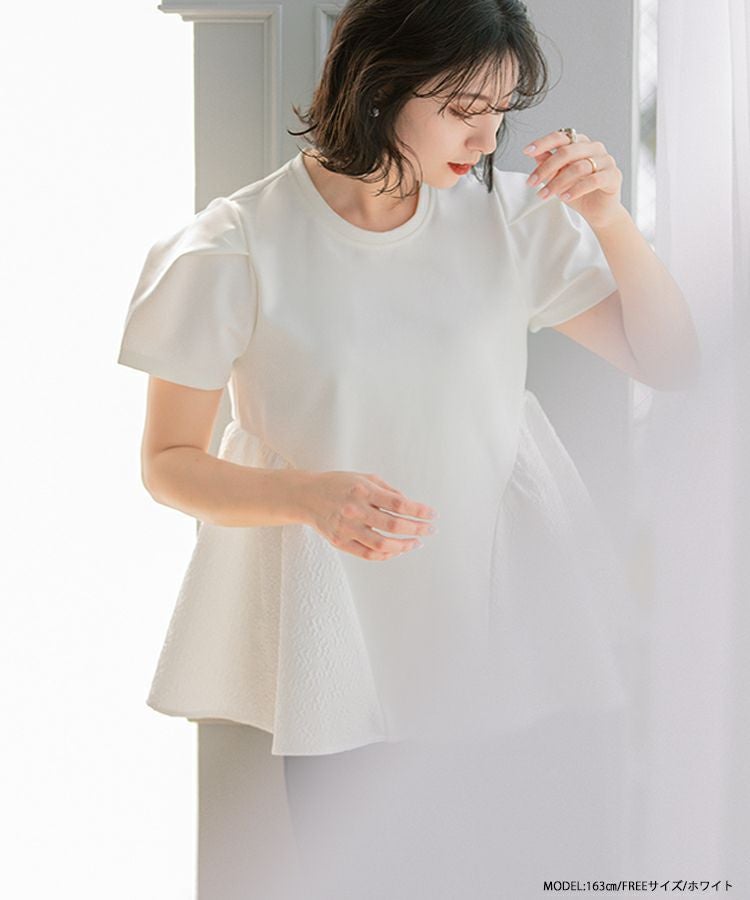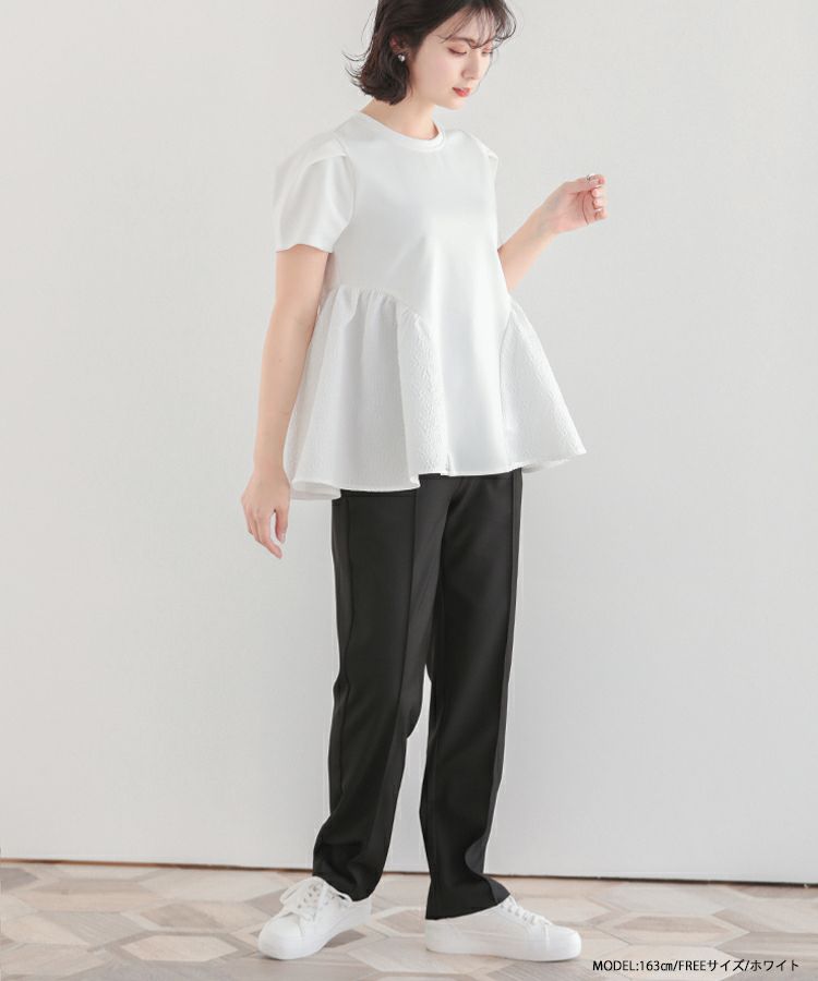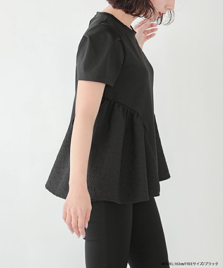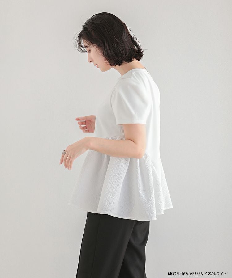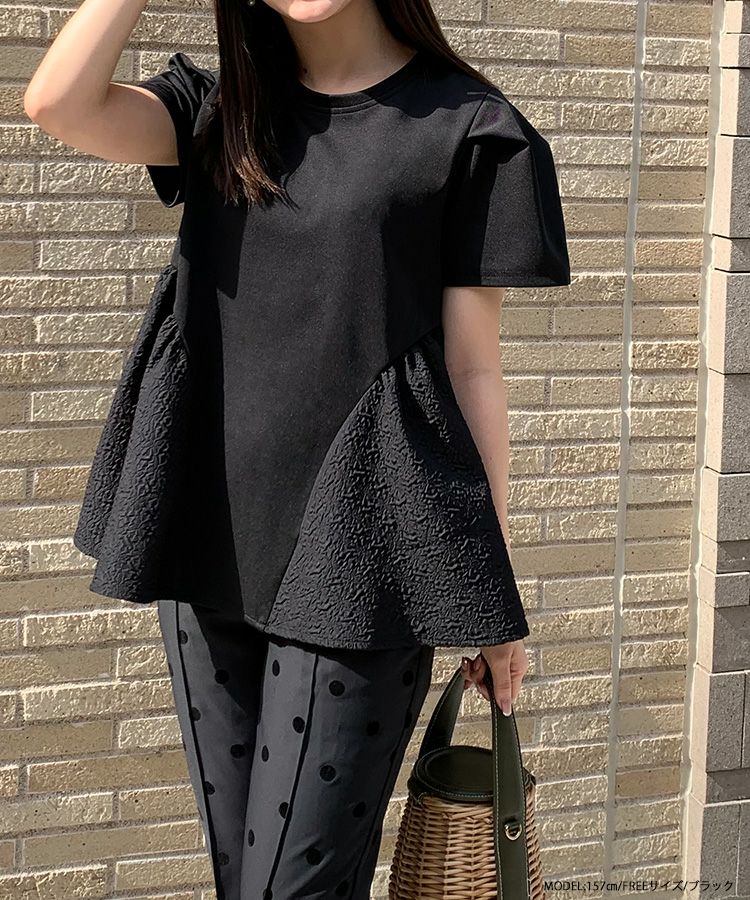 2023ss トップス ブラウス ペプラム カットソー Tシャツ 【ZOZO限定商品】ジャガード切り替えペプラムカットソーハーフスリーブ【メール便】