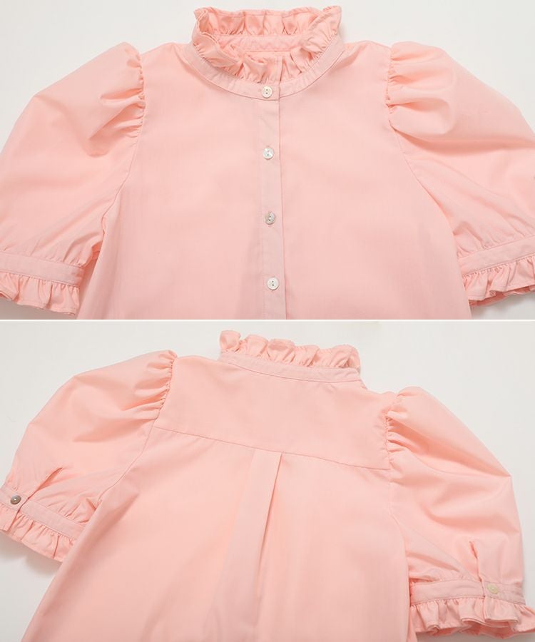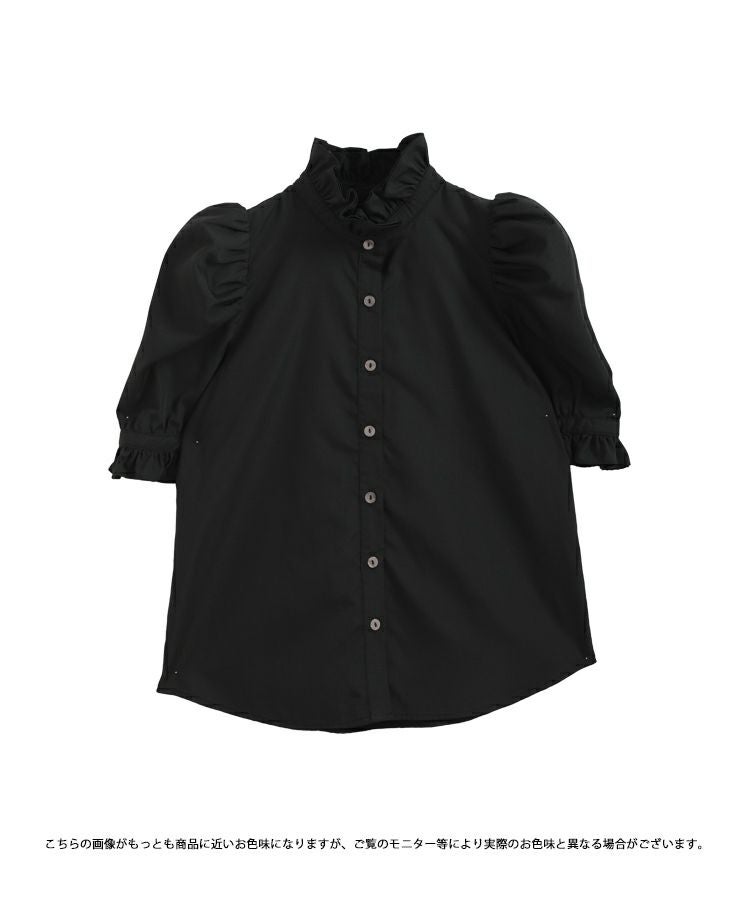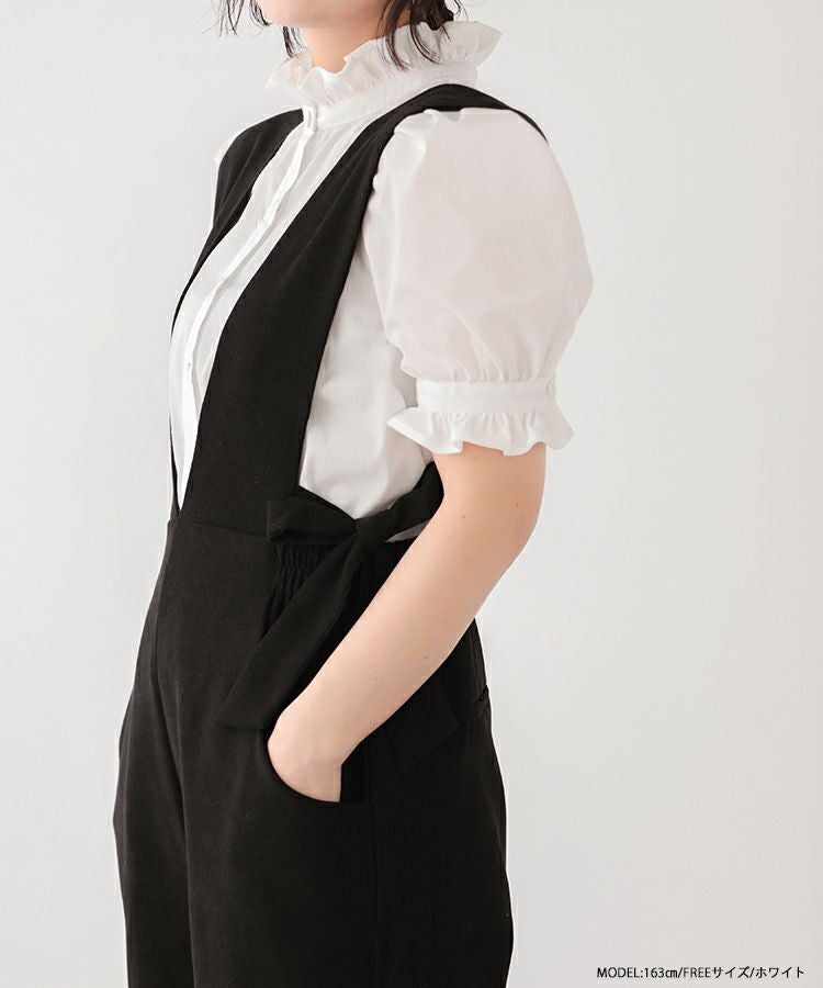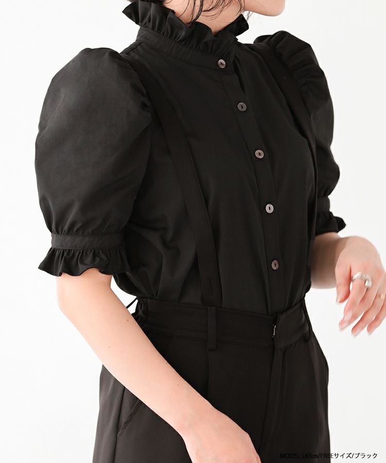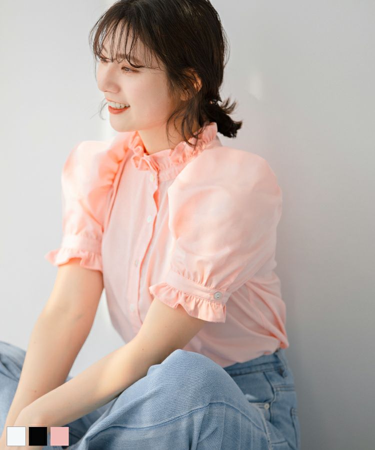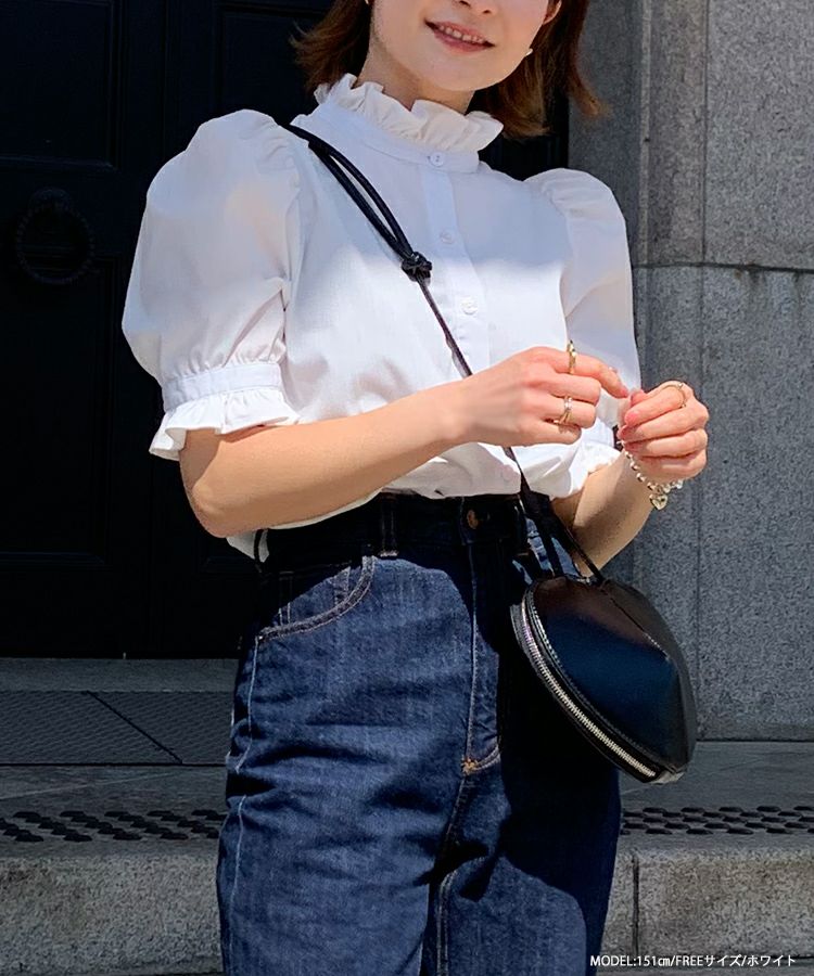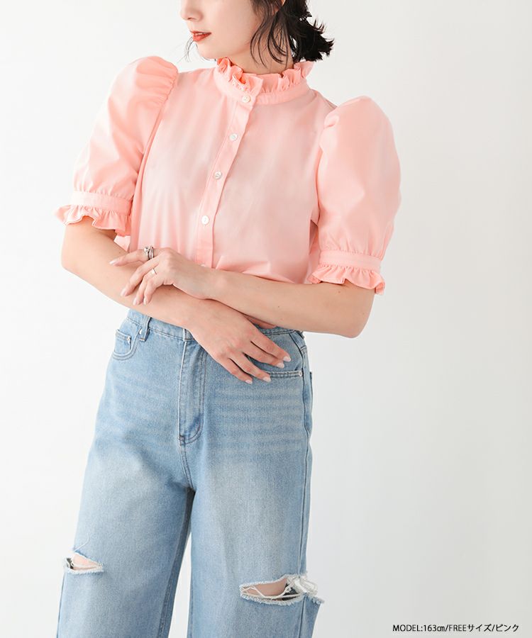 2023ss ブラウス パワショル パフスリーブ フリルブラウス シャツ スタンドフリルカラーブラウス【メール便】