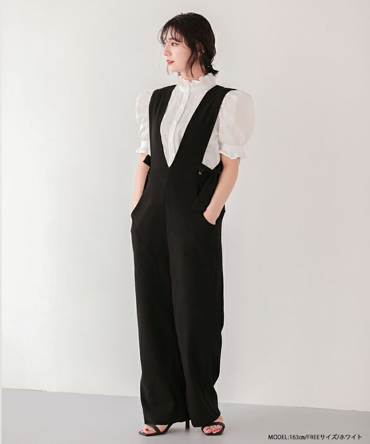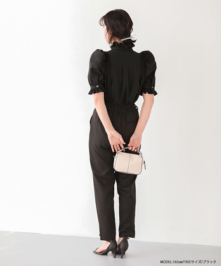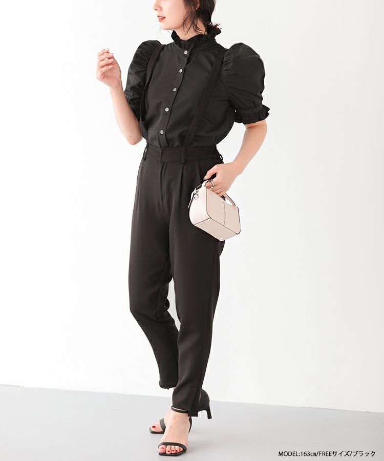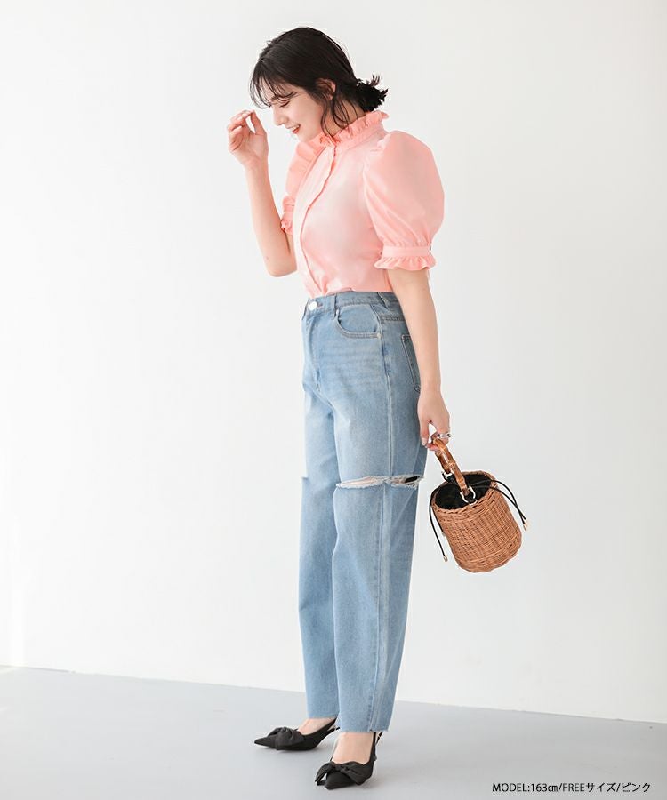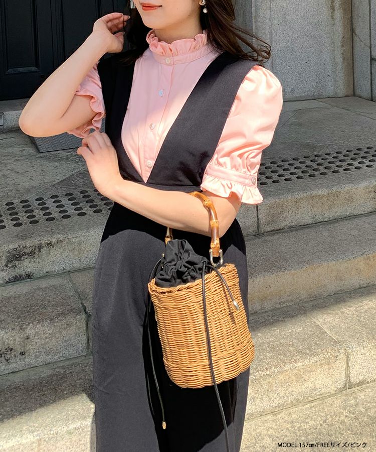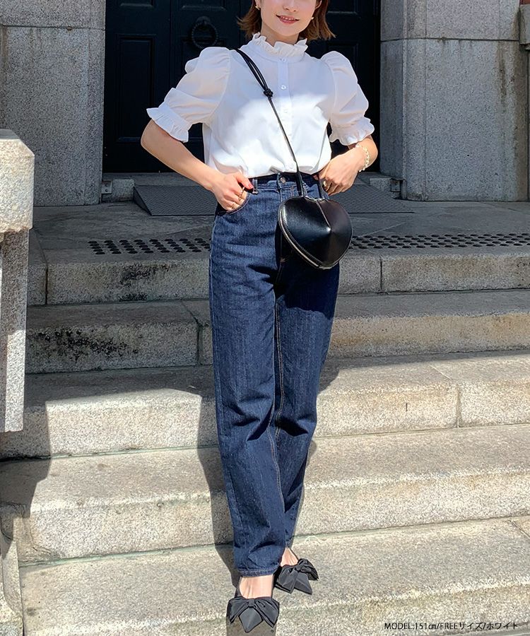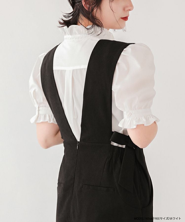 2023ss ブラウス パワショル パフスリーブ フリルブラウス シャツ スタンドフリルカラーブラウス【メール便】