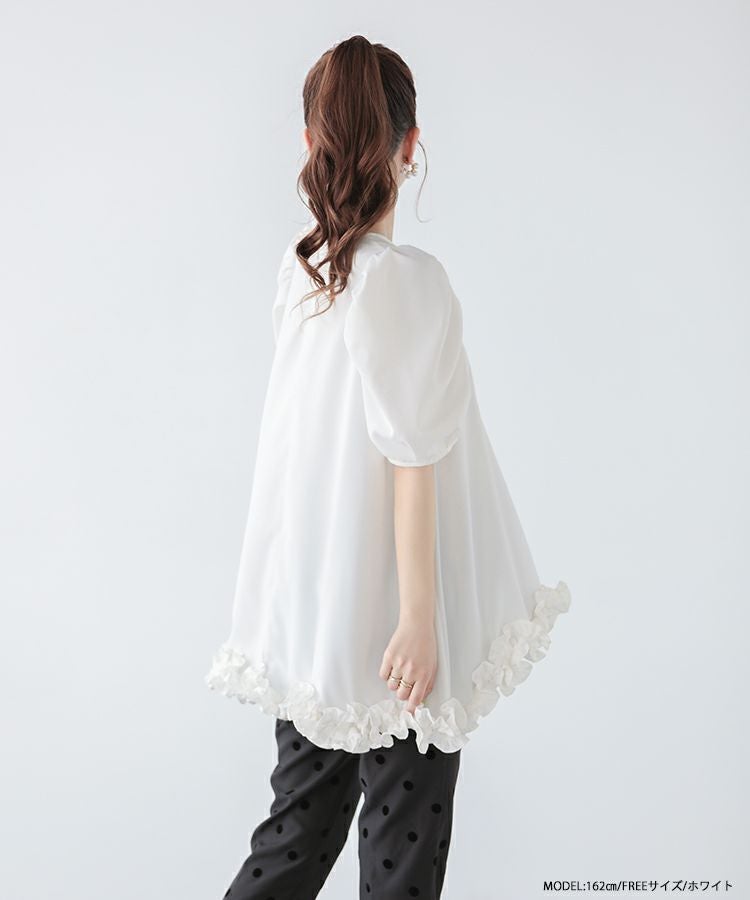 2023ss トップス ブラウス 裾フリル フレア シャツ ロング ロング丈裾フリルフレアトップス【宅配便】