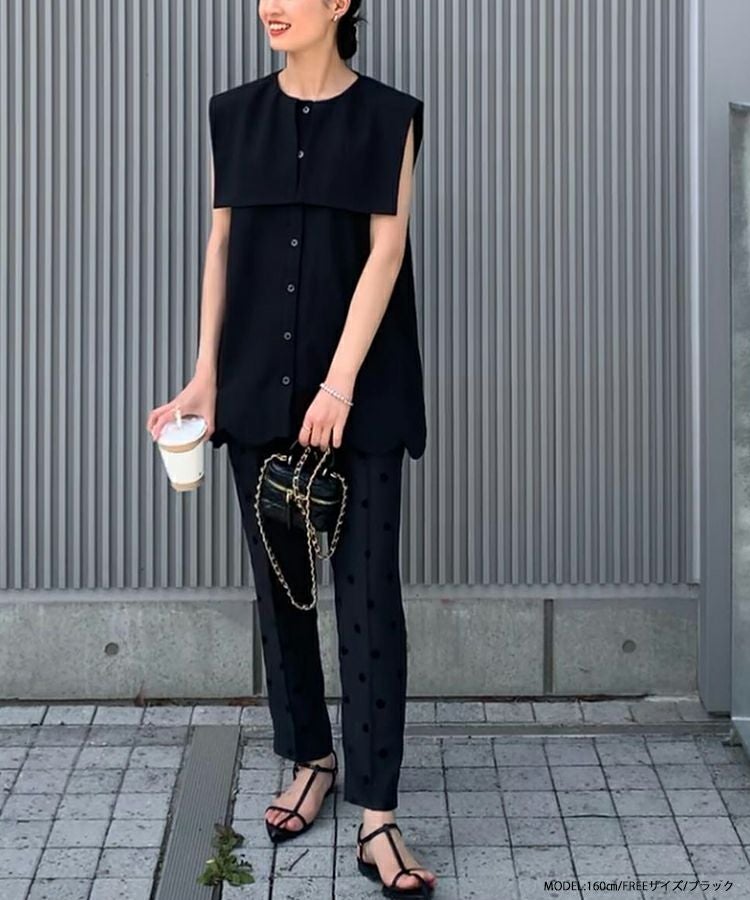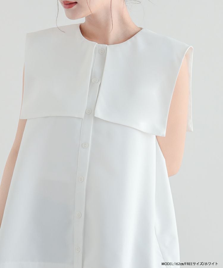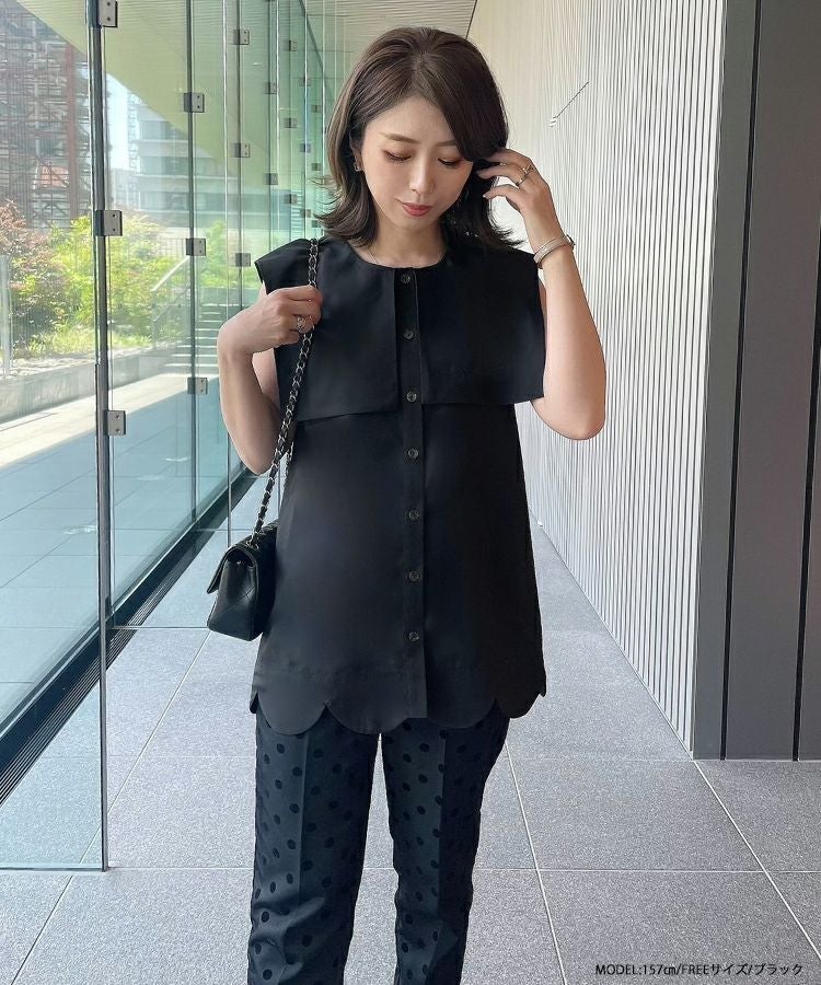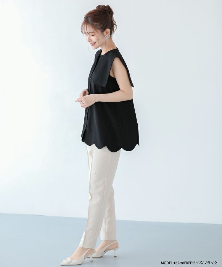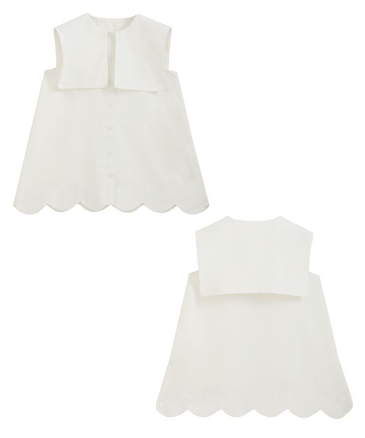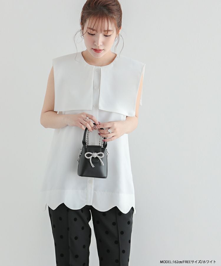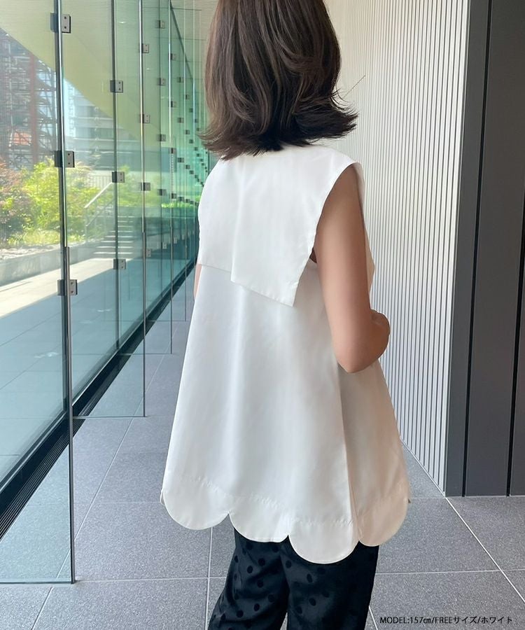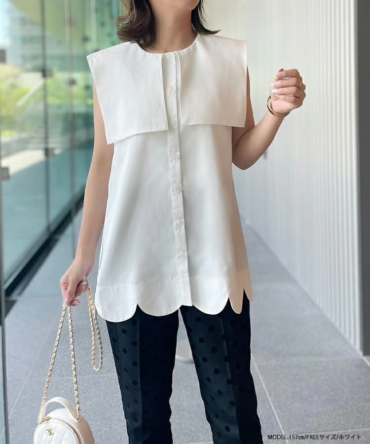 2023ss 春新作 シャツ ブラウス ビックカラー セーラーカラー スカラップ 大人気インフルエンサーRIEコラボ!セーラーカラースカラップブラウス【メール便】