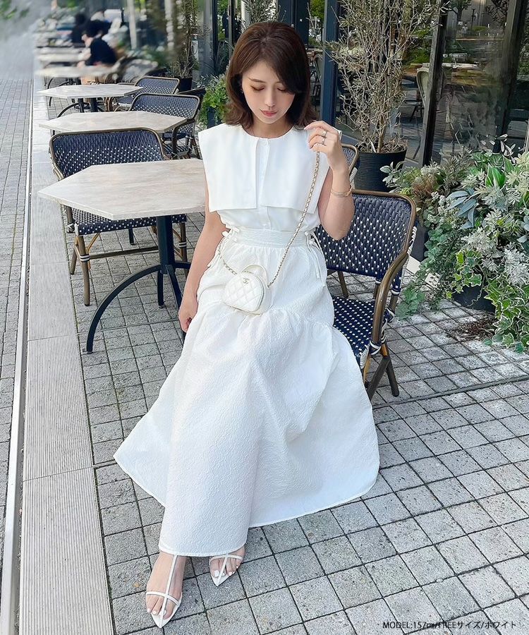 大きめのスクエアカラーは二の腕をカバーしてくれ