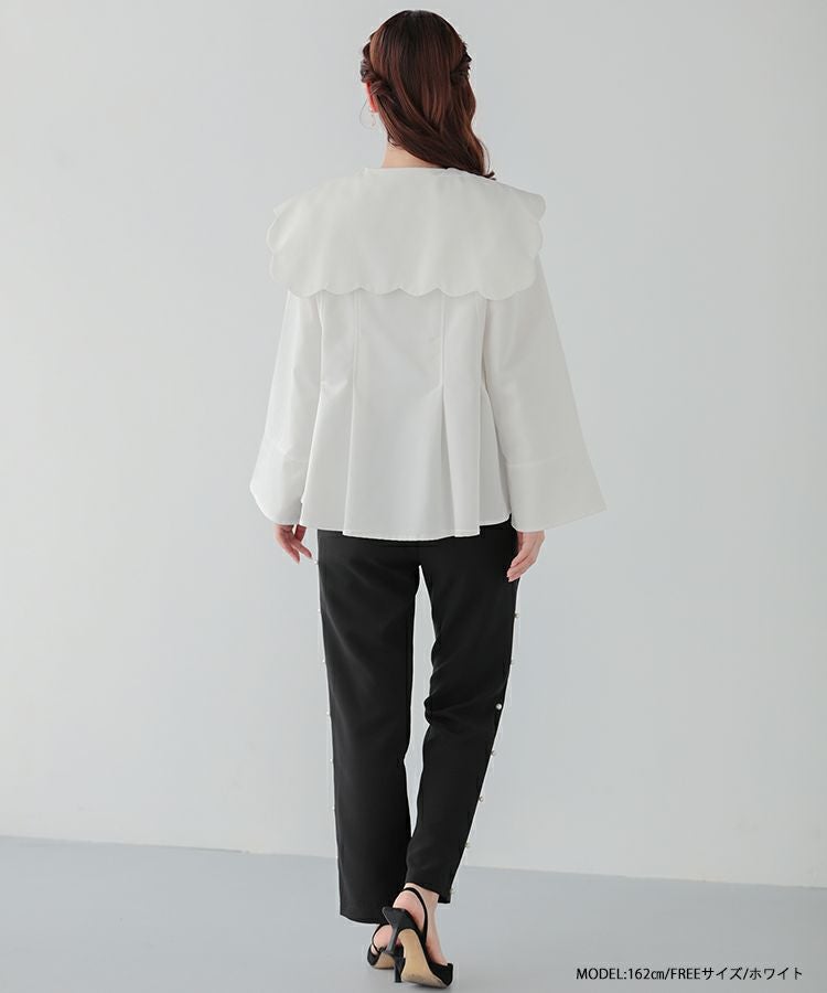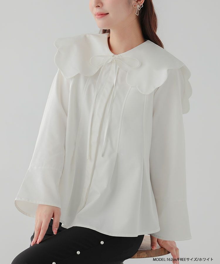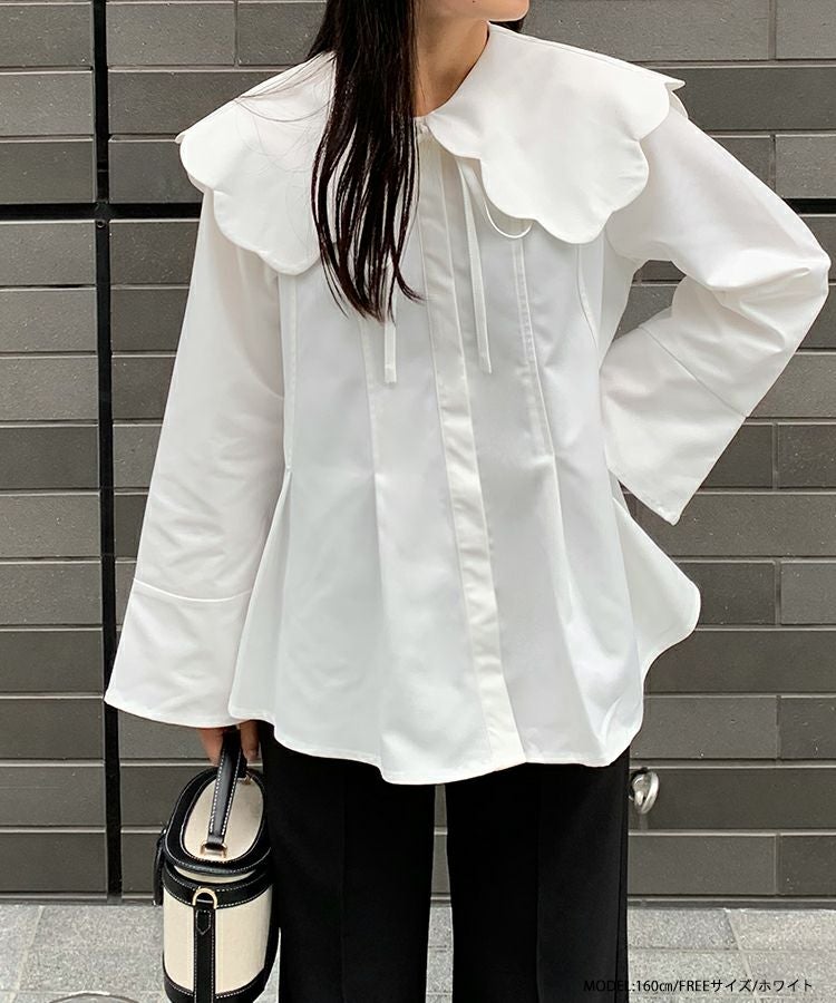 スカラップのビッグカラーが目を引くブラウスが登場。