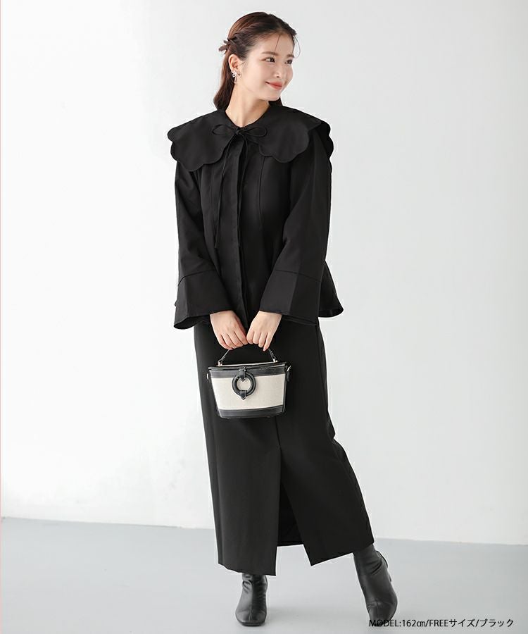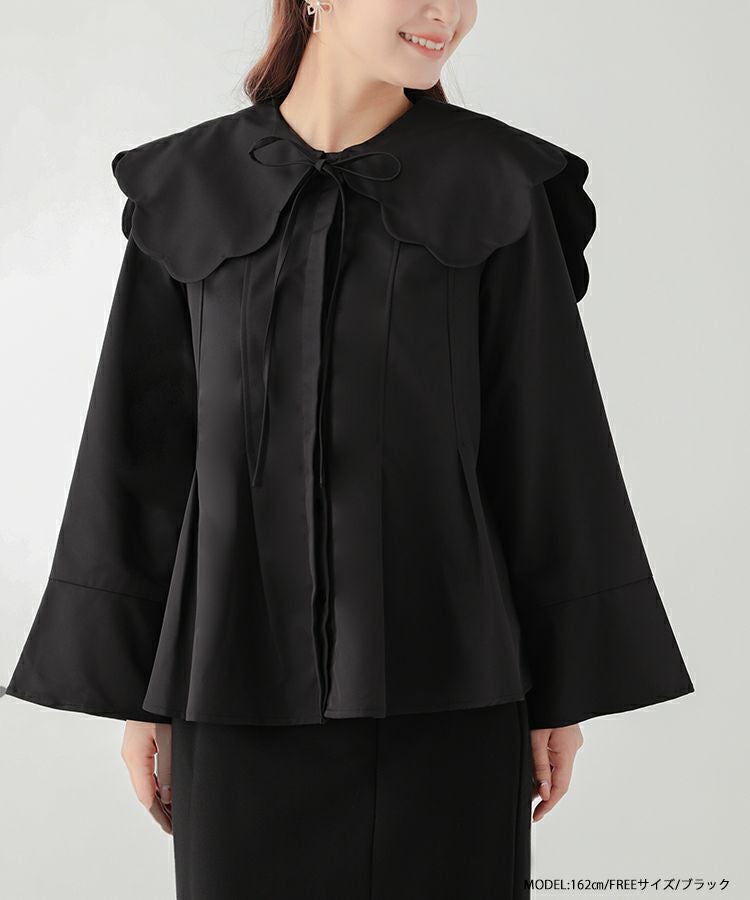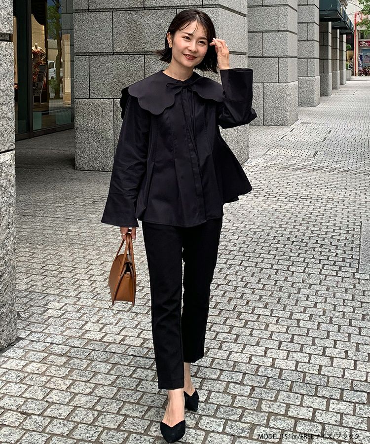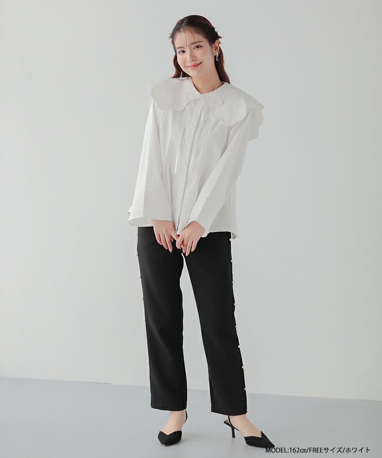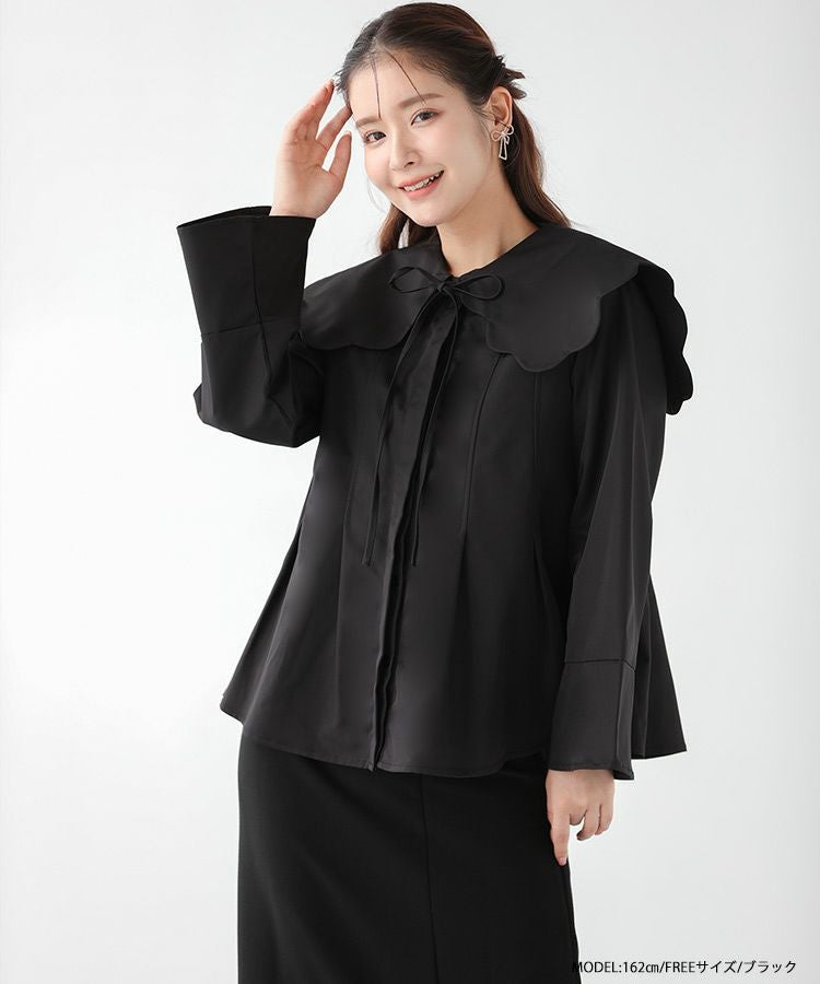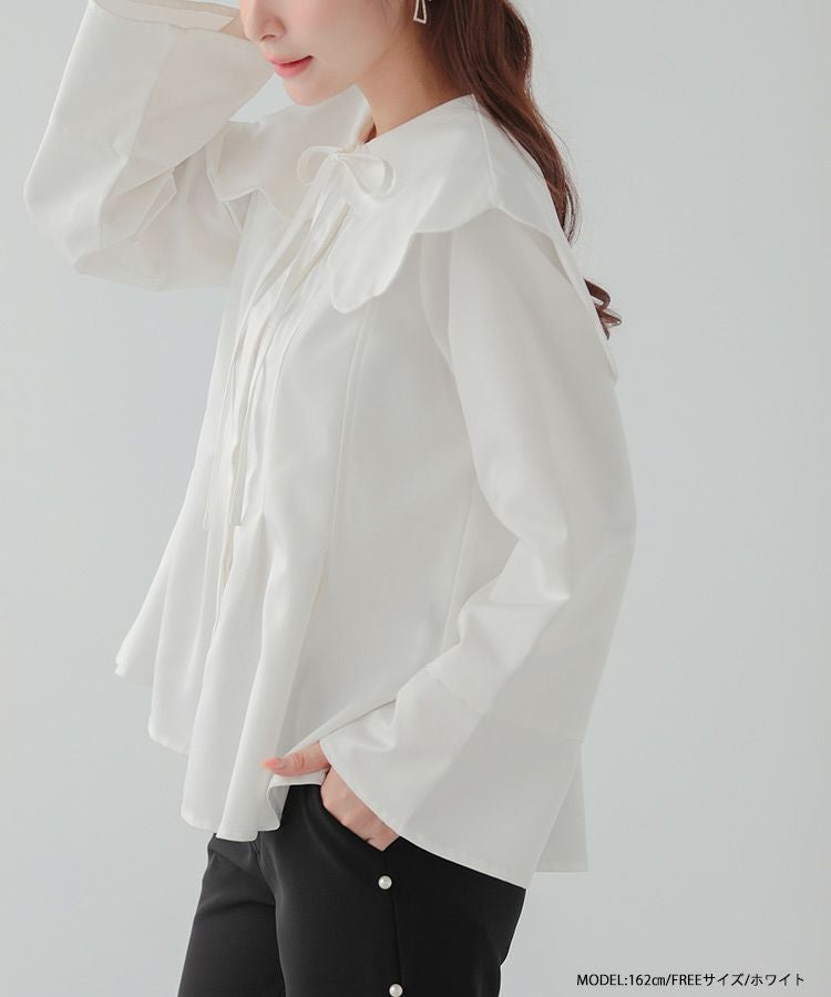 2023aw aw 秋新作 ウエストタック ペプラム ビッグカラー スカラップ リボン スカラップビッグカラーウエストタックブラウス【宅配便】
