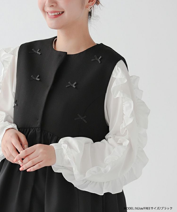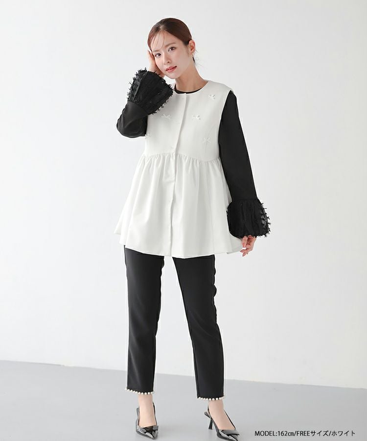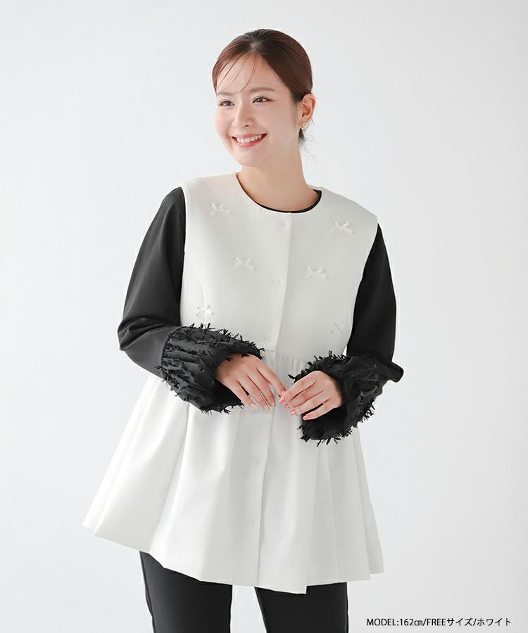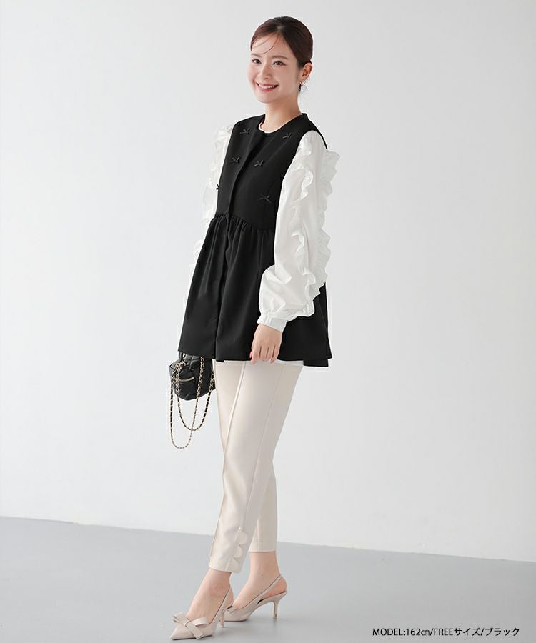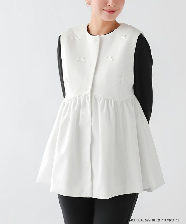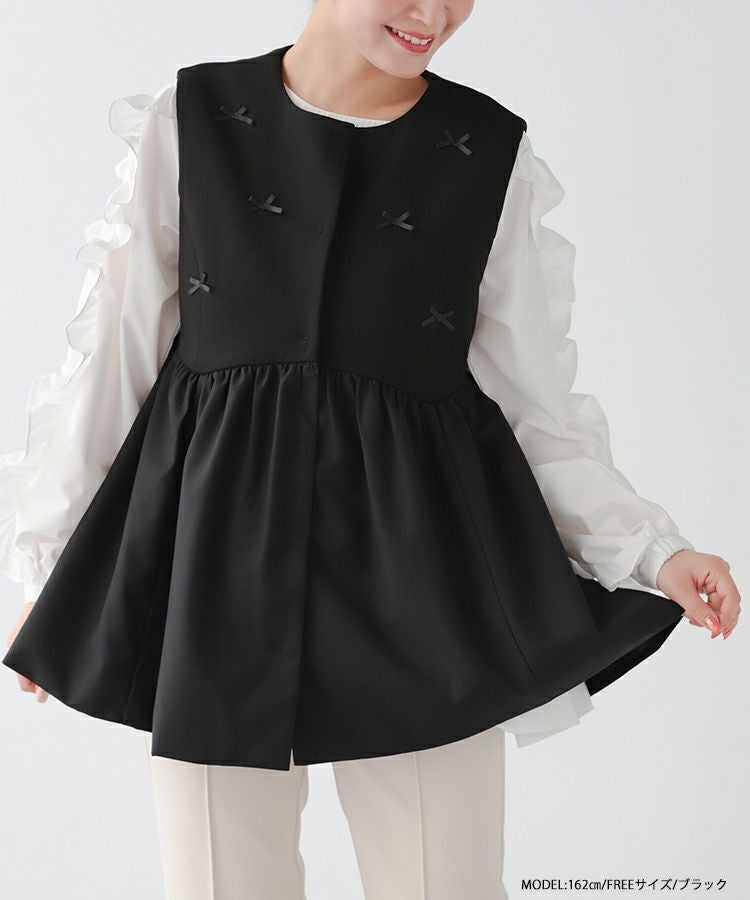 2024aw ジレ ベスト リボン リボンペプラムジレ【宅配便】